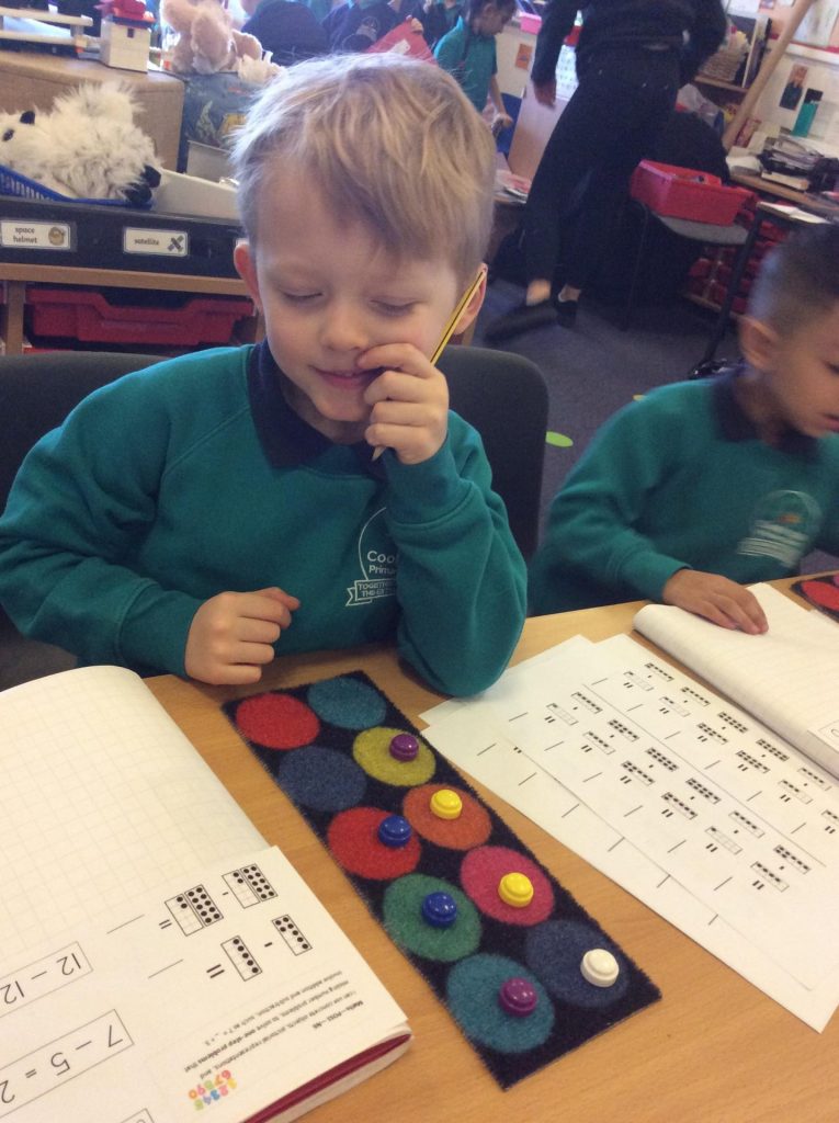 Year 2 have continued to focus on division across the week. Drawing arrays, using arrays to be able to write 4 multiplication and division fact families and to use division to answer a variety of reasoning questions. Year 1 have been furthering their knowledge of subtractions, finding a variety of ways to represent this.