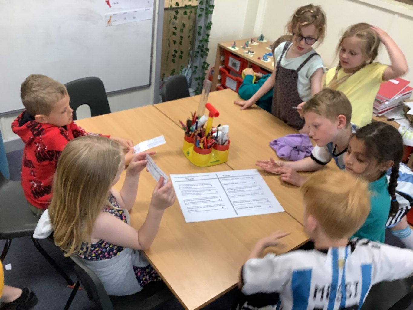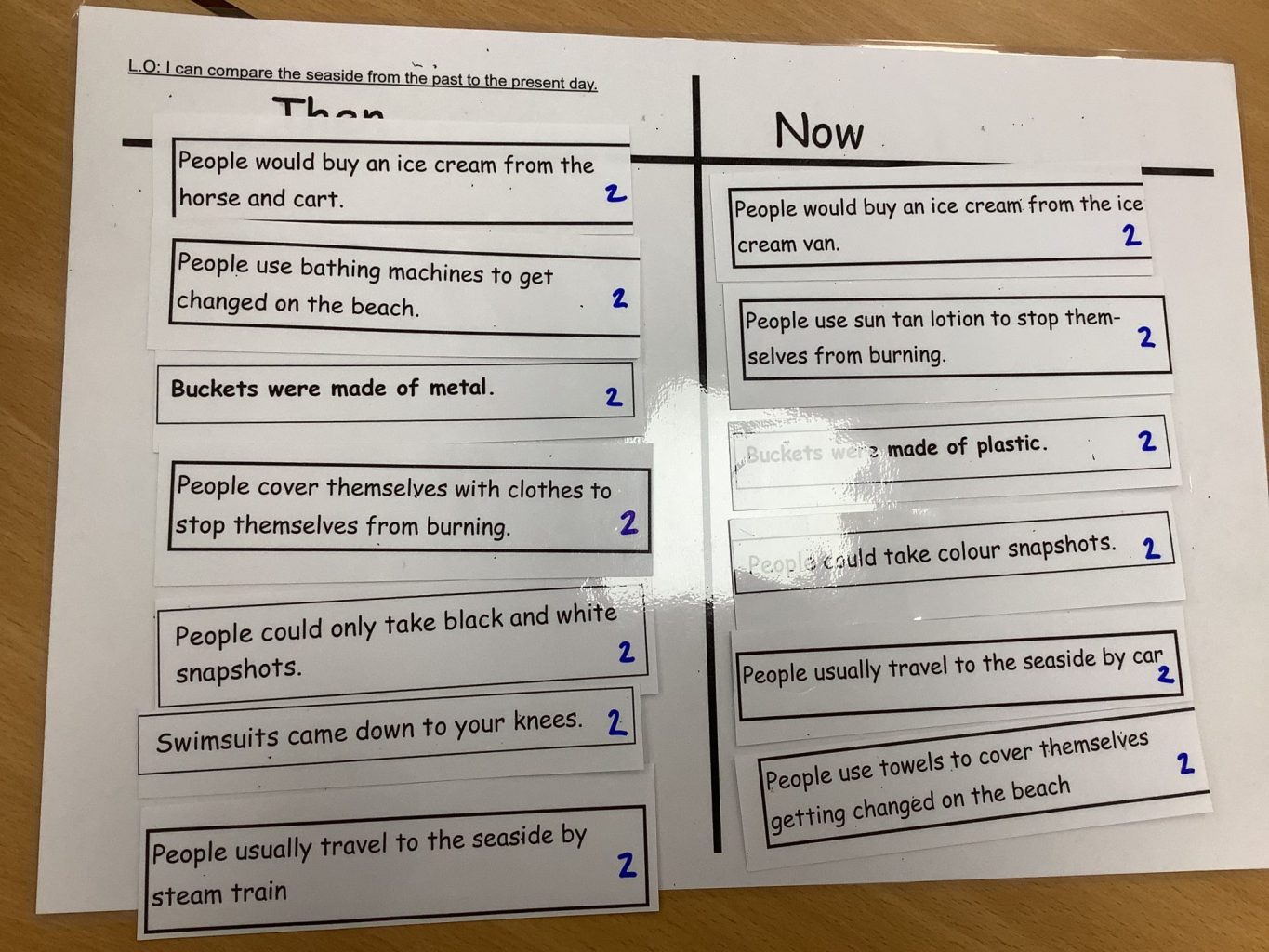 We have continued to compare things that people did in the past at the seaside and things that they do now in our history lessons. They read statements such as ‘Children used metal buckets’ and ‘People got changed in bathing machines’ and decided whether it was in the past or now. They looked at pictures from now and the past and discussed how they could tell. Finally they watched a Punch and Judy puppet show and began to make their own puppets.