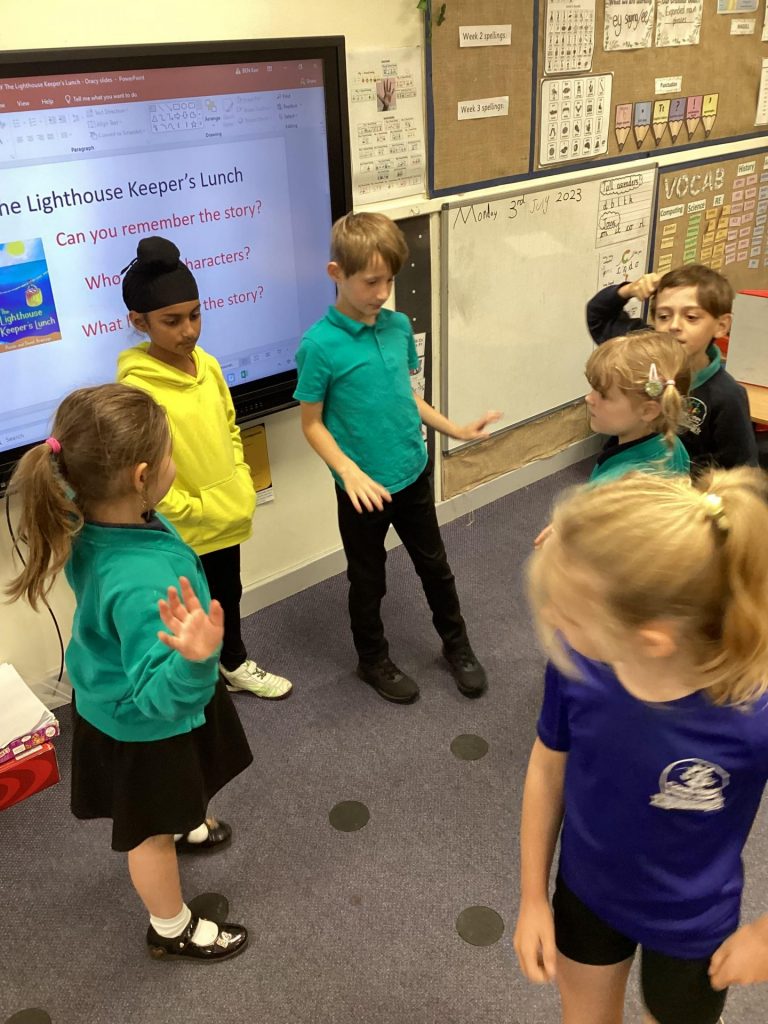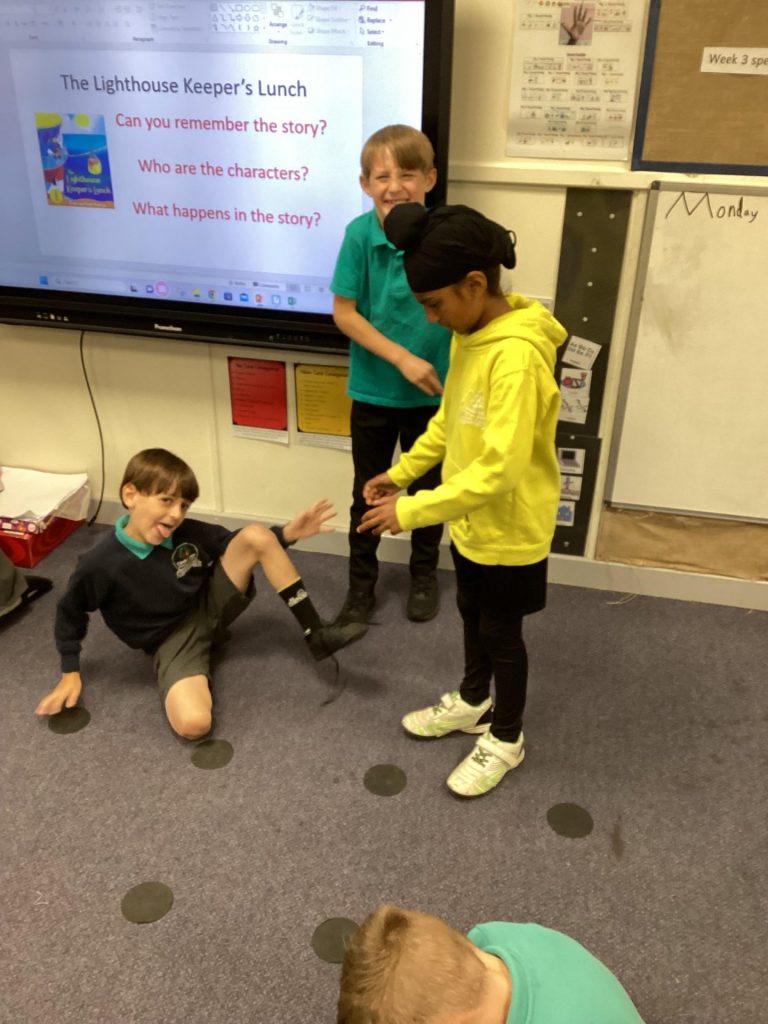 In English, Year One have been enjoying books written by the author Julia Donaldson. They noticed how they rhyme and thought about who the characters were and what the plot of the story was. They created reading dens around the field area and enjoyed acting out the stories and reading the books in their dens. Year two have again been reading ‘The Lighthouse keeper’s lunch’. They completed reading comprehension’s about the book and did some focused handwriting. They then made a story plan and began to write their own narrative of the story.