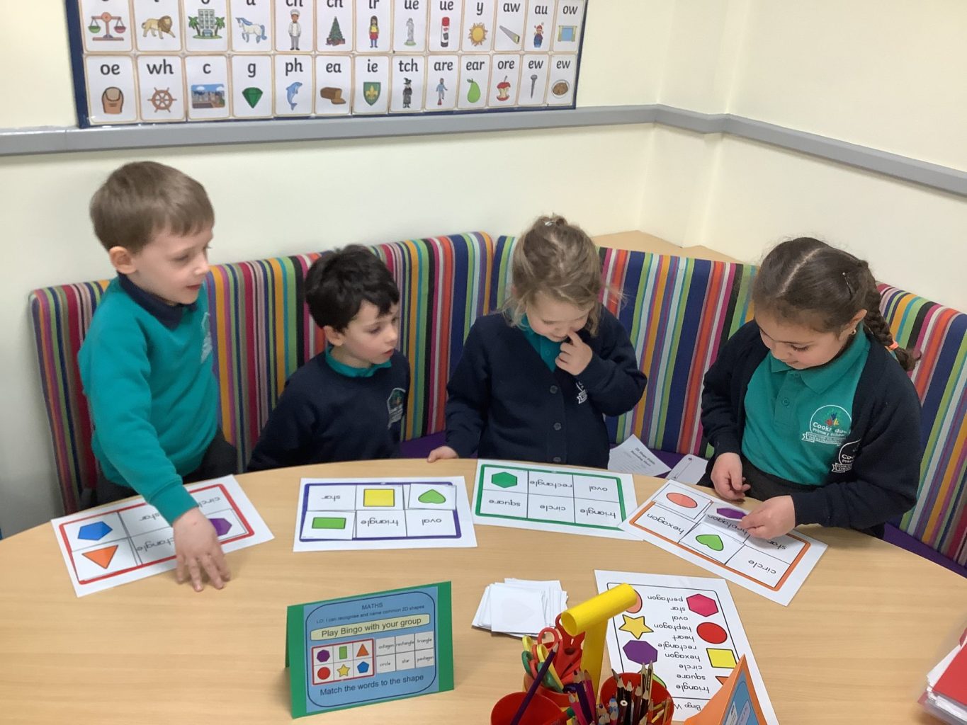 Year one have begun looking at shape in Maths this week. Firstly, we have been looking at 2D shape. We have made sure we know their names and can identify them. We have also been looking at their properties and seeing if we can guess the shapes just by listening to the properties. In Year two One group have been doing investigations. They have been trying to work out the missing numbers that could go into the two digit number problems. The other group have continued practising their addition skills.