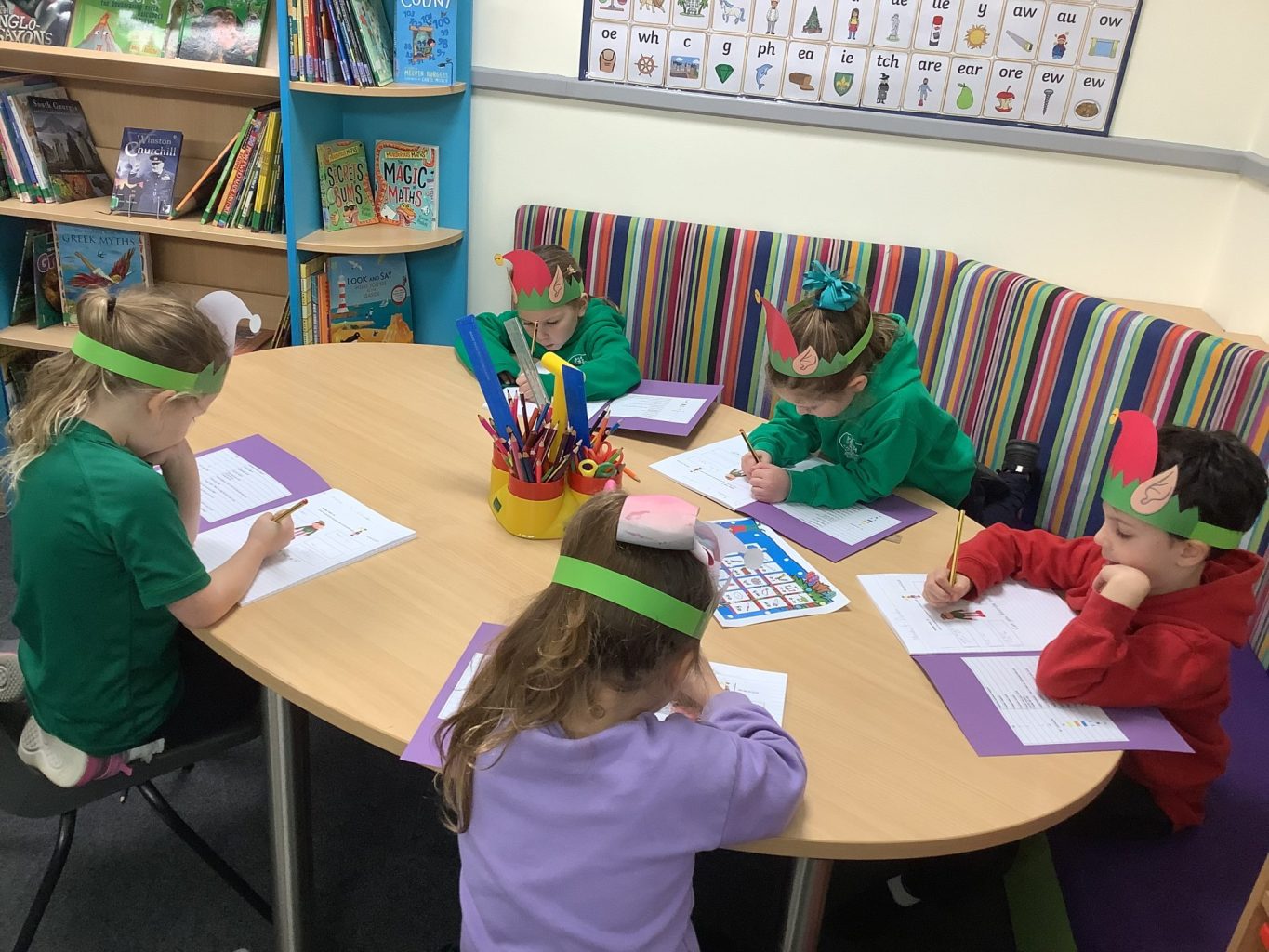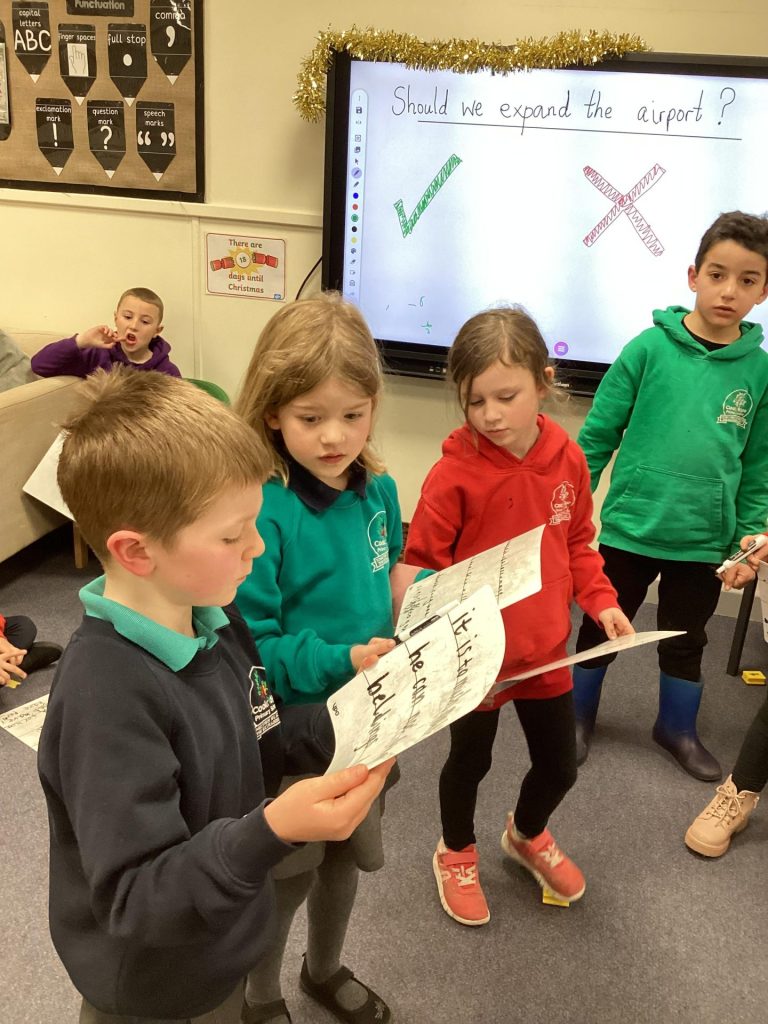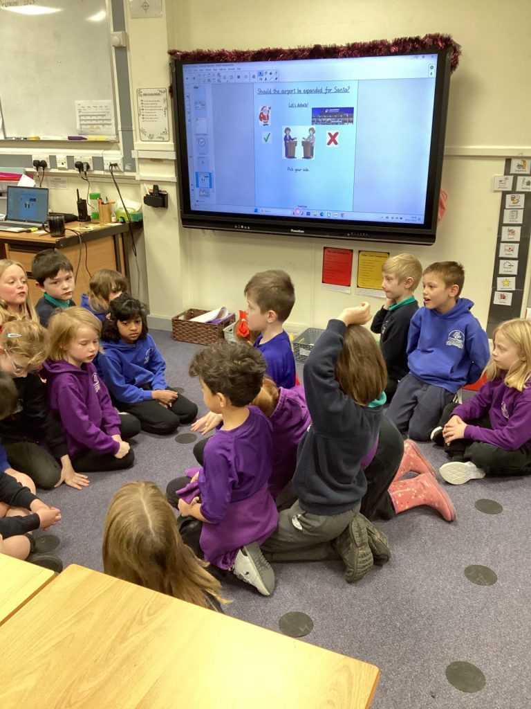 We have had great fun working along side the elves in English. They began the week by labelling a picture of Cookie and Marshmallow and the wrote sentences to describe them. Year One have been looking at Christmas lists and working out which is the correct spelling. They have also been writing a letter to Santa, telling him what they have done to deserve their presents and what presents they would like. In phonics the focus has been on the digraph /ir/ as in girl. Year two have been using the Airport book and having debates. They have been thinking about whether the airport should expand to make a bigger runway for Santa. They have thought about all the pros and cons of this. Their phonic focus this week has been on /il/ and /al/.