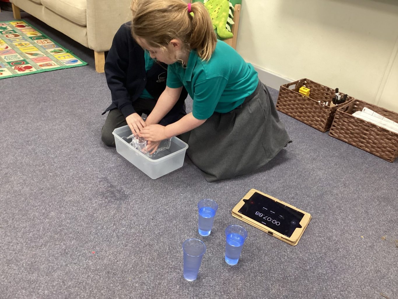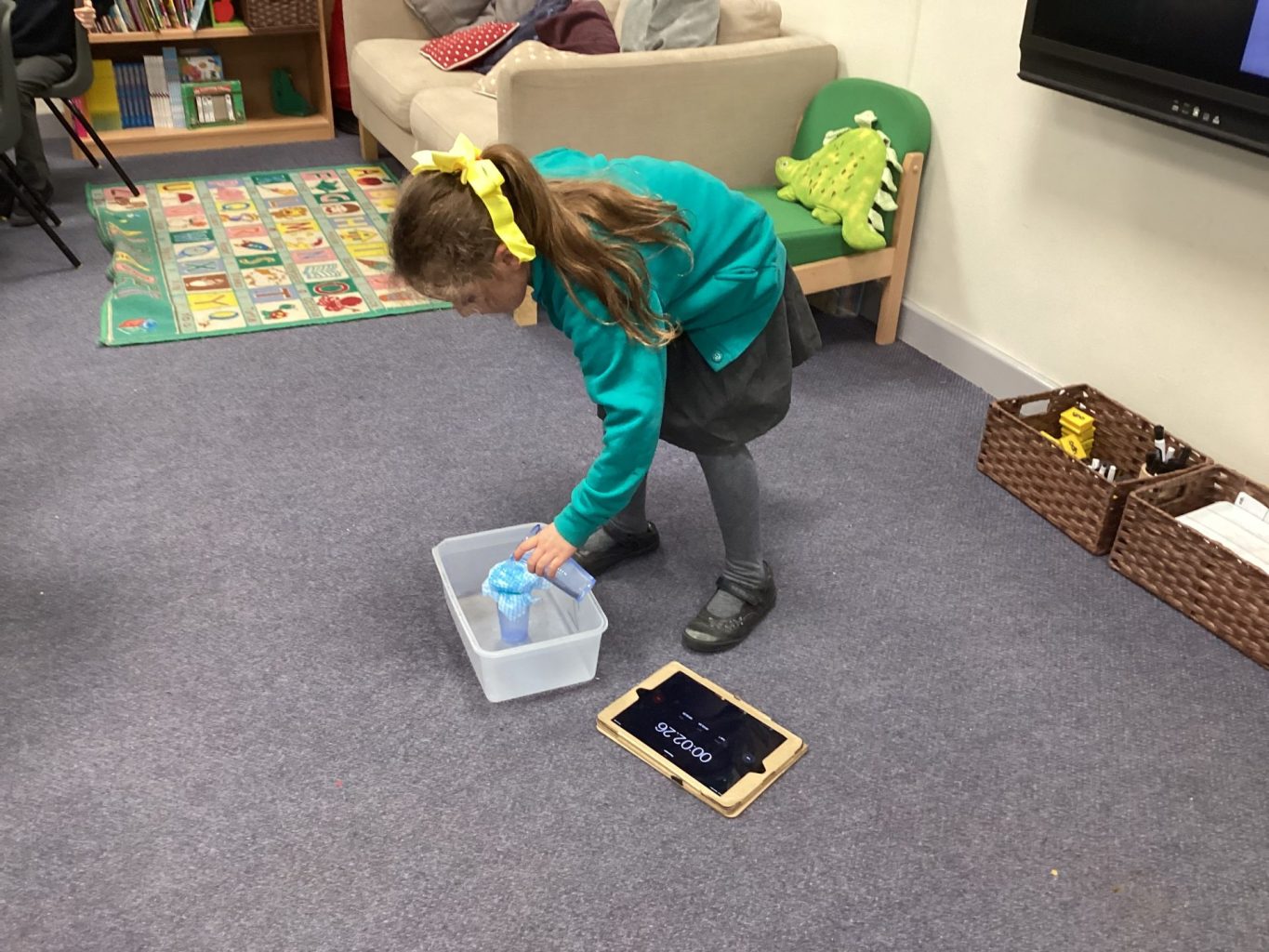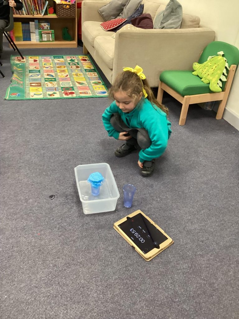 In Science, we have continued to explore materials. This week, we conducted an experiment on behalf of Mrs Hunter. She keeps getting wet in this very rainy Cookridge and she needed a better, water resistant coat. We tried out a few different materials and thought about whether they would be flexible and comfortable to wear. We then poured water onto them to see if they would be water resistant or absorbent. We found that plastic was the best option.