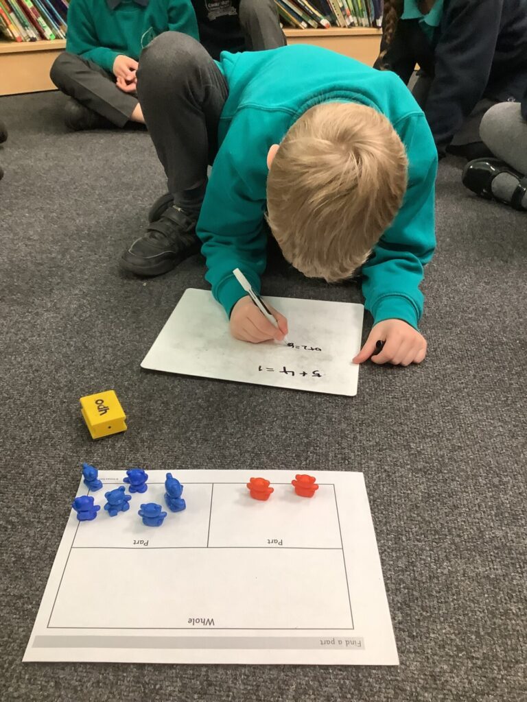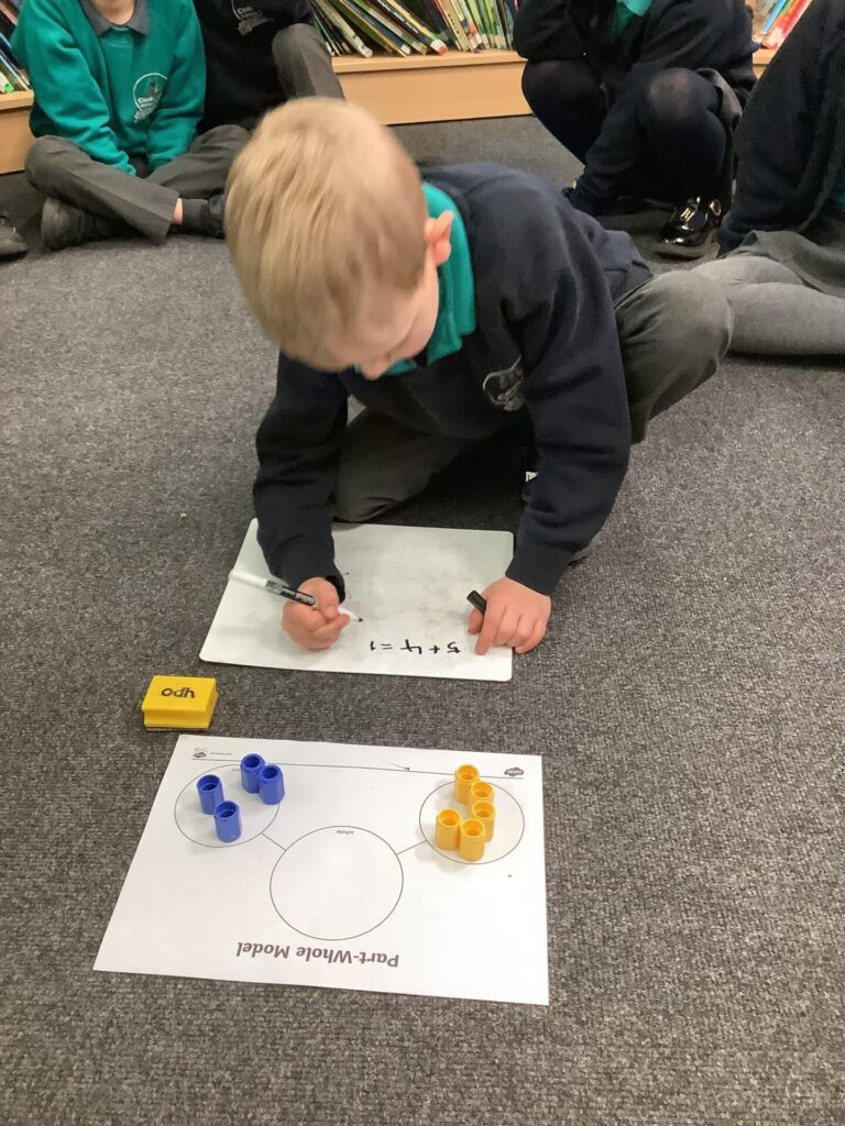 Year One have begun to learn about addition this week in maths. They have been looking at how two parts join together to make a whole. They have focused on language such as addition, plus, altogether etc.. and have used bar models, part whole models and word problems to solve simple addition questions. Year Two have been completing subtraction problems. They have used Base Ten to practically remove numbers and have been using column subtraction too.