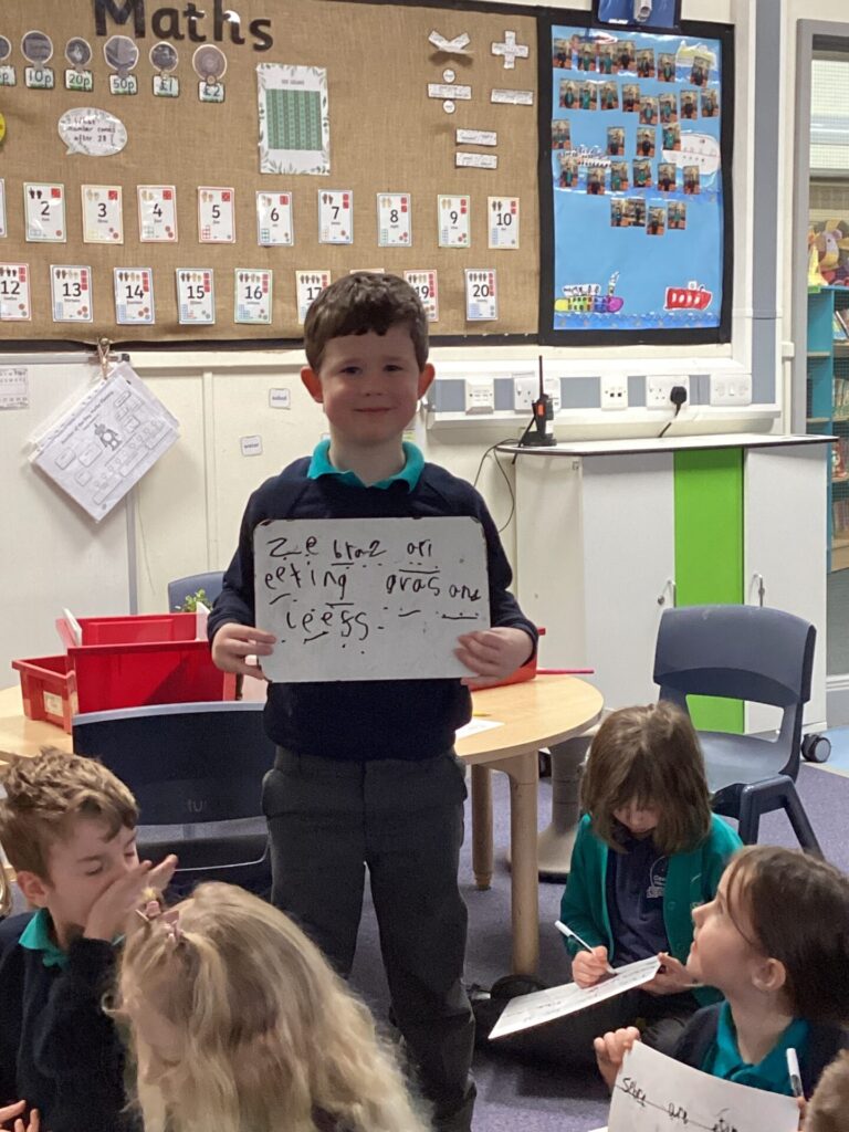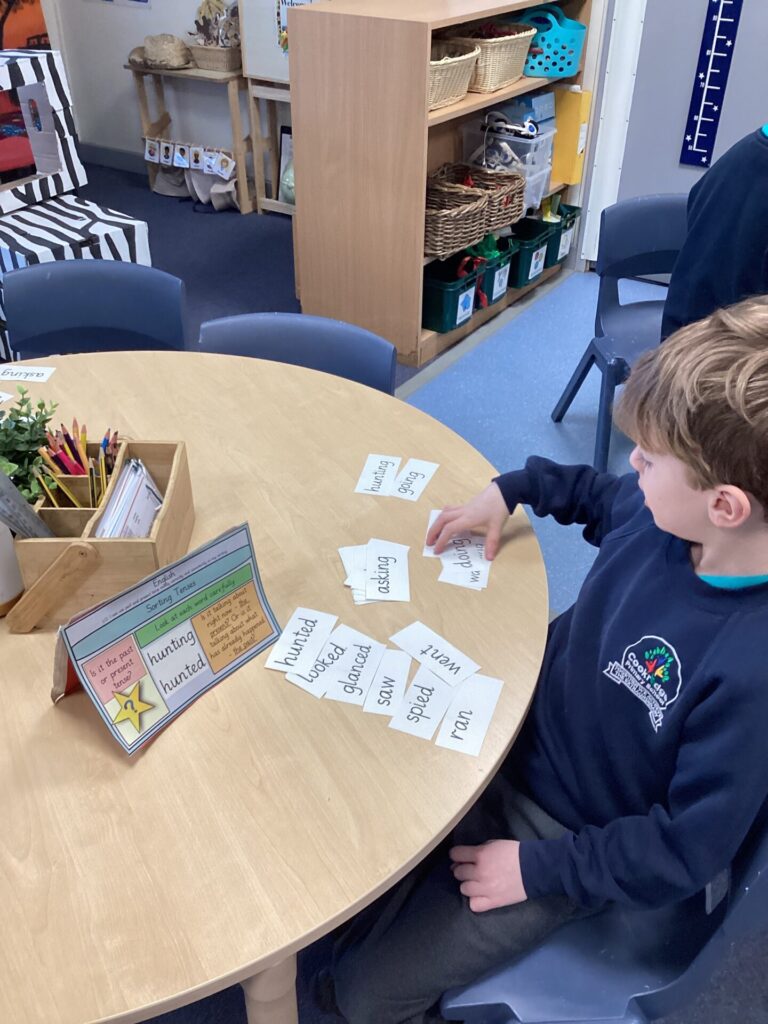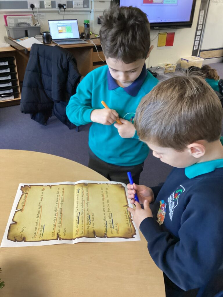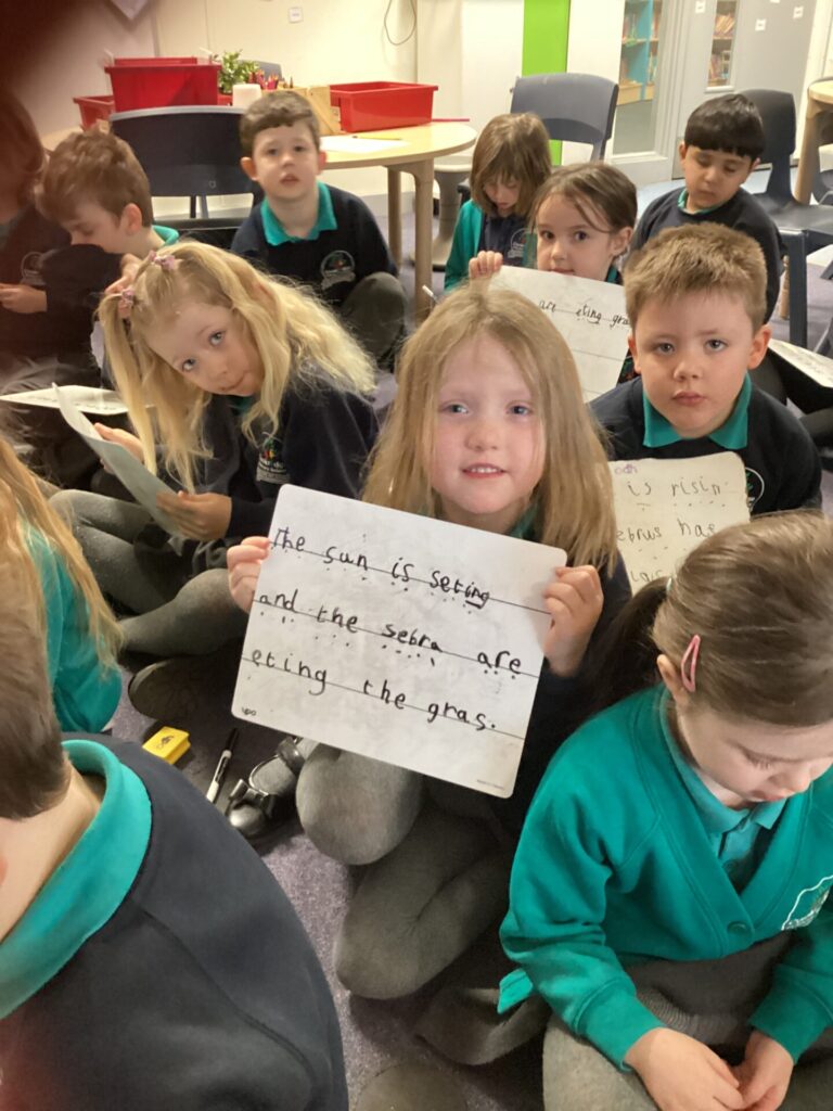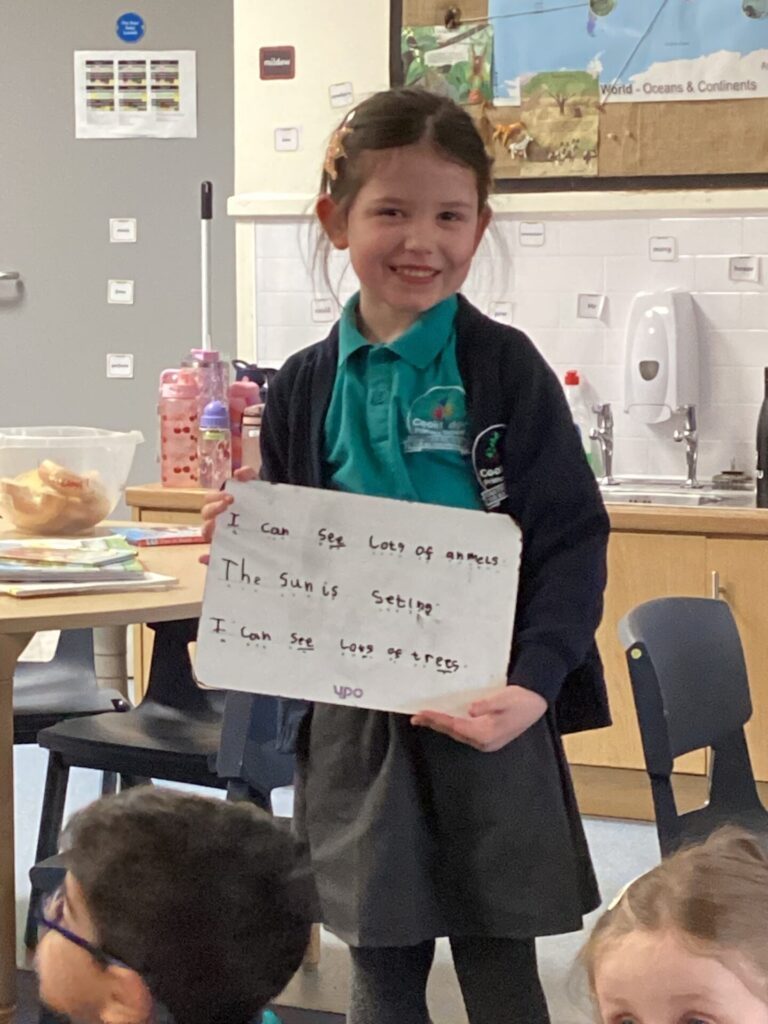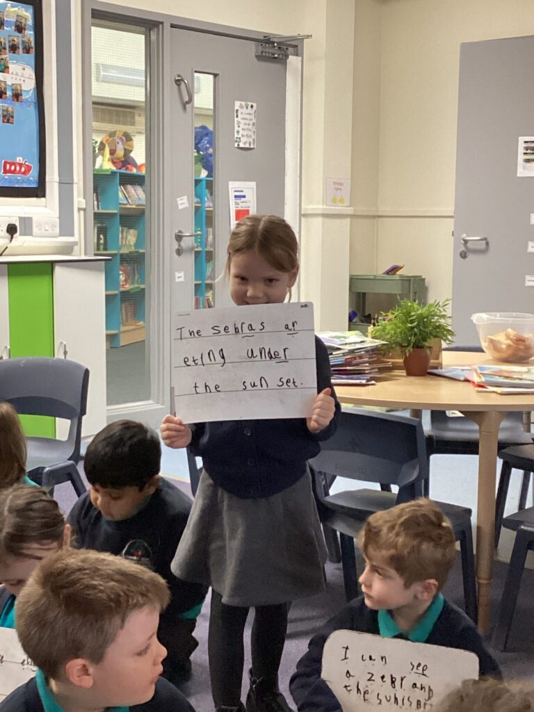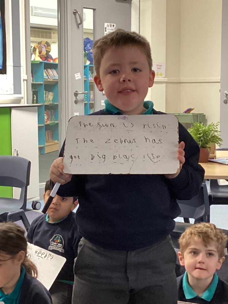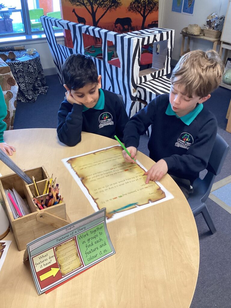 We have been looking at a diary of someone who had been on a safari in English. The children were able to identify the key features of a diary, that it has a date at the top, it’s written in the past in the first person and recounts events and feelings from the day. Year One have been looking at the importance of things being put in chronological order. They listened to stories and ordered pictures of what happened. They then ordered pictures from a diary entry about a safari and wrote sentences about it. Year Two have been changing verbs into the past tense and using them in sentences correctly.
