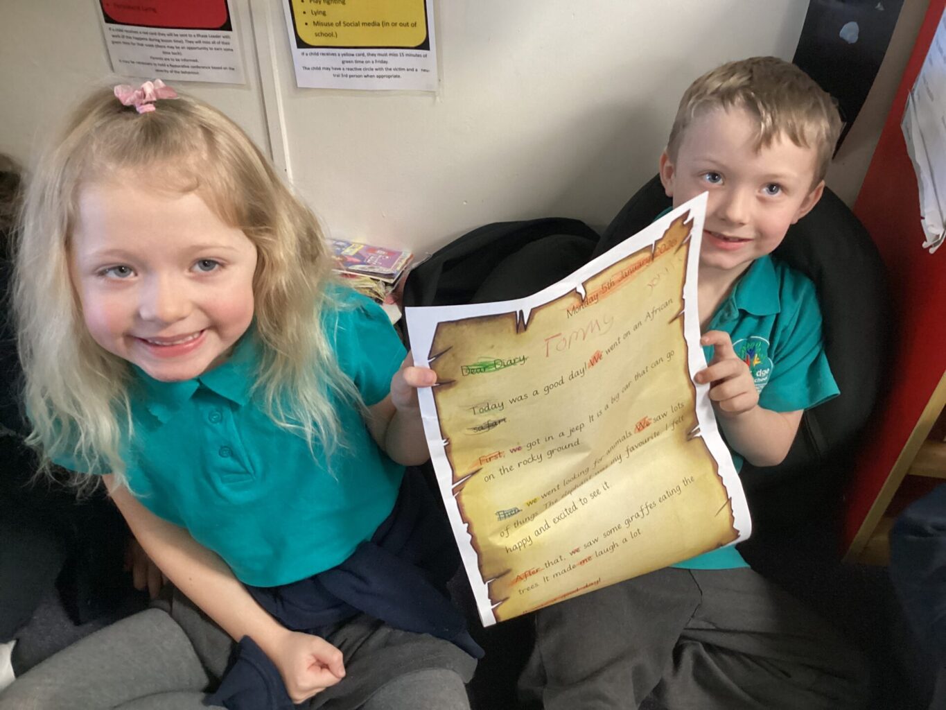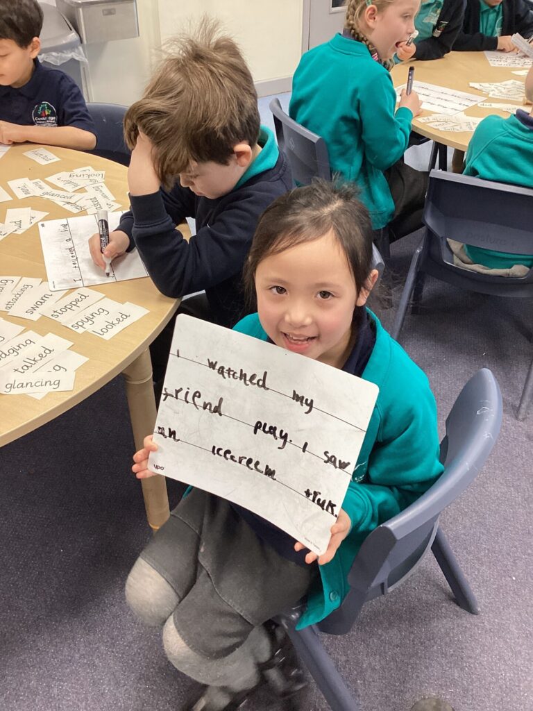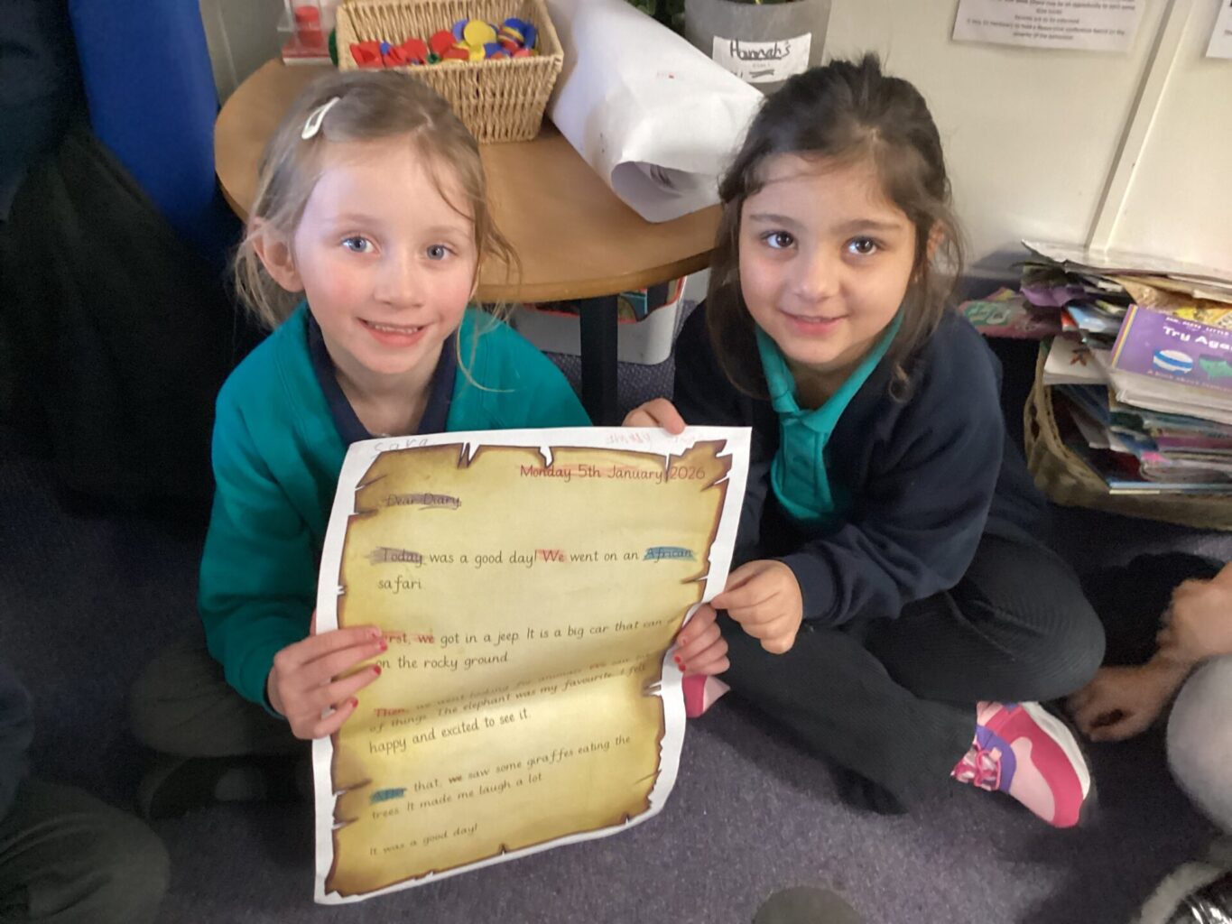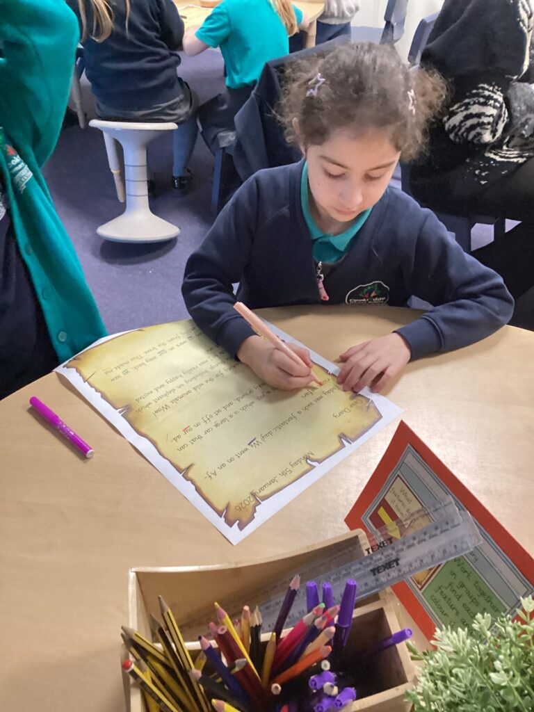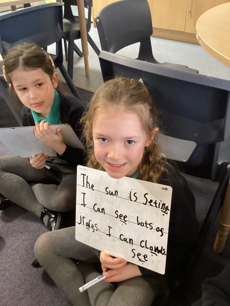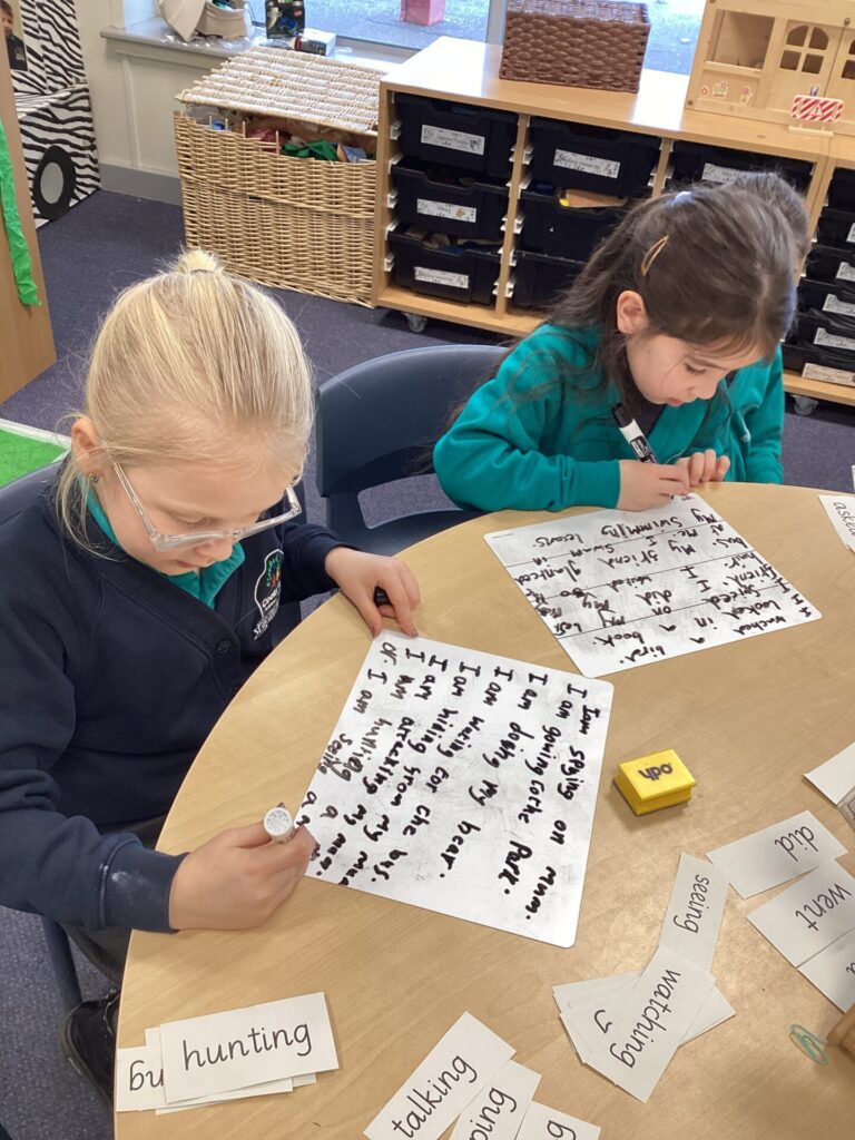 We have been looking at a diary of someone who had been on a safari in English. The children were able to identify the key features of a diary, that it has a date at the top, it’s written in the past in the first person and recounts events and feelings from the day. Year One have been looking at the importance of things being put in chronological order. They listened to stories and ordered pictures of what happened. They then ordered pictures from a diary entry about a safari and wrote sentences about it. Year Two have been changing verbs into the past tense and using them in sentences correctly.