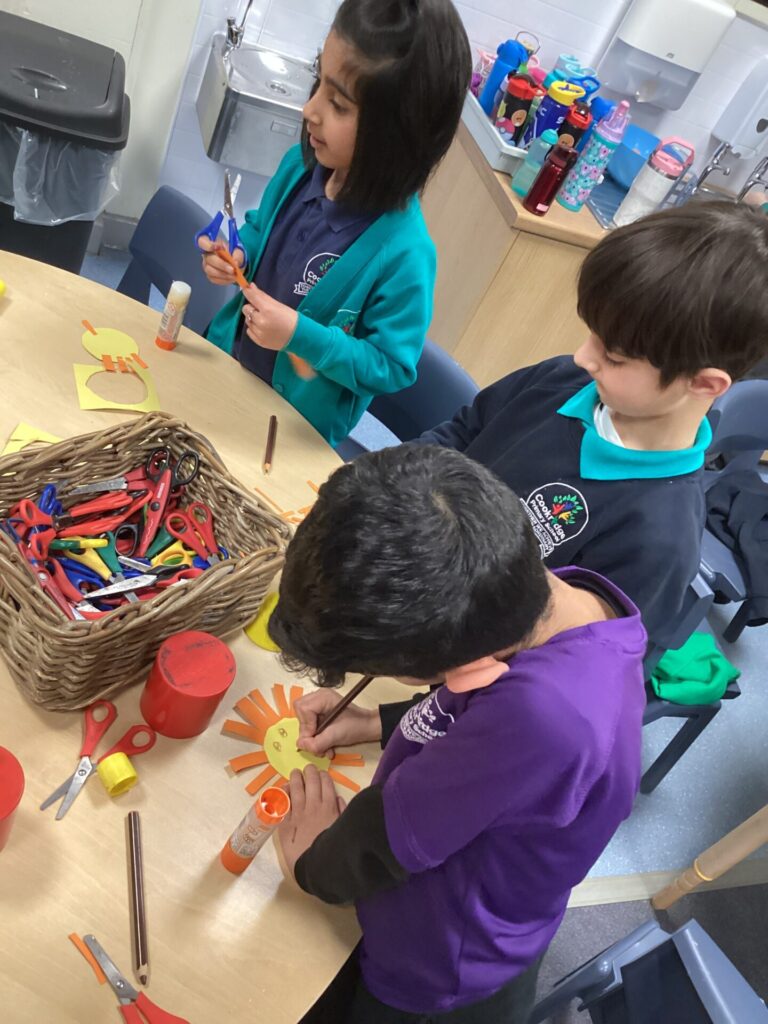In Music, Year One have been learning about pitch. They have listened to ‘The flight of the bumblebee’ and have made a graphic score (on a flower – moving a bee up a down) they have then moved a bee up and down the score and made their voices high and low to match. Year Two have been learning how to notate rhythms. They used lego and lolly pop sticks to learn the foundation rhythmic elements.