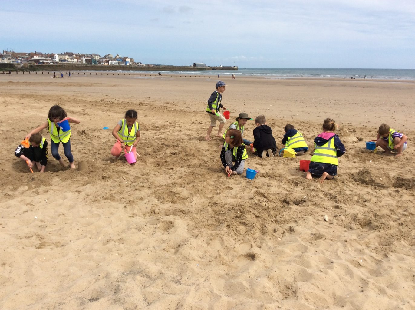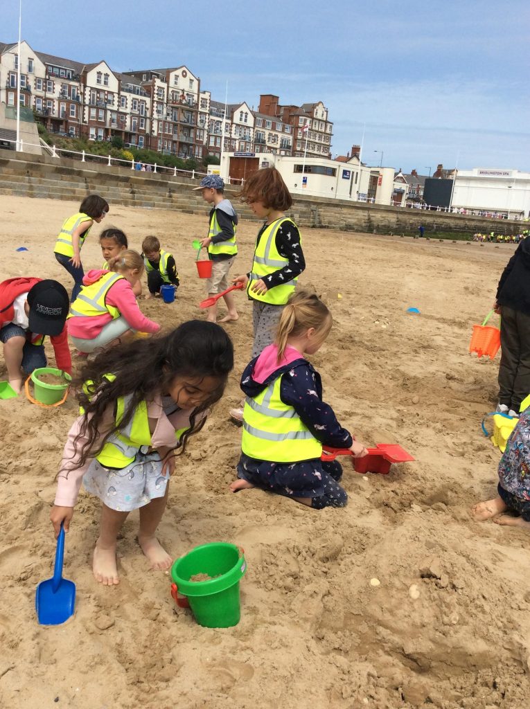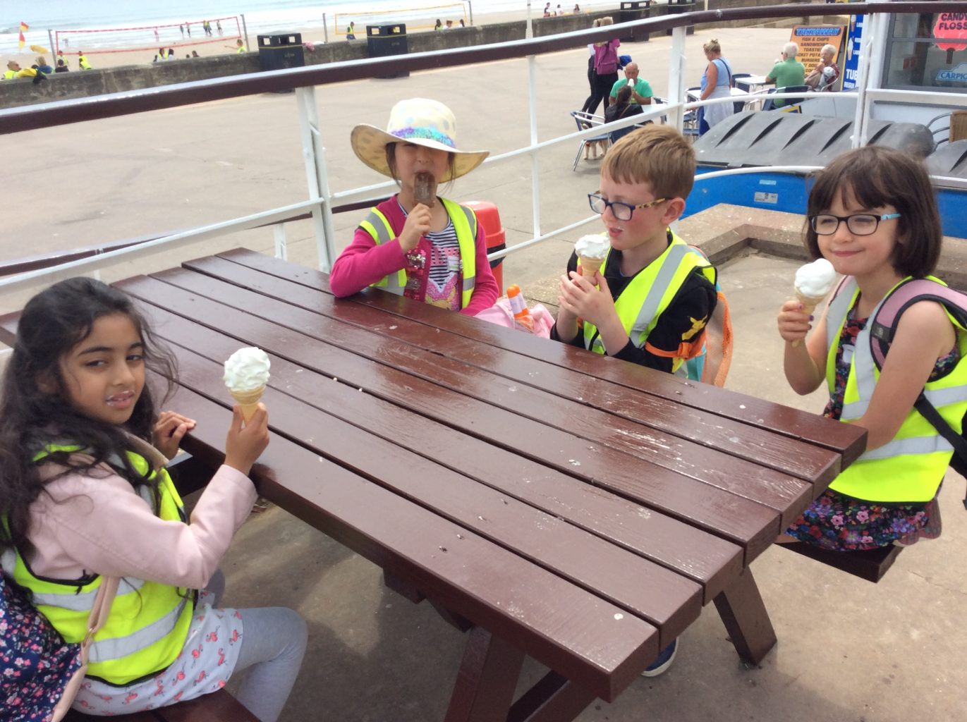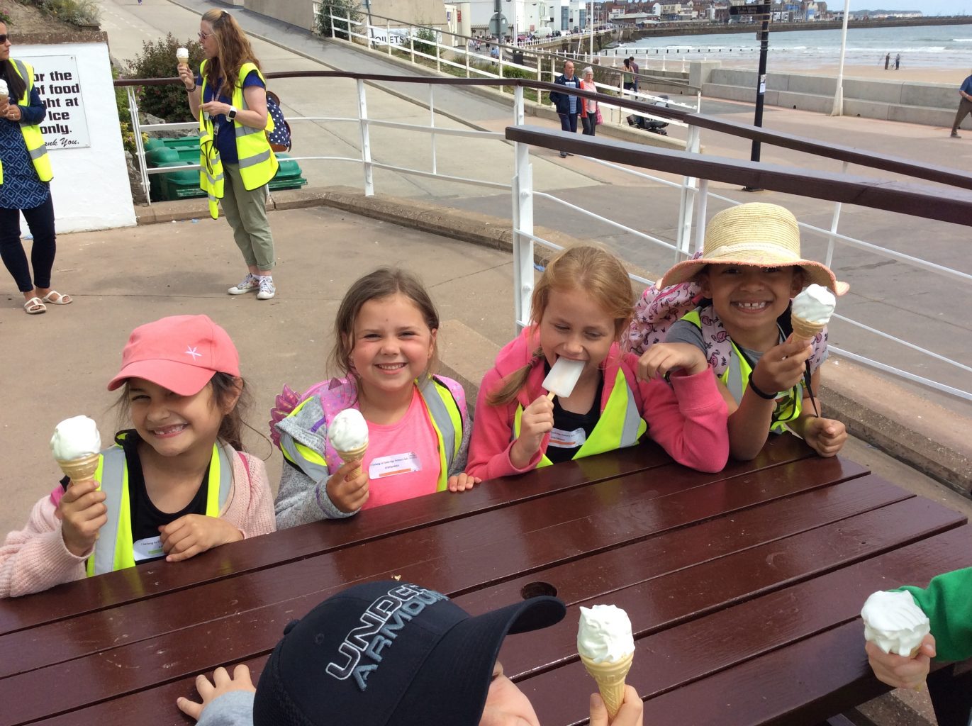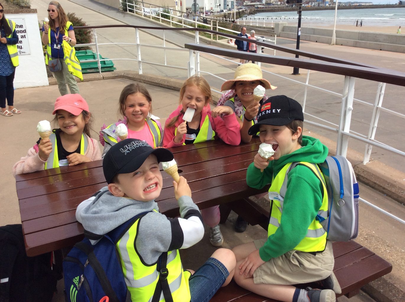 KS1 enjoyed a fantastic day out to Bridlington. We ate delicious ice-creams which were extremely yummy before heading to the Lidos. At the Lidos we took of our socks and shoes and paddled. It felt cold to start with but soon warmed up as we played and splashed in the water. Some of us got very wet! Next we headed to the lifeboat station where we learnt all about the ‘Royal National Lifeboat Institution’. It was interesting to see the lifeboats and discover the duties of a lifeguard. Finally, we ate our lunch on the beach before digging and building sandcastles. We even buried Mr Morgan’s feet! Overall we had a fun packed day full of laughter and learning!