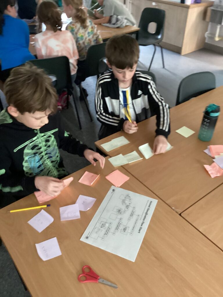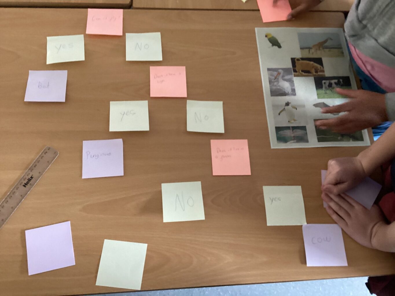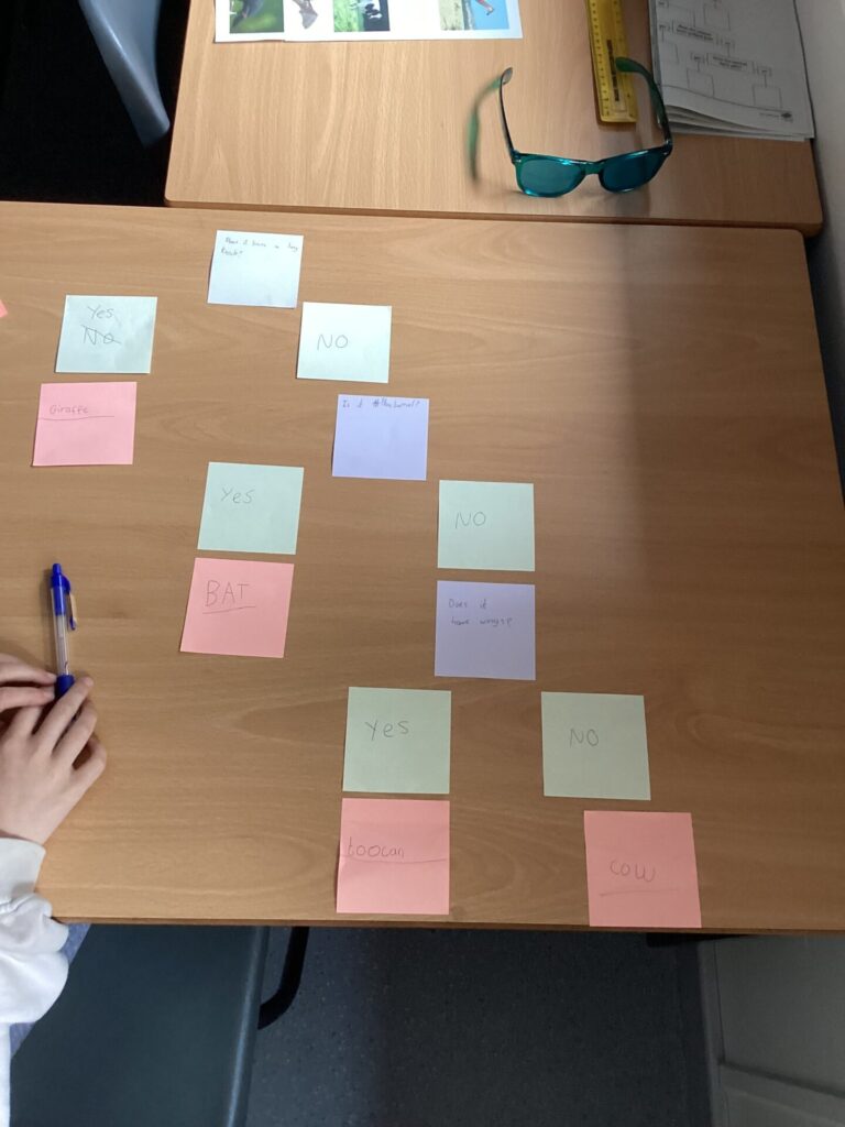 After gaining an understanding of how classification works, we were given a selection of animals. In our groups, we collaborated to create our own classification keys, coming up with lots of questions to help us sort these fascinating creatures. For instance, we asked questions like “Does it have fur?” or “Can it live in water?”