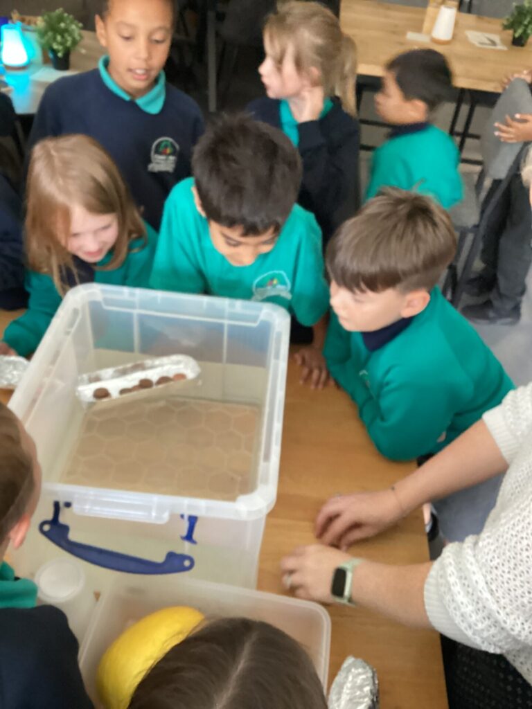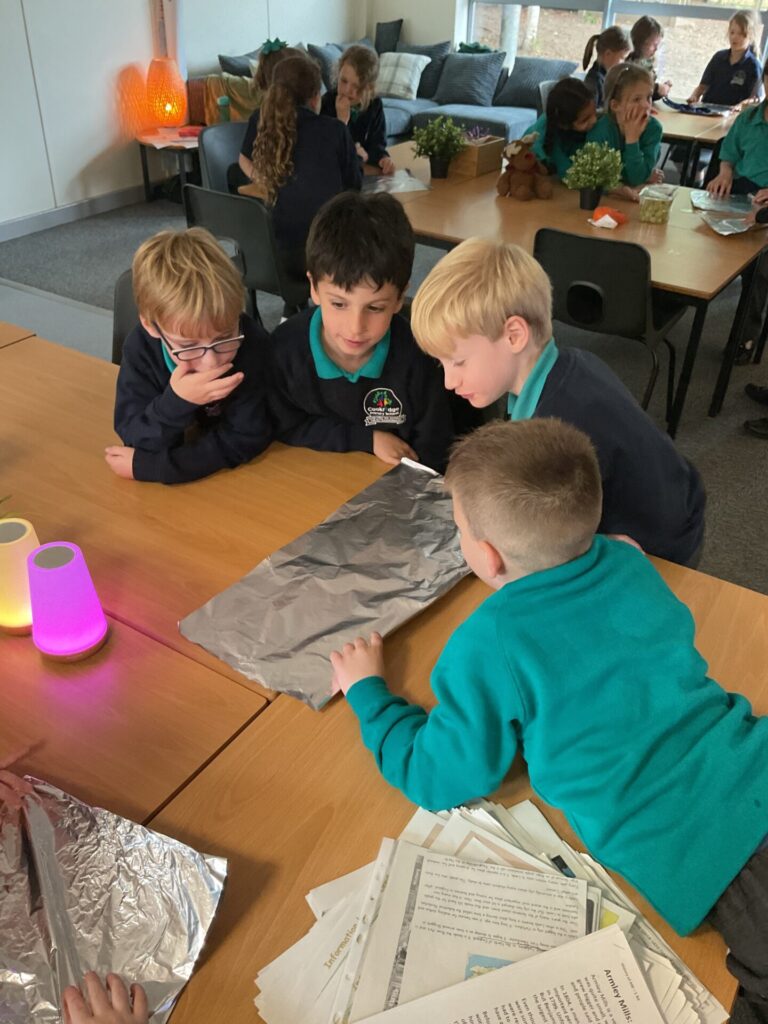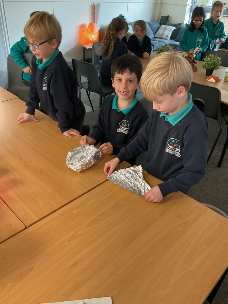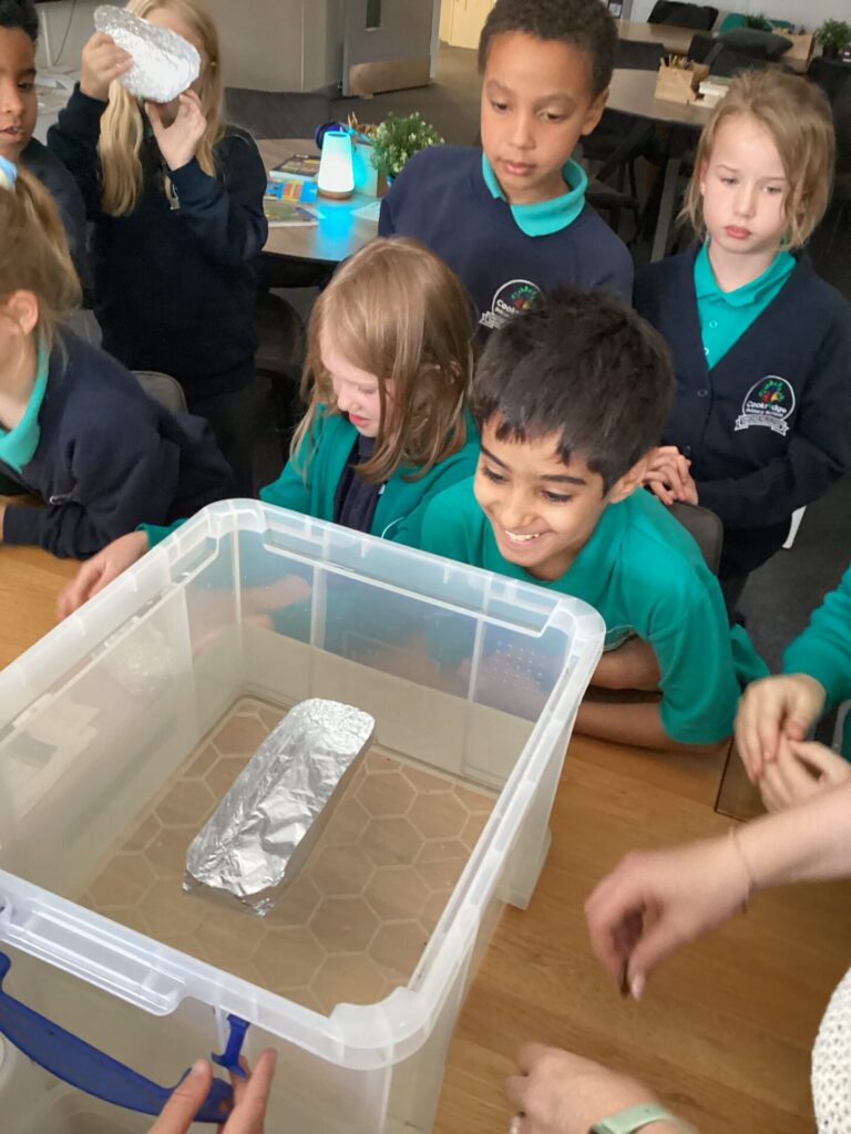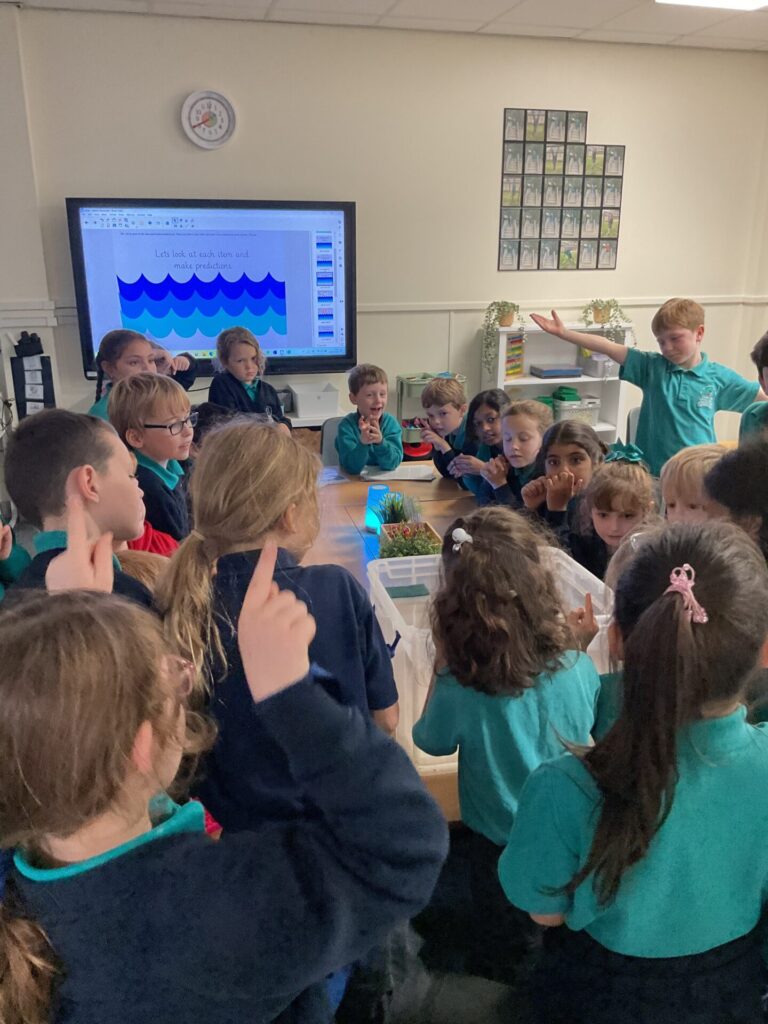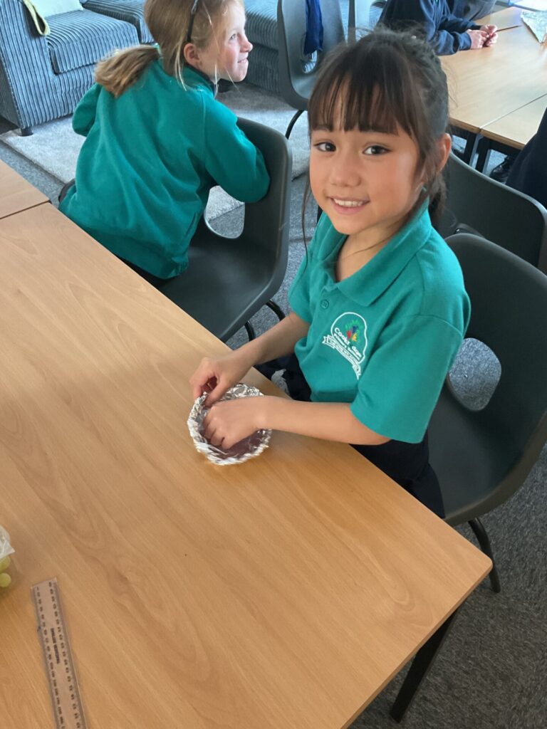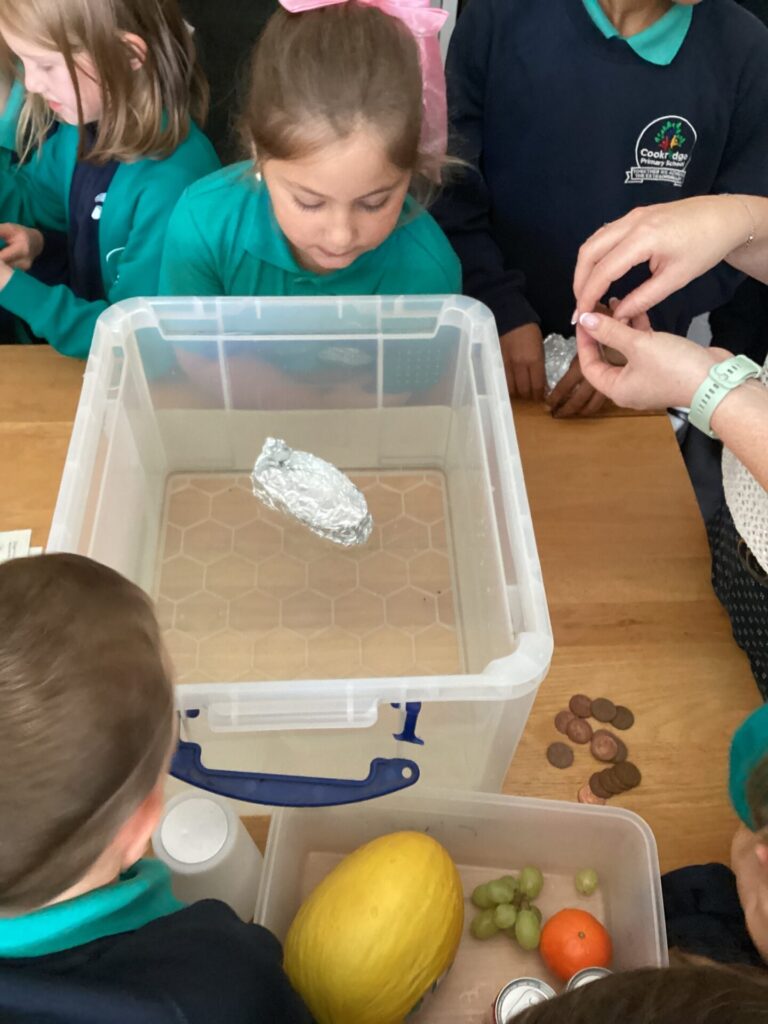 We thought about our previous lesson and the new vocabulary we had learnt and what experiment we had conducted. We investigated what buoyancy meant and how it affects objects in water. Children made prediction about which items would sink or float when placed in water. We then tested our theories. Using the information we had gained from this experiment, in groups children used aluminium foil to create a boat. We then took turns experimenting how many coins our boats could hold before they sunk. Children discussed how to place the coins and evaluated as they went along.