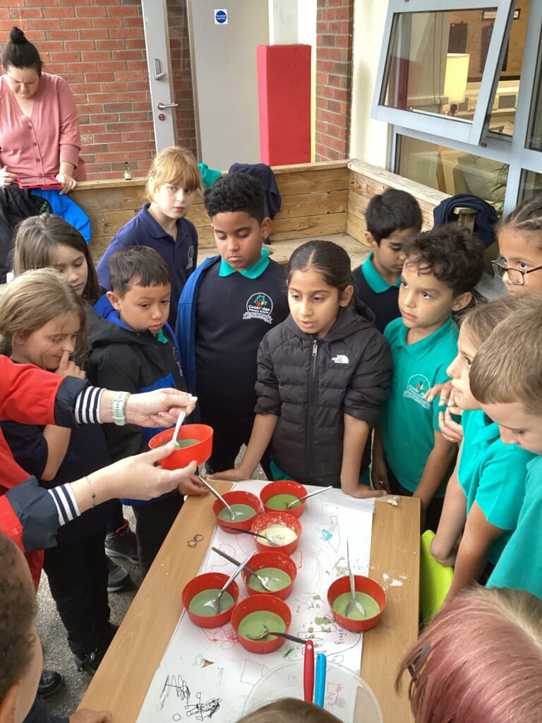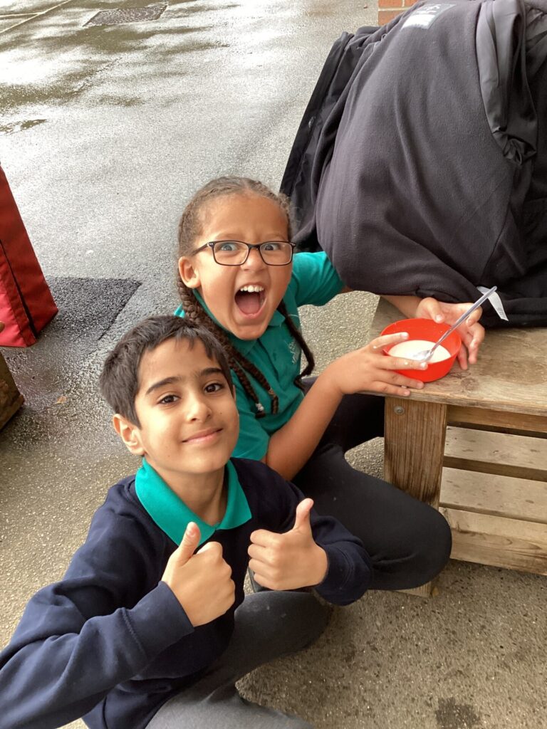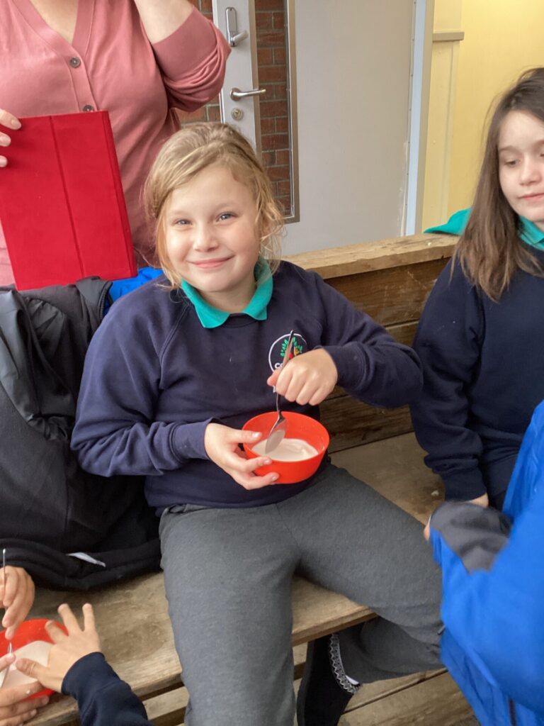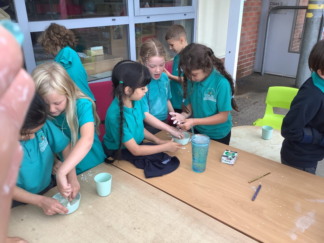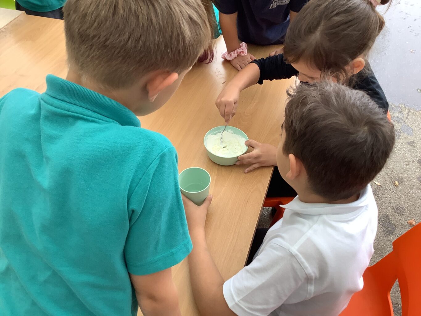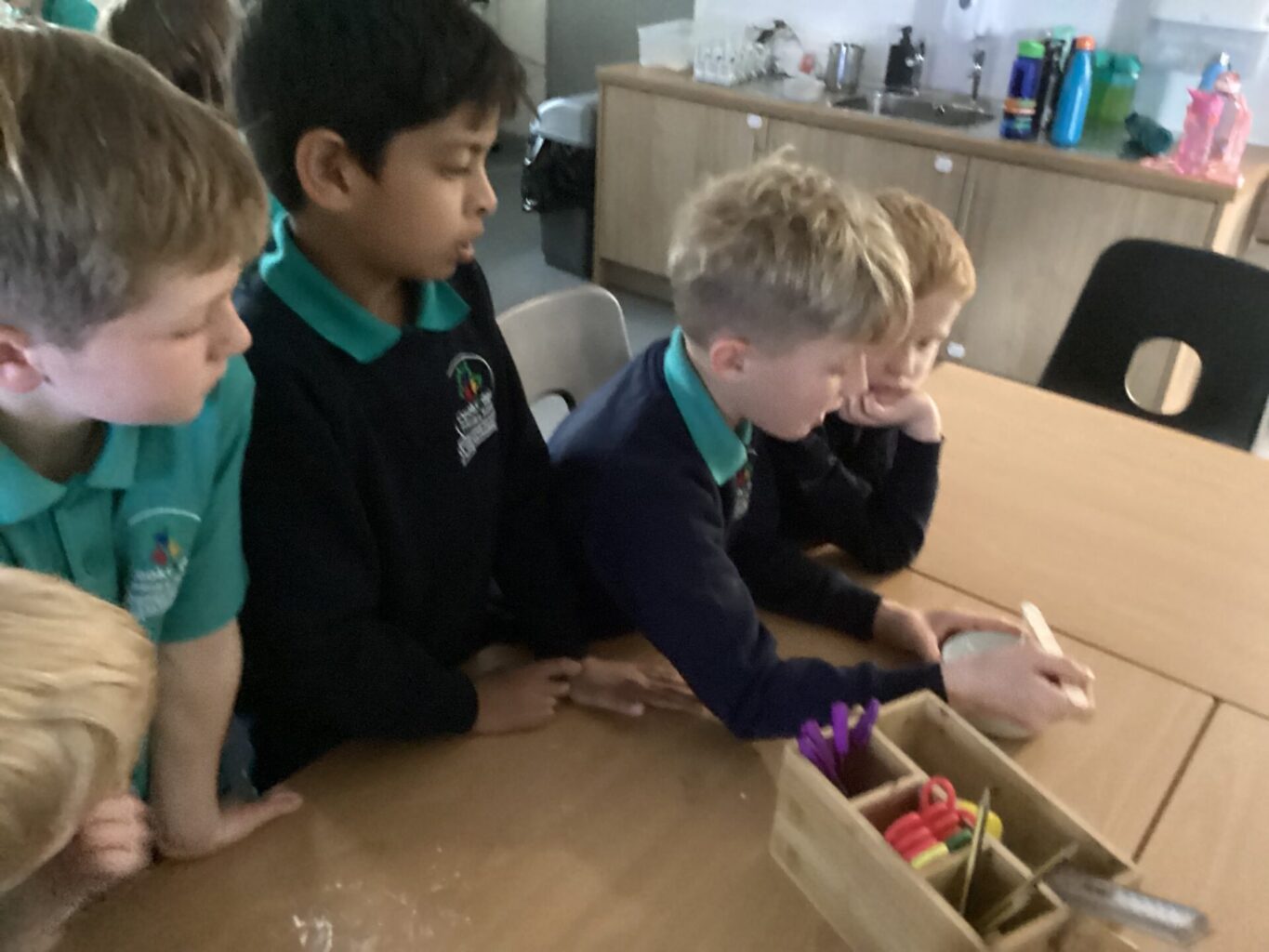 Today in science, we thought carefully about how to conduct an experiment. First, we considered what makes something an experiment, and learnt that it is to test something, record what happens, and use your observations to answer a question. We followed careful instructions to set up our own practical experiment by investigating whether cornflour and water make a solid or a liquid. We realised that the mixture could both be a solid and a liquid. This was because it is a ‘non-Newtonian liquid’ which means that the same material may appear more thick or runny in different situations – depending on the force or pressure applied to it.