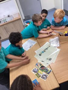 Today in science, we thought more about how to group different animals. To start with, we thought of as many different ways to group a variety of living things as possible. Then, we were introduced to the concept of classification keys. We played a game of ‘Guess Who?’ with different living things, practising using yes or no questions as a way to classify living things. We also sorted animals into vertebrates and invertebrate to strengthen our knowledge of this. We then applied out learning of different characteristics to create our own animals classification key.