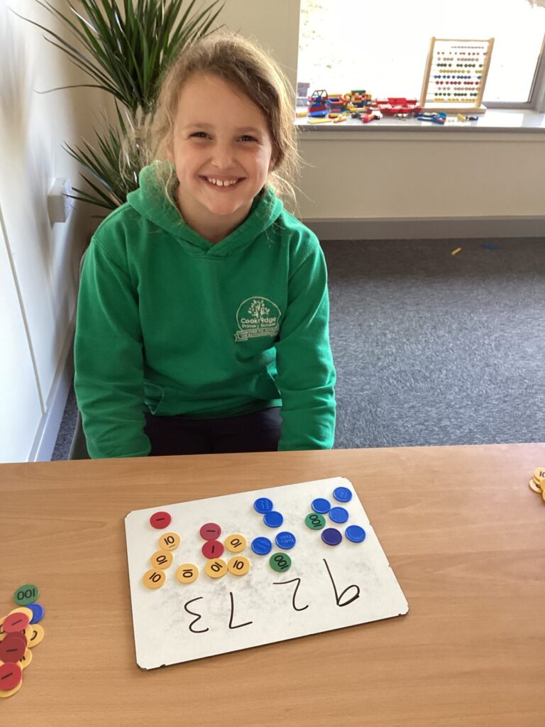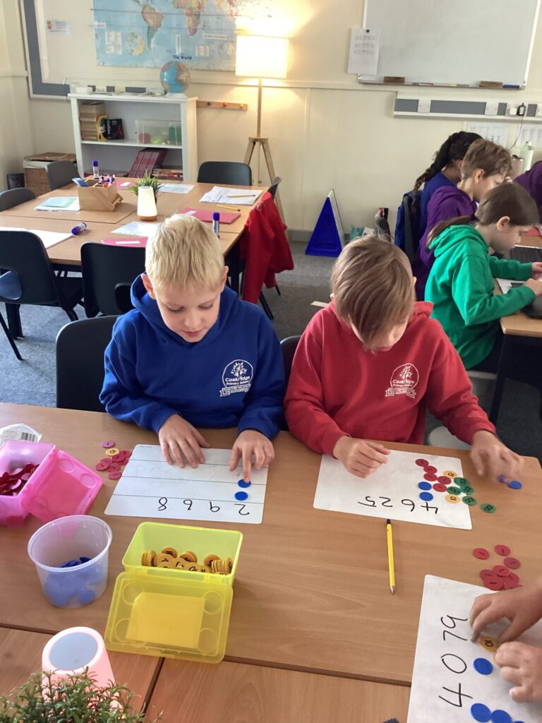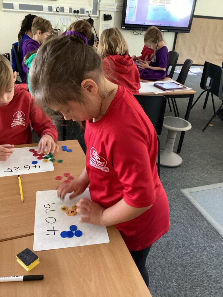 This week, Miss Bourne’s maths class looked at place value and partitioning numbers up to 1000. We used resources to help us practice flexible partitioning. We were given a 4-digit number and then we had to use resources to find 5 different ways of partitioning the number. We then completed some practical problems involving place value of 4 digit numbers. We started by completing a sheet which challenged us to make different 4 digit numbers using the digits 0 – 9.