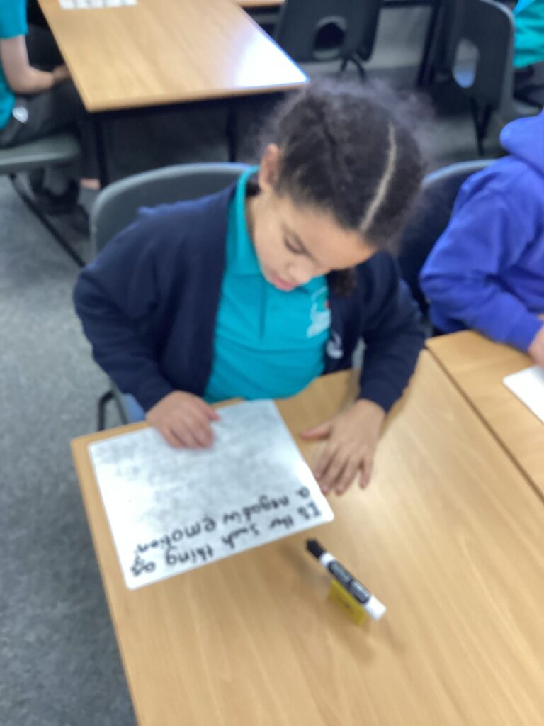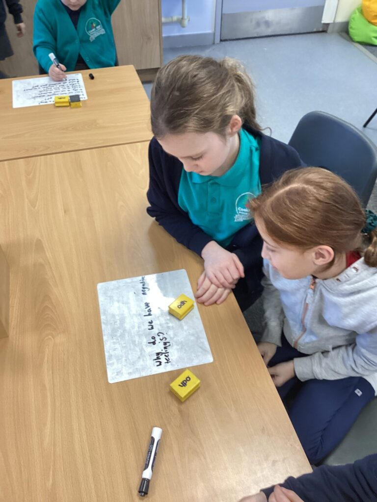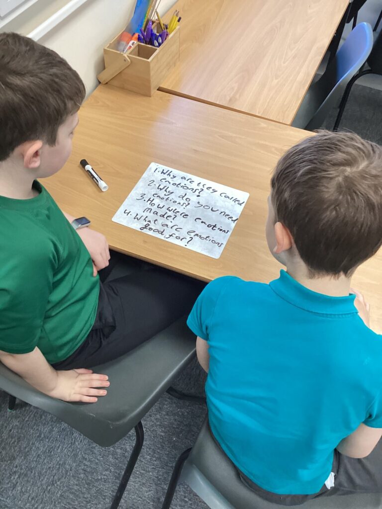 Today, we completed our P4C lesson. The children watched the trailer to the video “Inside Out” as a stimulus for discussion. Each child wrote their own open, philosophic question based on the video. The class then voted for the most interesting video to discuss; and this was the basis for our discussion. Some questions the children asked were,