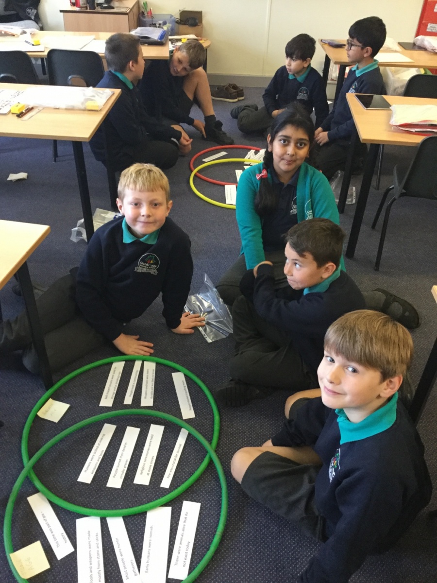 Today, Year 4 enjoyed a day full of activities and learning about the changes that took place between the Stone Age and the Bronze Age. This morning, we used hoola hoops to create a giant Venn diagram, and sorted statements to show the similarities and differences between the two Ages. This afternoon we took part in 3 fun activities testing our knowledge of the Stone Age, and also using our Computing and DT skills. One task required us to use our research skills to look up information about Skara Brae, a Stone Age settlement. Next, we created designs of a Stone Age burial chamber, using iPads and laptops to research what it should look like. Finally, we played a card game. We had to rate various Stone Age items on their rarity, usefulness and safety. Then, in groups of three we took on the role of different Stone Age people – one farmer, one fisherman, and one hunter gatherer. We swapped and traded the cards based on what we think our character would need the most! The children worked really hard and used fantastic historical skills – well done, Class 5!