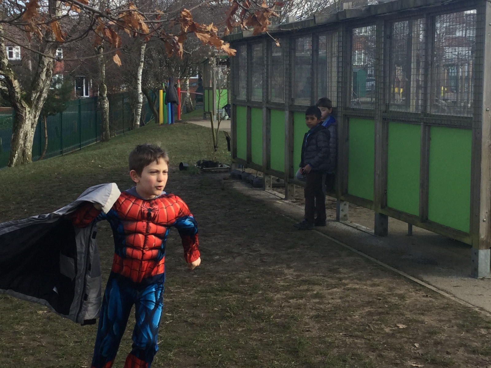 What a wonderful, creative day we had yesterday! All the children looked utterly fabulous in their costumes, and it was a joy to see such a love of reading all around school. After an exciting mystery reader and a competitive teacher v pupil quiz in assembly, Class 5 spent the day focusing on a Quentin Blake book called The Green Ship. After reading the blurb and predicting what would happen, we listened to the story of two adventurers who found a ship made of trees and bushes, and imagined embarking on journeys all over the world. We then went outside and embarked on our own adventures – some of us found a tree that turned into a time machine, a bridge which became a boat and some branches which became an aeroplane! After some fun outside we acted out our stories using lego and models, making sure we had a clear idea of our characters, setting and a beginning middle and end. Then we carefully wrote up our stories for display.