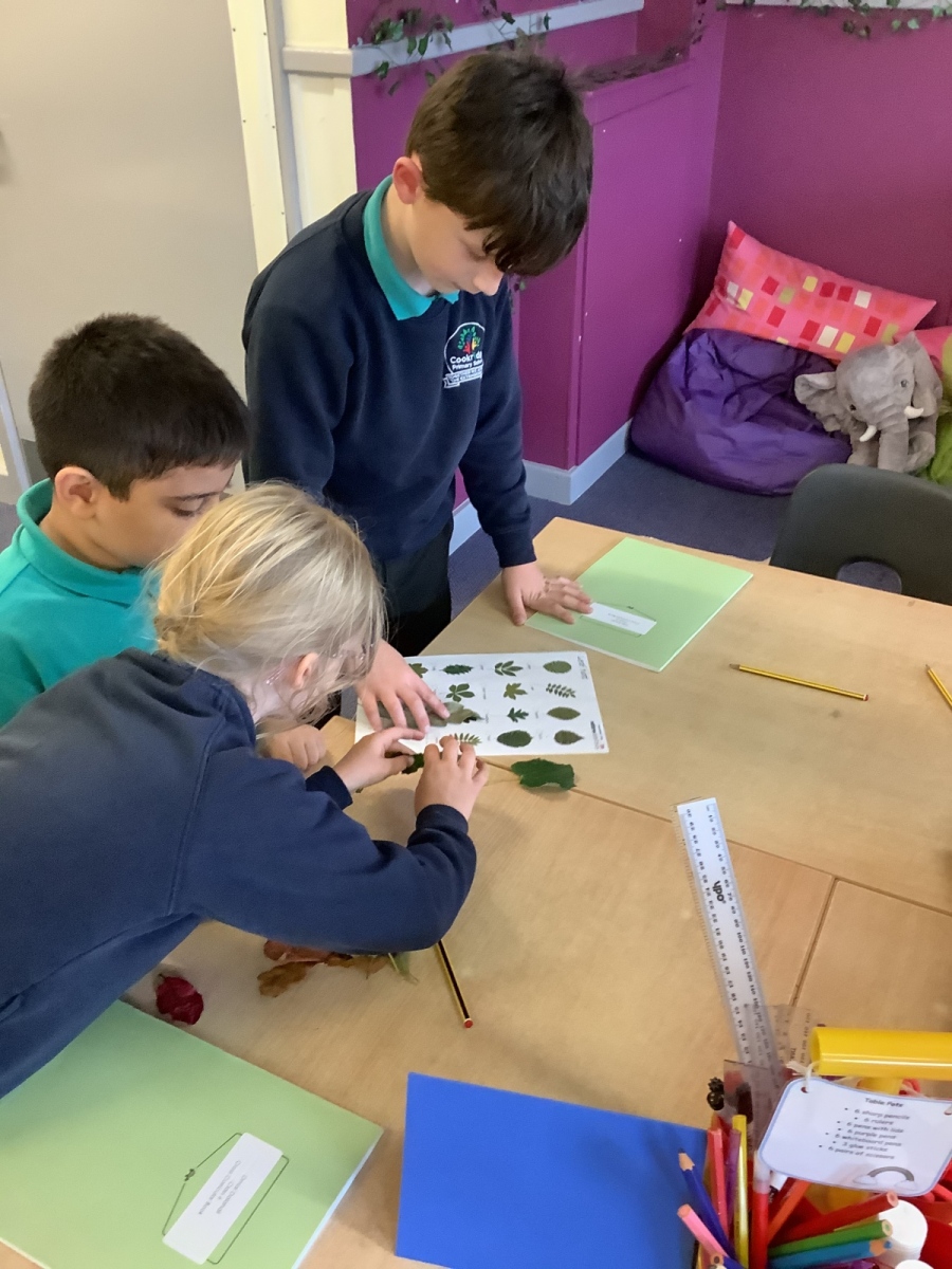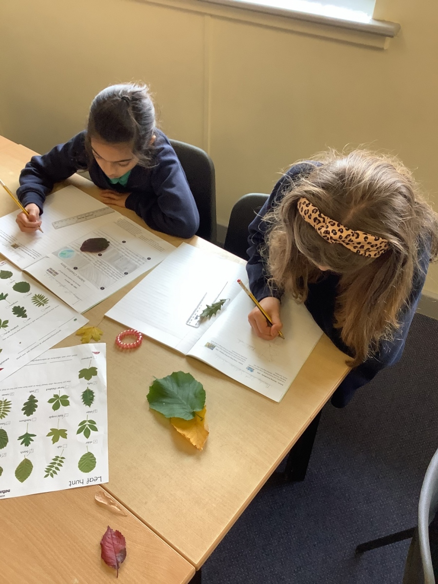 Class 6 had a great science lesson yesterday afternoon! As part of our learning about classification keys, we learned about how to identify different types of leaf. We foraged around the school grounds looking for various kinds of leaves, discussing their different shapes, sizes and colours. Then we brought them back inside and used an identification sheet to find out what kind of leaves we had collected! Finally, we sketched and labelled the leaves in our books. We also discussed our findings, identifying which leaves were most and least commonly found during our hunt.