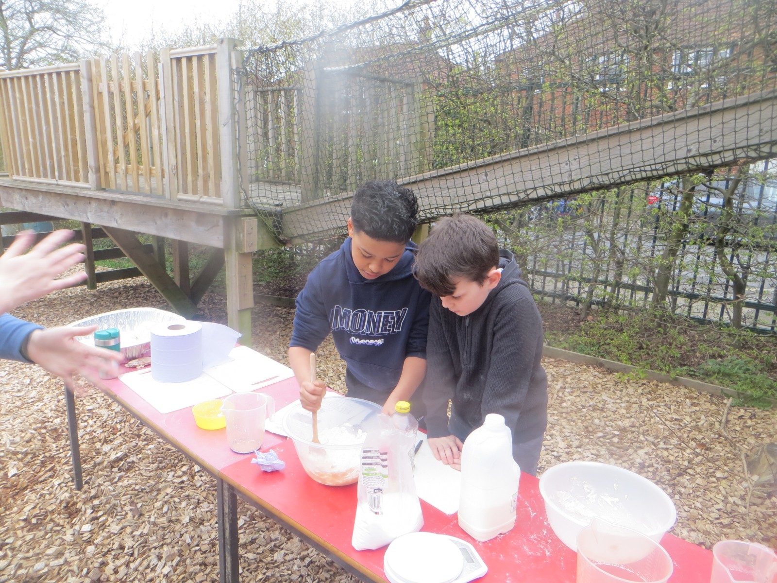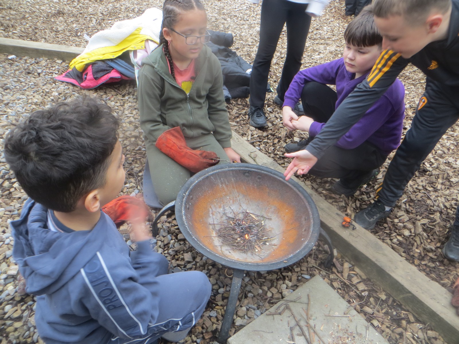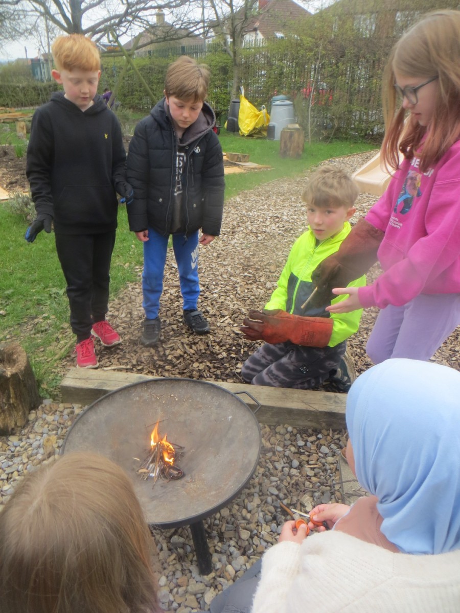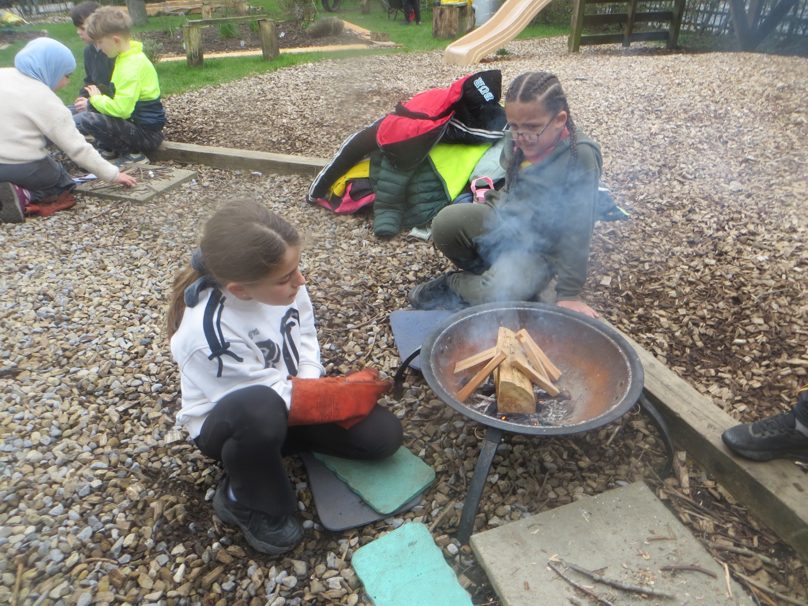 Pupils in LKS2 have spent the morning being Ancient Egyptian bakers! Using their Forest School fire skills, classes were tasked with making flatbreads using a recipe over 2,000 years old for our parent event this afternoon. Children worked together to build, light and maintain open fires whilst other pupils worked hard to make the dough. Carefully following the recipe and instructions, children weighed, mixed and kneaded the contents until it was a consistent texture. Next, they cut the dough, rolled it and flattened it ready for cooking outside. Just like the Ancient Egyptians, we then used a bread oven over a fire to cook the dough and, like all good chefs, we taste tested our food before the afternoon. All the children agreed it was delicious and for that extra sweet taste some children added honey to their bread – the Ancient Egyptian equivalent of sugar! As we reflected, children discussed the importance of learning skills to use for purposes (such as the fire making skills we have done since January) and the sense of satisfaction and achievement you feel when succeeding in a task.