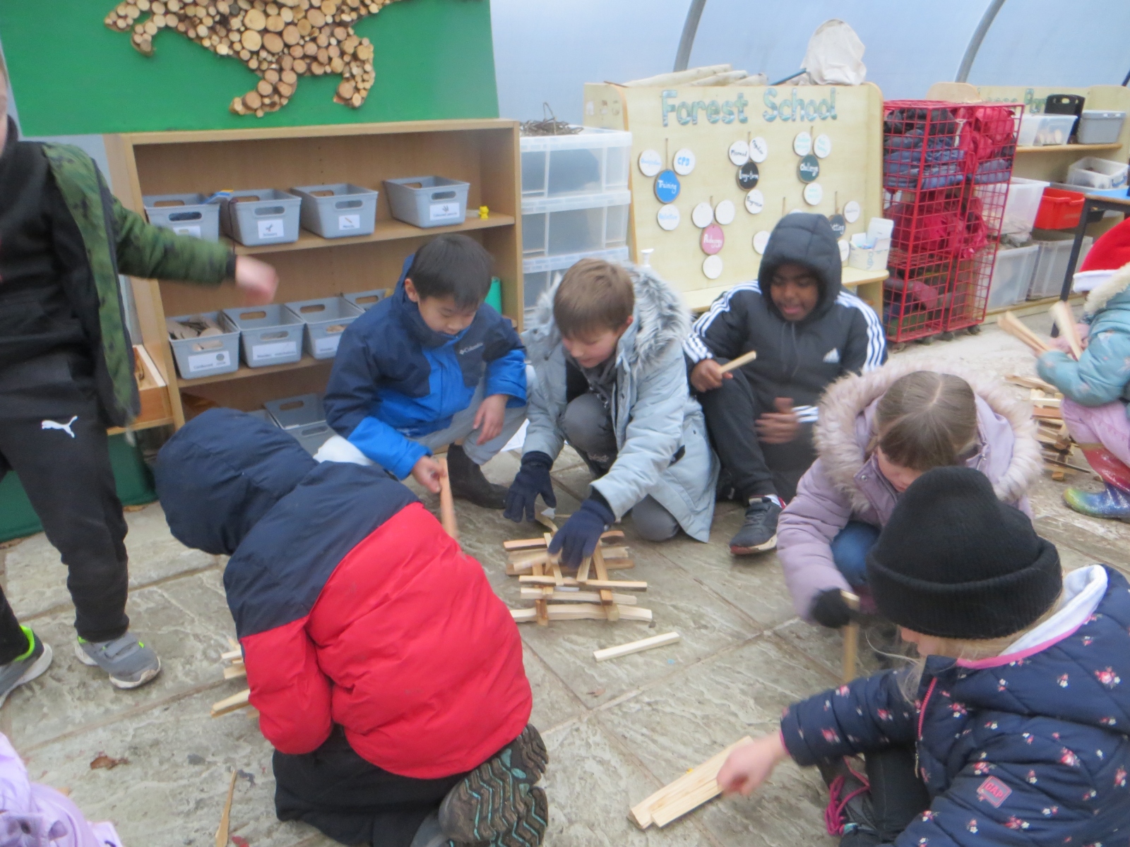 Today, whilst sheltering from the torrential rain in the polytunnel, pupils in LKS2 began learning about the ‘fire triangle’ and how to construct fire lays. To begin with, groups had to identify different types of fire lays Mr Gamble had built and critique them against the laws of the ‘fire triangle.’ Children were able to explain features of the fire lays which were good as well as mistakes Mr Gamble had made! Afterwards, groups were then challenged to make their own fire lays which included teepees, log cabins and lean-tos. Whilst constructing them, teams had to think about air flow, heat and fuel ensuring they would be successful in lighting a fire.