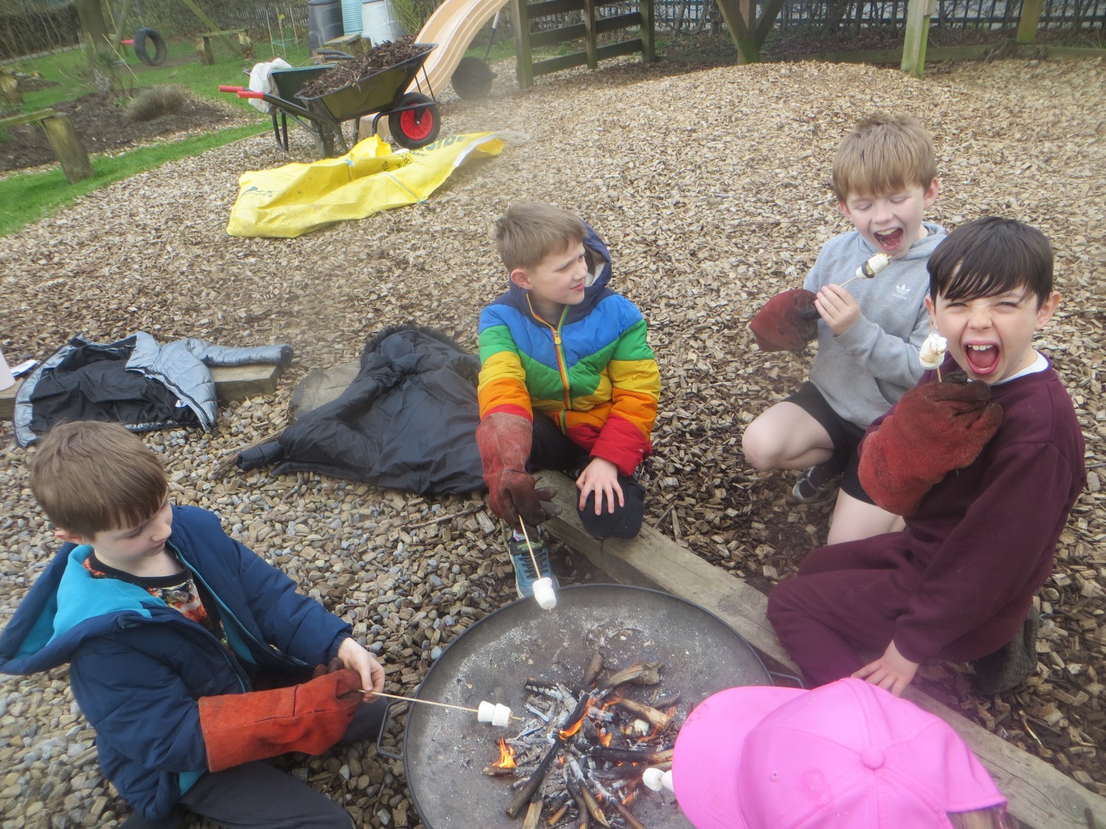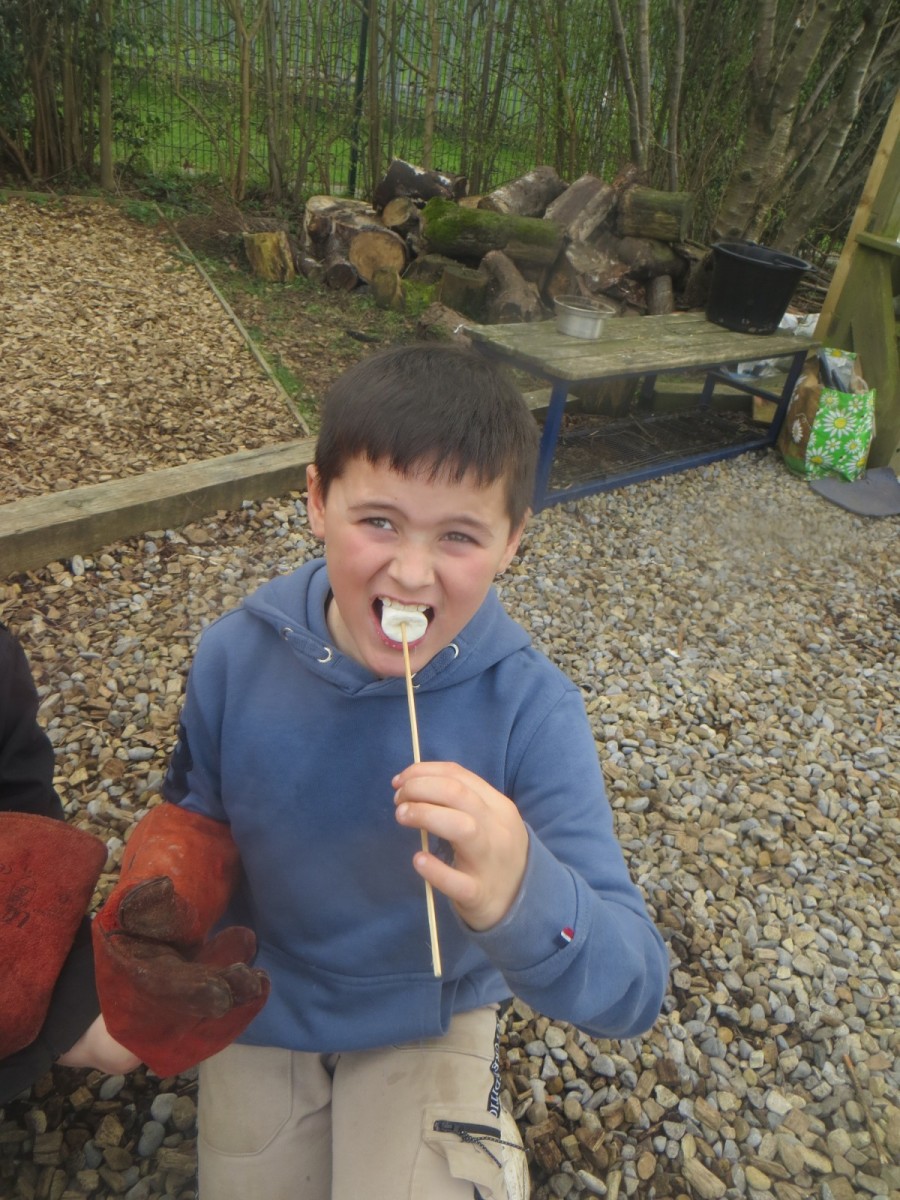 Pupils in LKS2 continued their series of lessons on fire making in lovely Spring sunshine throughout the course of the day today. They revisited previous learning on using flint and steel to make sparks, how to build different fire lays and their benefits and disadvantages and how to maintain and grow a fire. Children then worked in groups to build a fire lay, light a fire and grow it. Along the way, they needed to use lots of resilience, communication and problem solving, particularly when their fire went out. If children were successful in creating a fire hot enough for cooking, children were able to roast marshmallows over the fire using safety gloves – a delicious reward for their fire making skills!