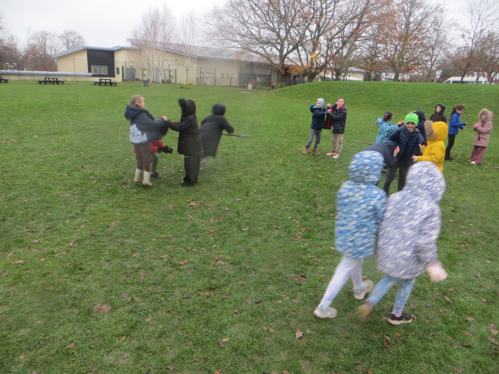 Today pupils in LKS2 have built on their knowledge of Forest School games. To begin with, children could choose to play one of the four games we have already learnt. Whether they were playing Ninja Sticks, Stick Toss, Fire and Tarps or Tail grab, pupils had to ensure the games were fun and fair by knowing, sharing and following the rules of the game. Afterwards, we discussed the make up of games and, despite them seeming quite unstructured, they are only good games that people want to play when they have firm rules which are followed. Children then had the rest of the session to devise their own games using a range of resources available to them – from ribbons and sticks blindfolds, rope and bells. There were some excellent games created, such as Forest Fetch and Stick Ladders, and the children had a wonderful time learning and playing them with their friends. Some were so good that Mr Gamble is going to add them to his bank of Forest School games to play with others in the future! Well done LKS2!