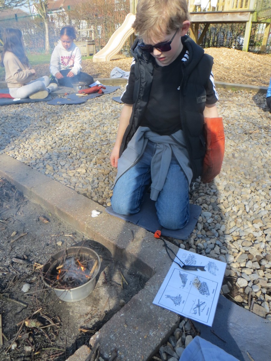 Building on their knowledge of fire making from earlier in the year, pupils in LKS2 were challenged with learning how to use kelly kettles in order to boil water. Making a fire lay inside a kettle base is a tricky, complicated and delicate job but one the children persevered with and we managed to get some fires going. Remaining safe in adding the kettle, feeding the fire and managing their risk, some teams then heated the water further before pouring into cups to enjoy a tasty reward of hot juice for their hard work. This knowledge will build week on week so that the pupils will be independently making their own nettle tea – just like the Romans did!