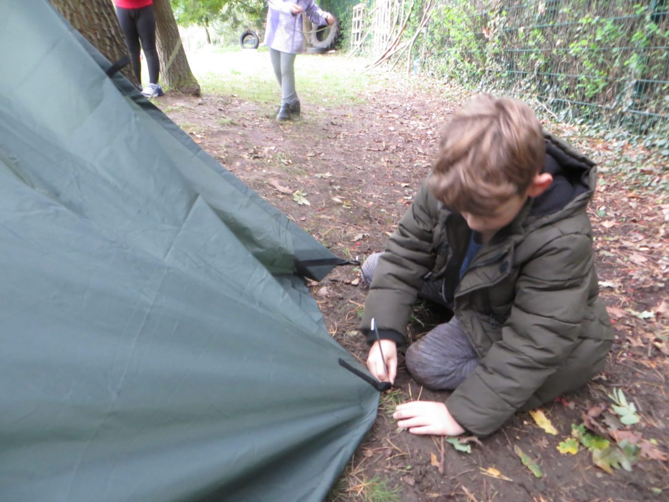 In Forest School this week, LKS2 we have put their knot knowledge to the test by creating shelters using Bowline and Prusick knots. Teams were given a shelter building kit box which contained a tarp, tent pegs, paracord and a float line rope. After a crash course in how to erect the shelter correctly, children worked together and problem solved continuously to build a shelter that could keep them dry if it rained and could fit all members of the group inside. Afterwards, we reviewed and reflected on the session and discussed ways to improve our shelters next time.