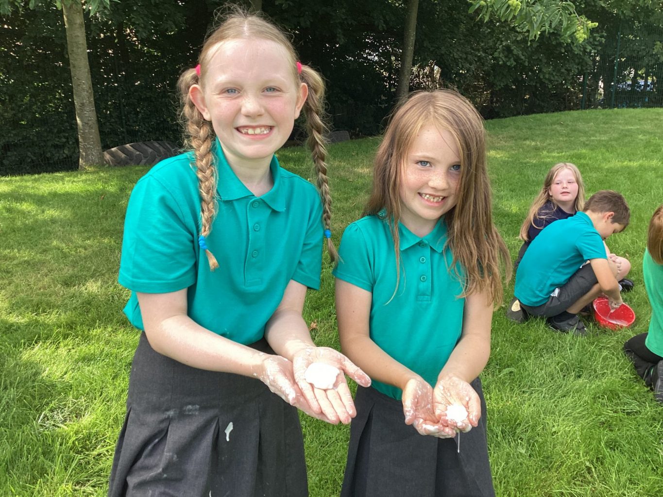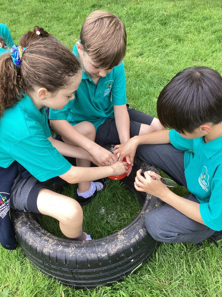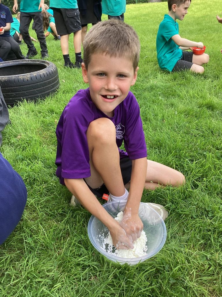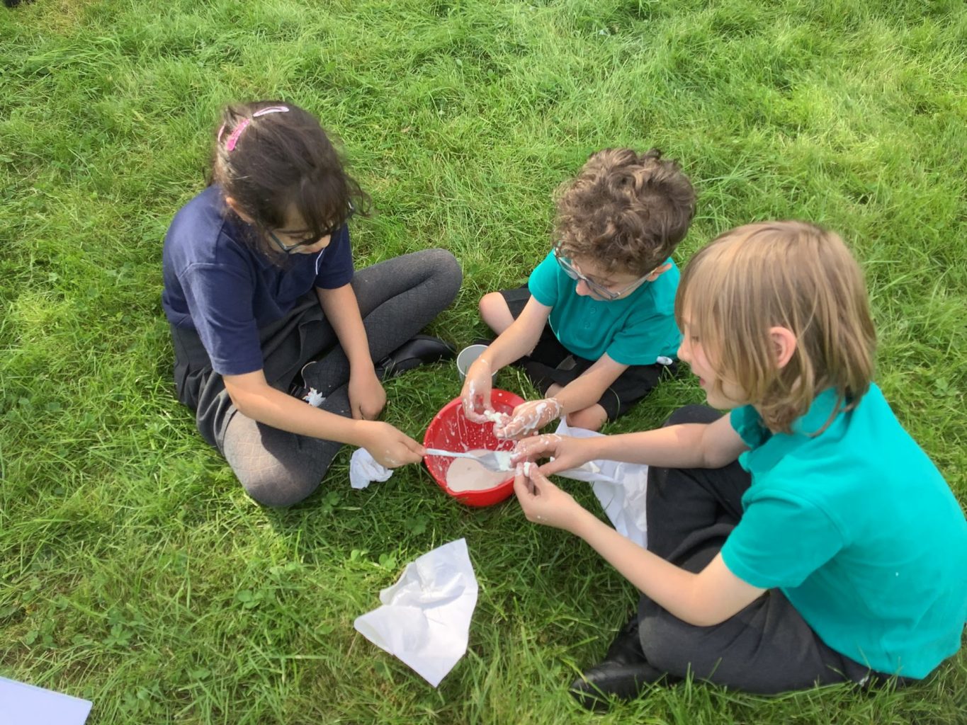 In science, we thought carefully about how to conduct an experiment. First, we considered what makes something an experiment, and learnt that it is to test something, record what happens, and use your observations to answer a question. We followed careful instructions to set up our own practical experiment by investigating whether cornflour and water make a solid or a liquid. We realised that the mixture could both be a solid and a liquid. This was because it is a ‘non-Newtonian liquid’ which means that the same material may appear more thick or runny in different situations – depending on the force or pressure applied to it.