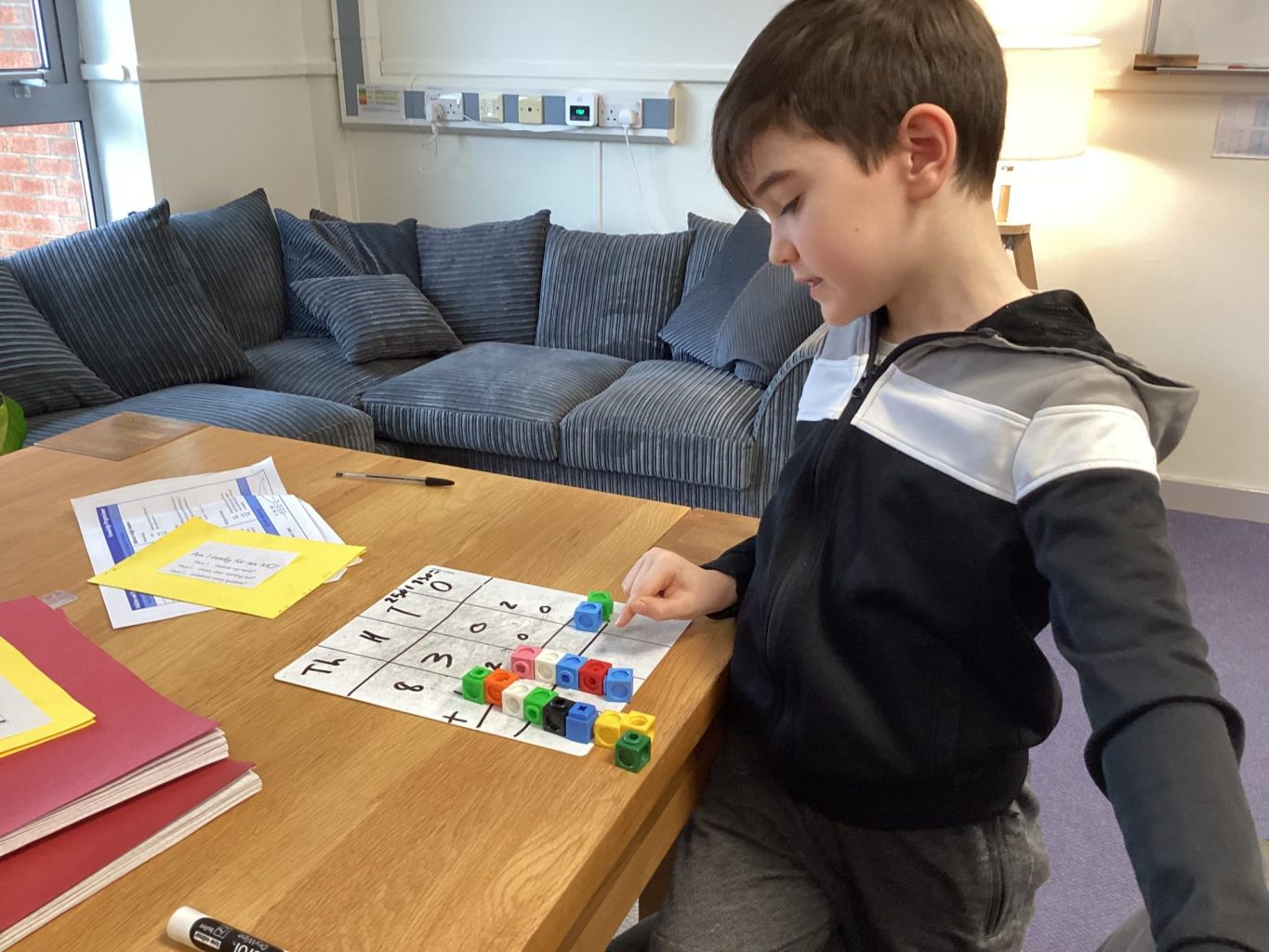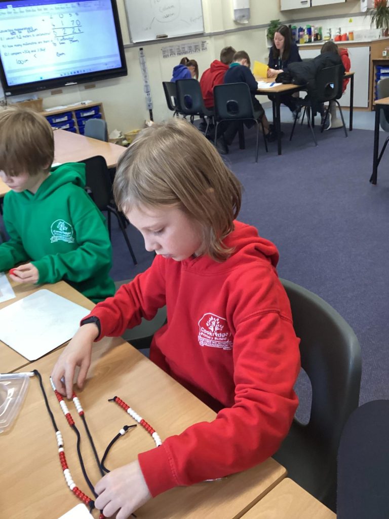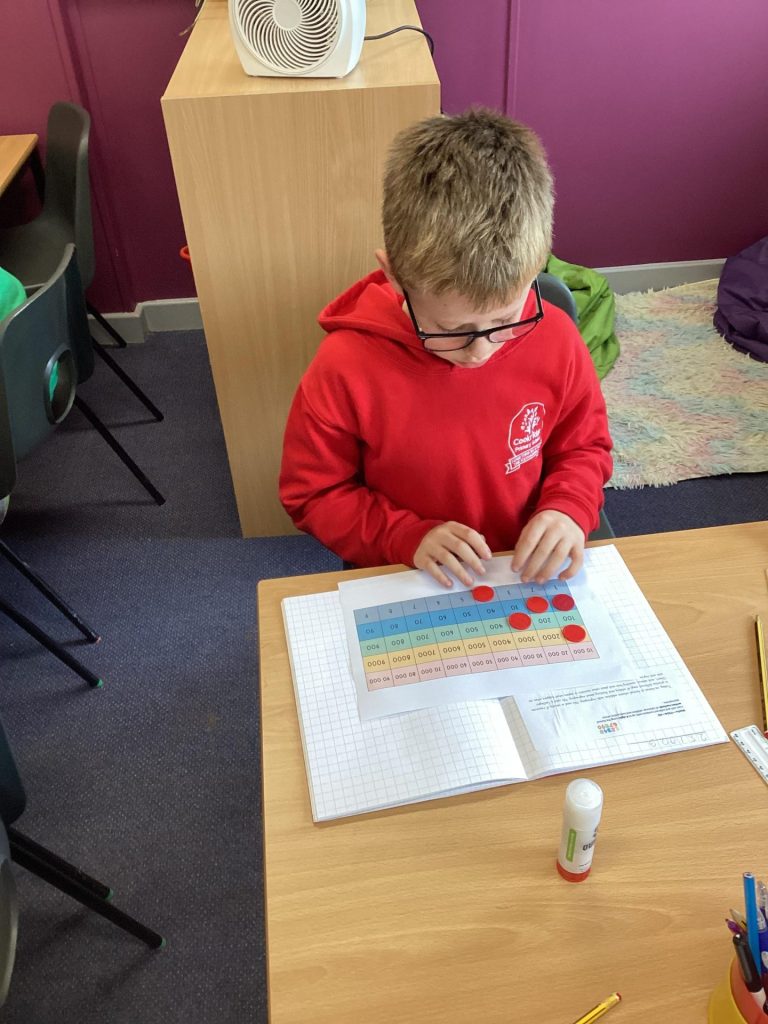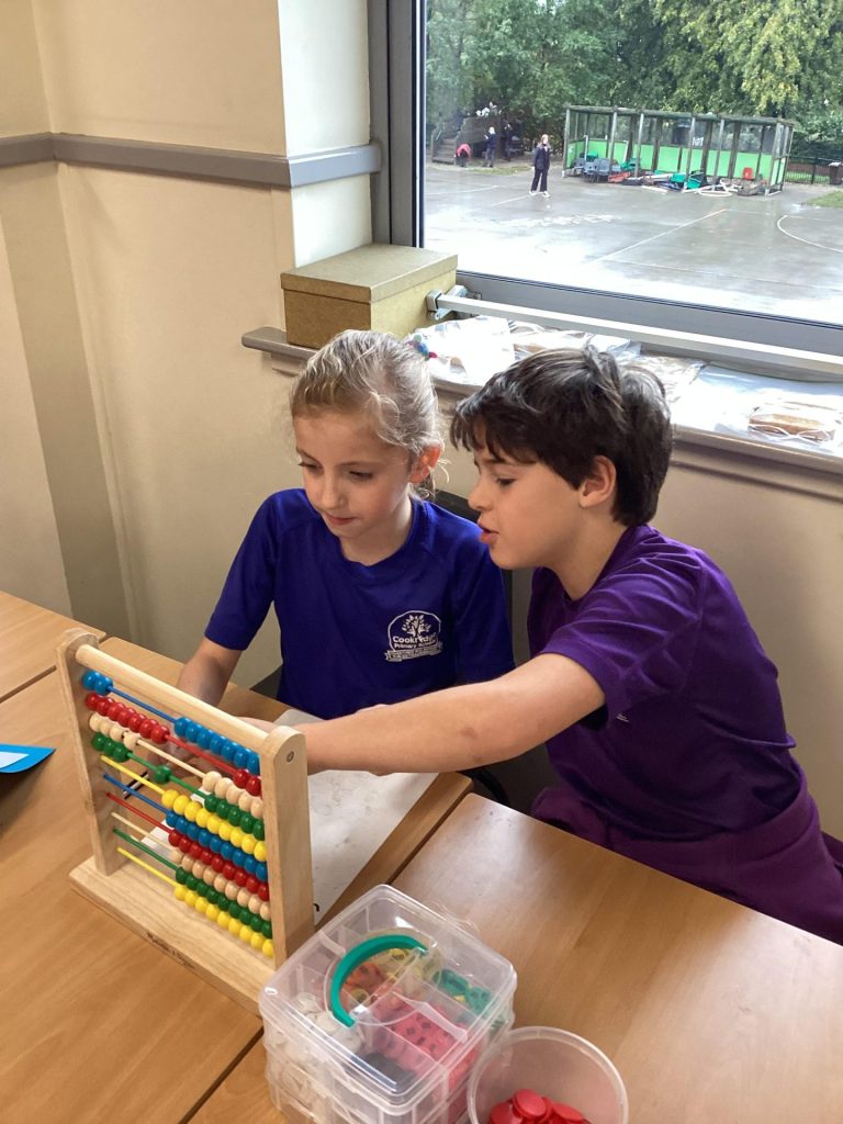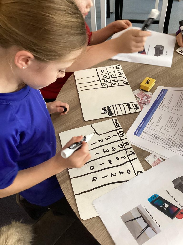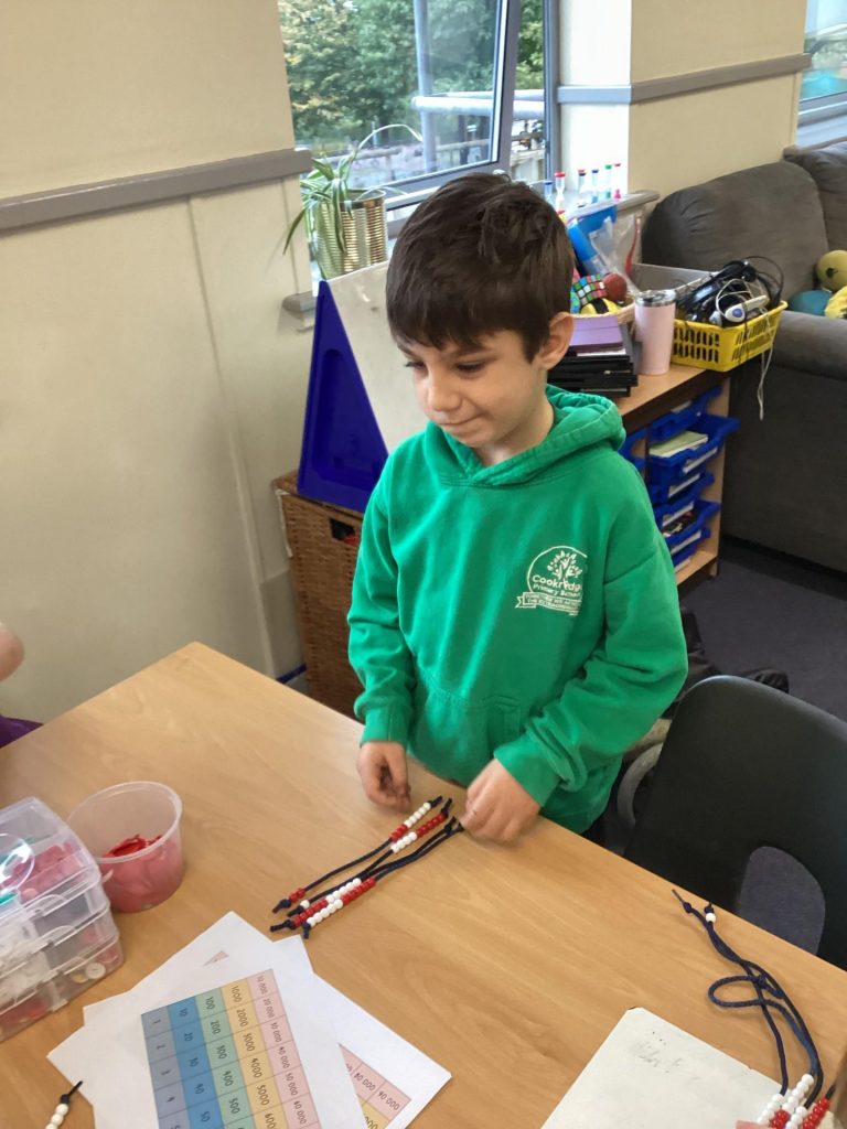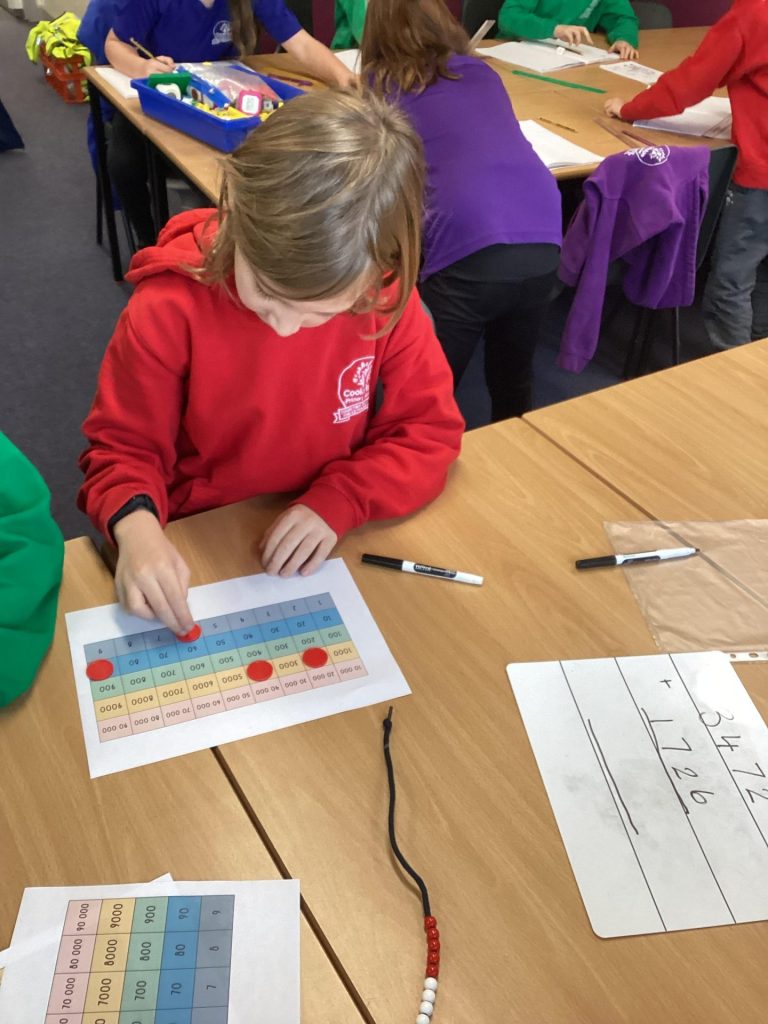 Over the course of this week, the children from Miss Chambers’ maths class went shopping and applied the column method of addition and subtraction. They were given a budget of £9999 and a shopping list. They had to work out the total cost of their shopping list from four different shops, using the column addition method. They then had to work out which shop was the cheapest by using column subtraction to subtract the total cost of each shop from their budget. In Miss Bourne’s group, we looked at formal column addition with regrouping. We used a variety of resources to practise different ways of adding and thinking about regrouping. We used a Gattegno Chart, and abacus, counting beds and place value counters to explore what happens when we add and regroup.