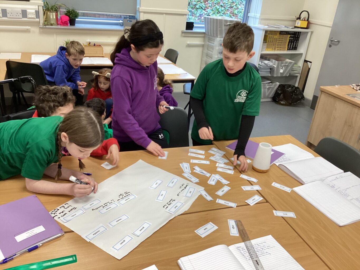 In English, we explored homophones as a group. We had to match pairs of homophones together, and then we used a dictionary to look up their meanings. We stuck the homophones and wrote the definitions on to sugar paper. Then, we chose one of the homophones to use in a sentence and wrote our sentence on a white board. We also developed our summarising skills by focussing on the key events from the story so far. In groups, we brain stormed which events were of most importance to the plot so that we could include the 6 key points. We then used the SOMEBODY, WANTED, BUT, SO technique to help us chronologically order the events. We used Purple Mash storyboard creator to record the key events and in our groups we took pictures of ourselves doing freeze frames to match our sentences.