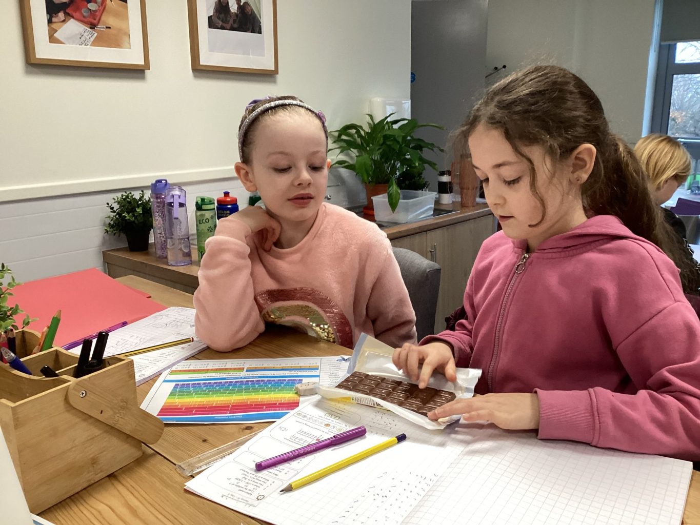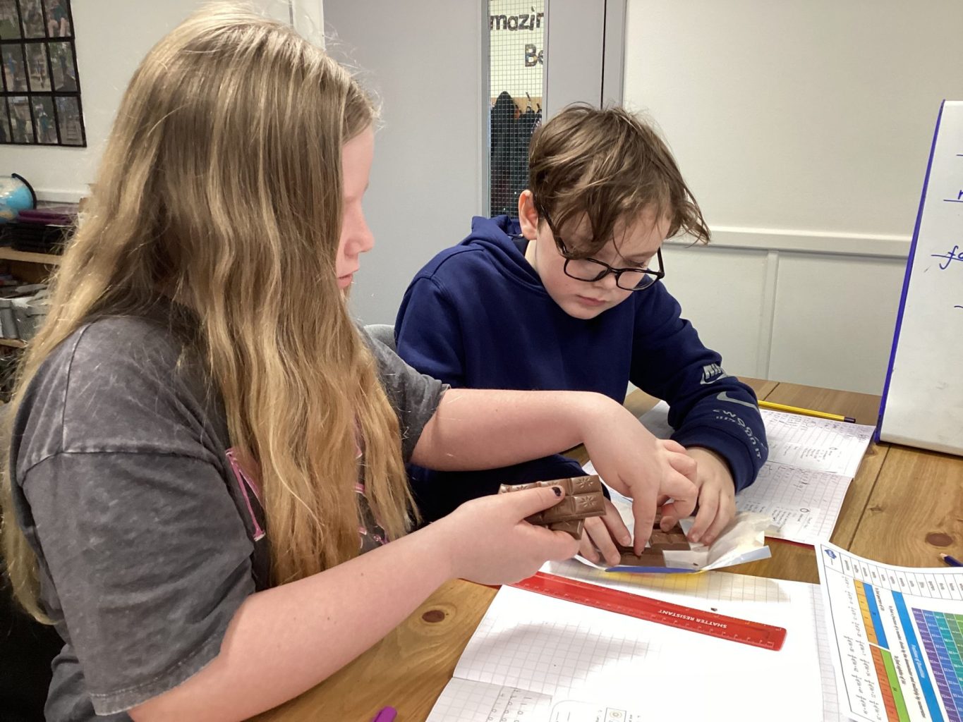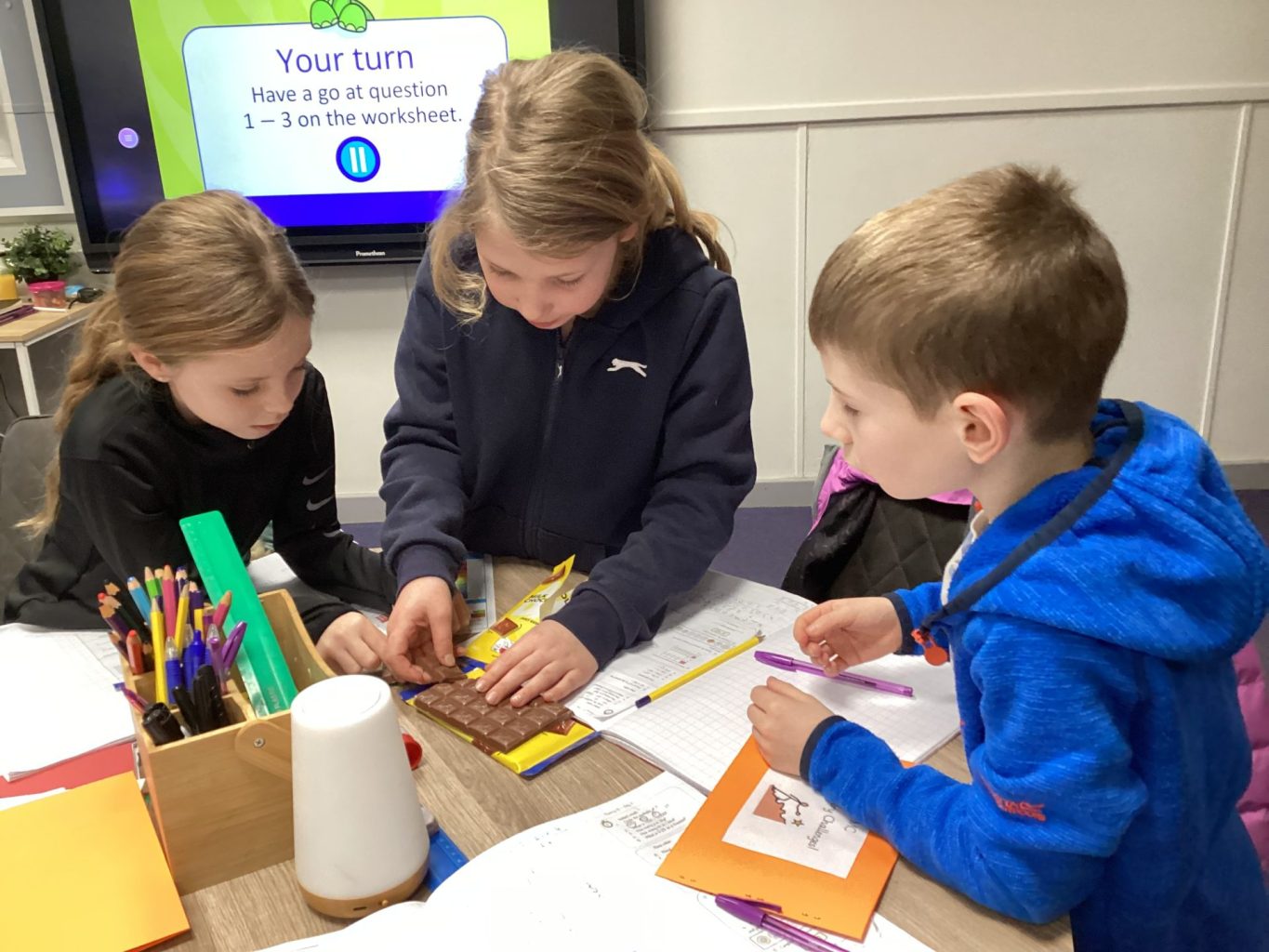 Today, the children in Miss Chambers’ maths class started their learning about fractions! To do this, they used chocolate to investigate halves and quarters. Then, they used White Rose Maths questions to identify the fraction and decimal equivalents.