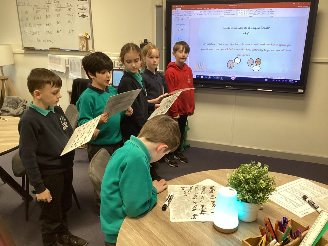Yesterday in RE, the children used their understanding about rituals and celebrations to debate. First, they decided their class rules for debating so that a safe and support environment was created for differences of opinions. Then, the children were given a scenario about a teacher creating her own festival and requesting a day off school. They considered what made traditions traditional; whether a celebration had to be religious for it to be worthy of time off school; and who decided how important celebrations are. The children had a rich debate, where they all shared and justified their opinions.