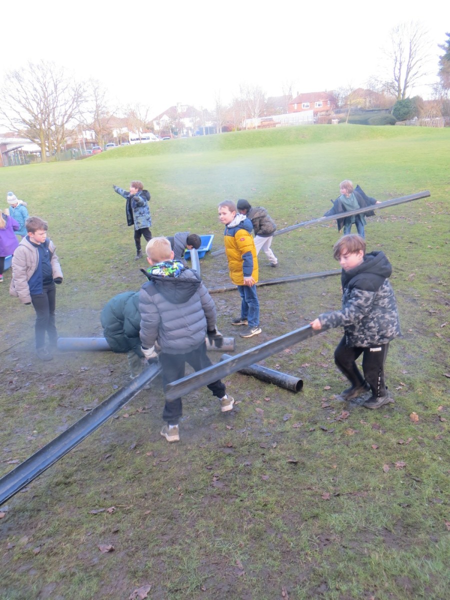 Today in Forest School, pupils in LKS2 continued linking their sessions with the Romans and their great engineering feats. We discussed and discovered more about the many impacts the Roman Empire had on Britain including aqueducts. These structures provided towns and homes with clean, running water. Pupils were then set a series of challenges based on creating their own aqueducts which would enable them to transport the water in the lake in the mountain into the Roman town situated in the valley below. Groups successfully created mini aqueducts to transport water over a short distance and, although no group quite achieved moving water across the field using an aqueduct, there was no lack of teamwork, communication or problem solving on show throughout the day.