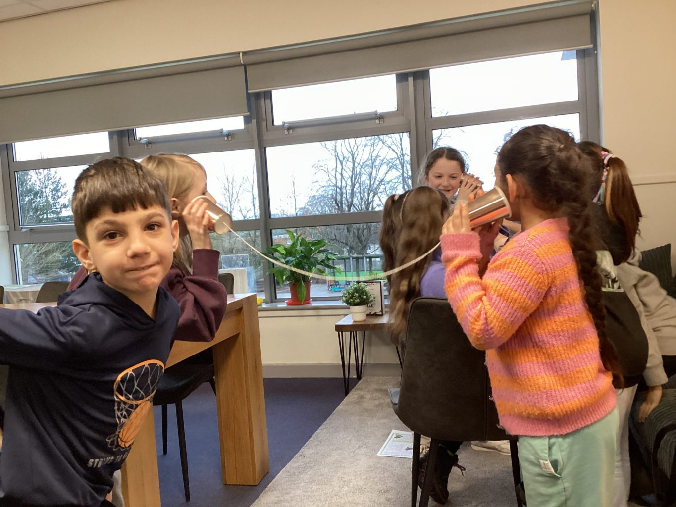 Yesterday in Science, we have learnt more about how sounds travel. To begin the lesson, we recapped what a sound it and how sounds are made by objects vibrating. We then figured out that sounds can be louder and quitter depending on how big the vibration is by getting some children to leave the room and make different sounds. We also found out that sound can travel through objects and some materials block sound more than others.