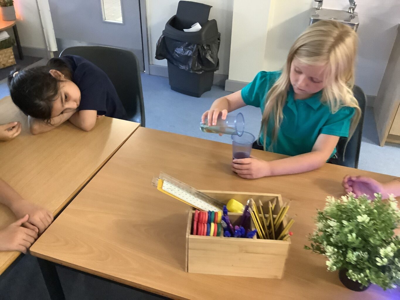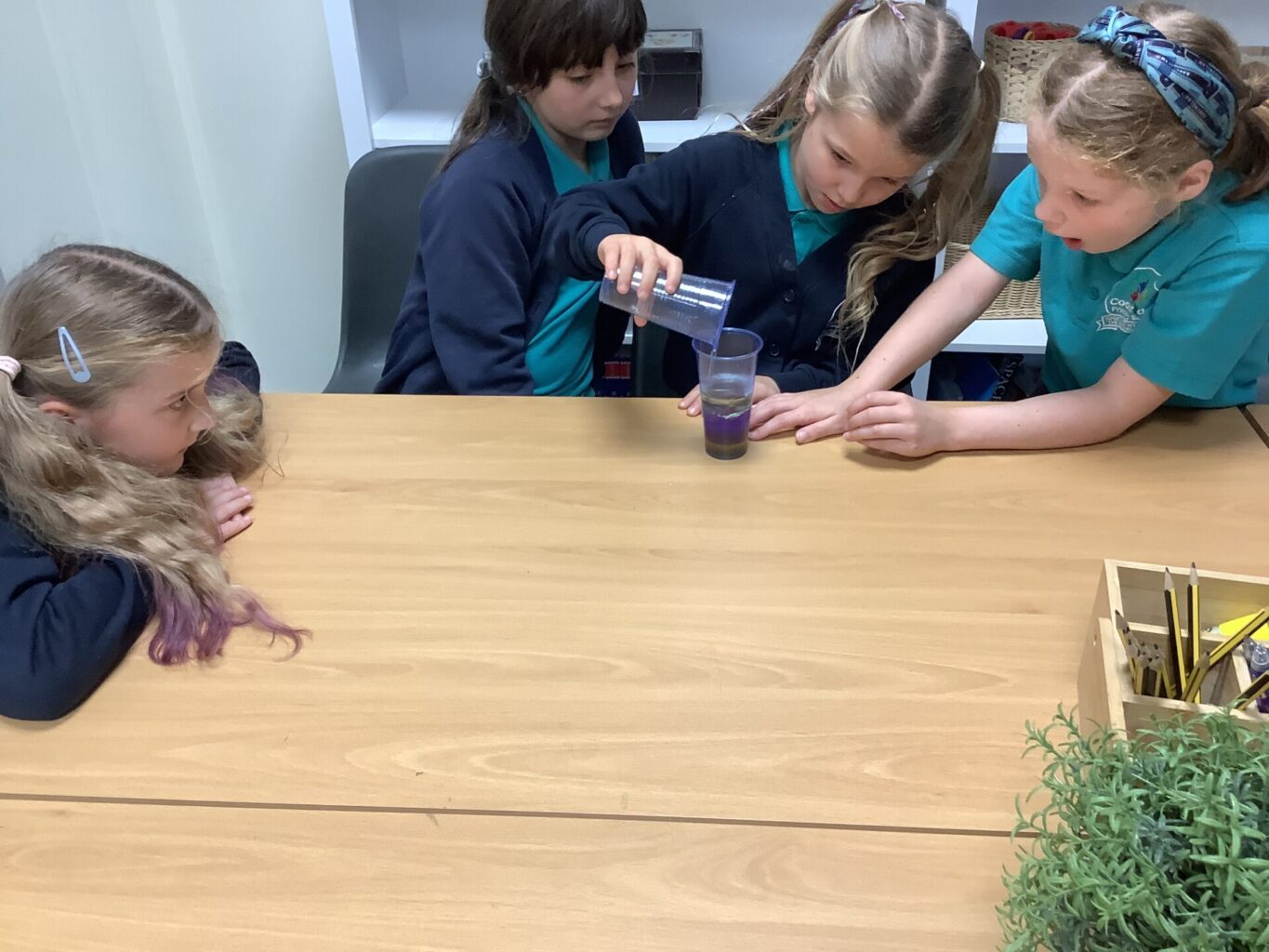 Today in science, we thought carefully about what a scientist is and what they do. As a class we came up with our own definitions and thought about how to conduct an experiment. We thought about our previous lesson and the new vocabulary we had learnt. We investigated what liquid density was and how each liquid is different. In groups we compared different liquids and predicted which one had the greatest density. We then tested out our hypotheses to see if we were correct. After we had completed our experiments children reflected and evaluated as a group.