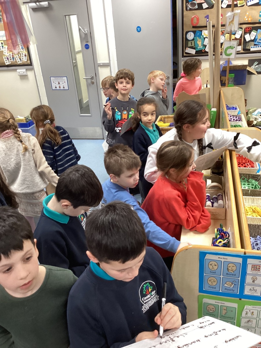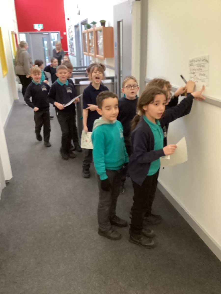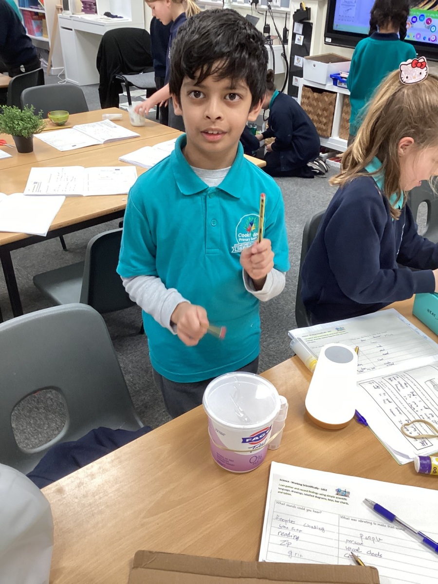 Last week in Science, we started our new topic of, ‘Sound’ and we looked at what sound is. We learned that sound is created when objects cause a vibration. We discussed some of the ways that objects can create sound such as plucking, banging and scraping. Then, we went on walk around the school to see what sounds we could hear and what was creating those sounds. We heard clapping, created by hands clapping, music, created by mechanical motion and lots of talking, created by vocal chords rubbing together.