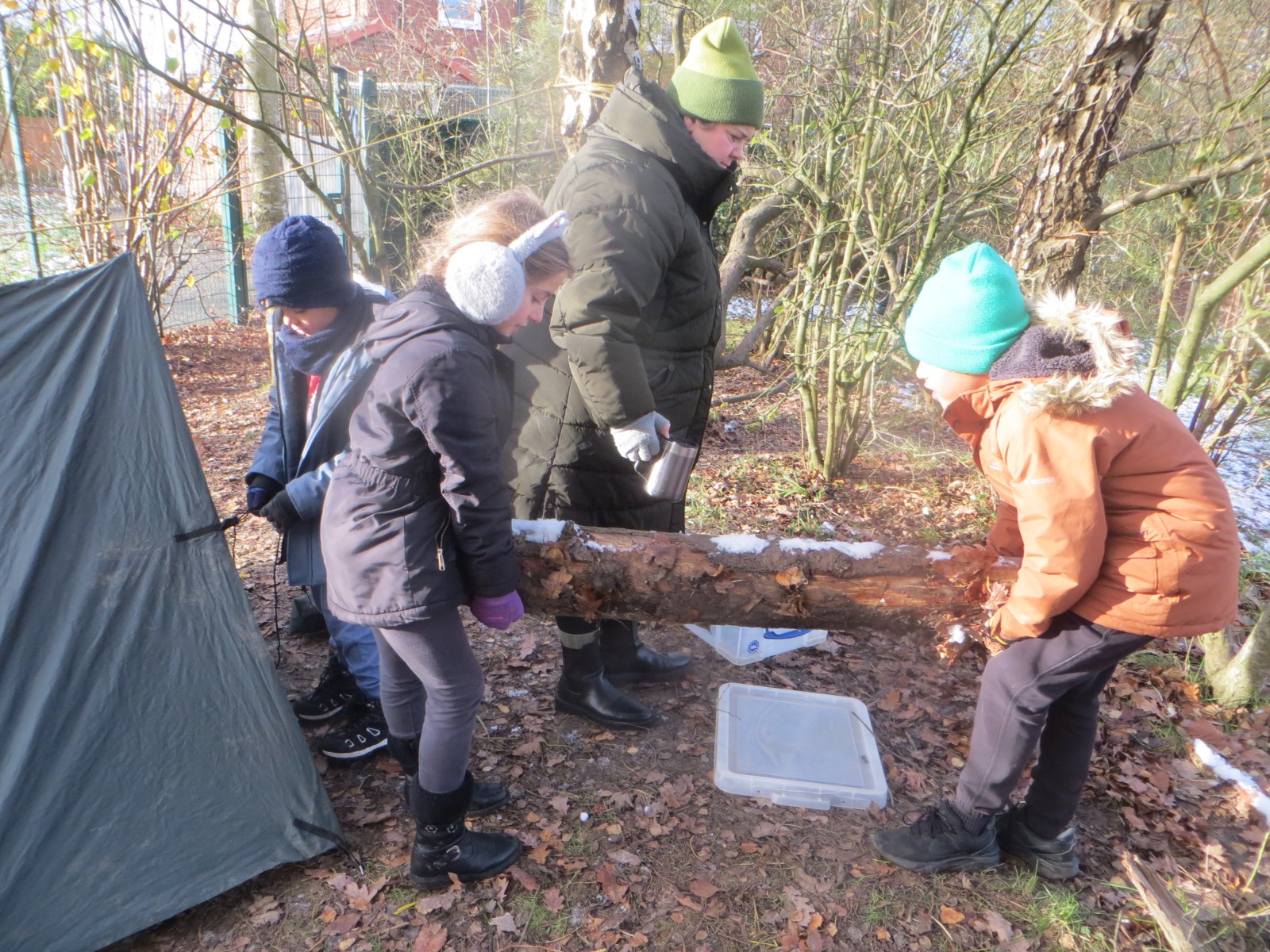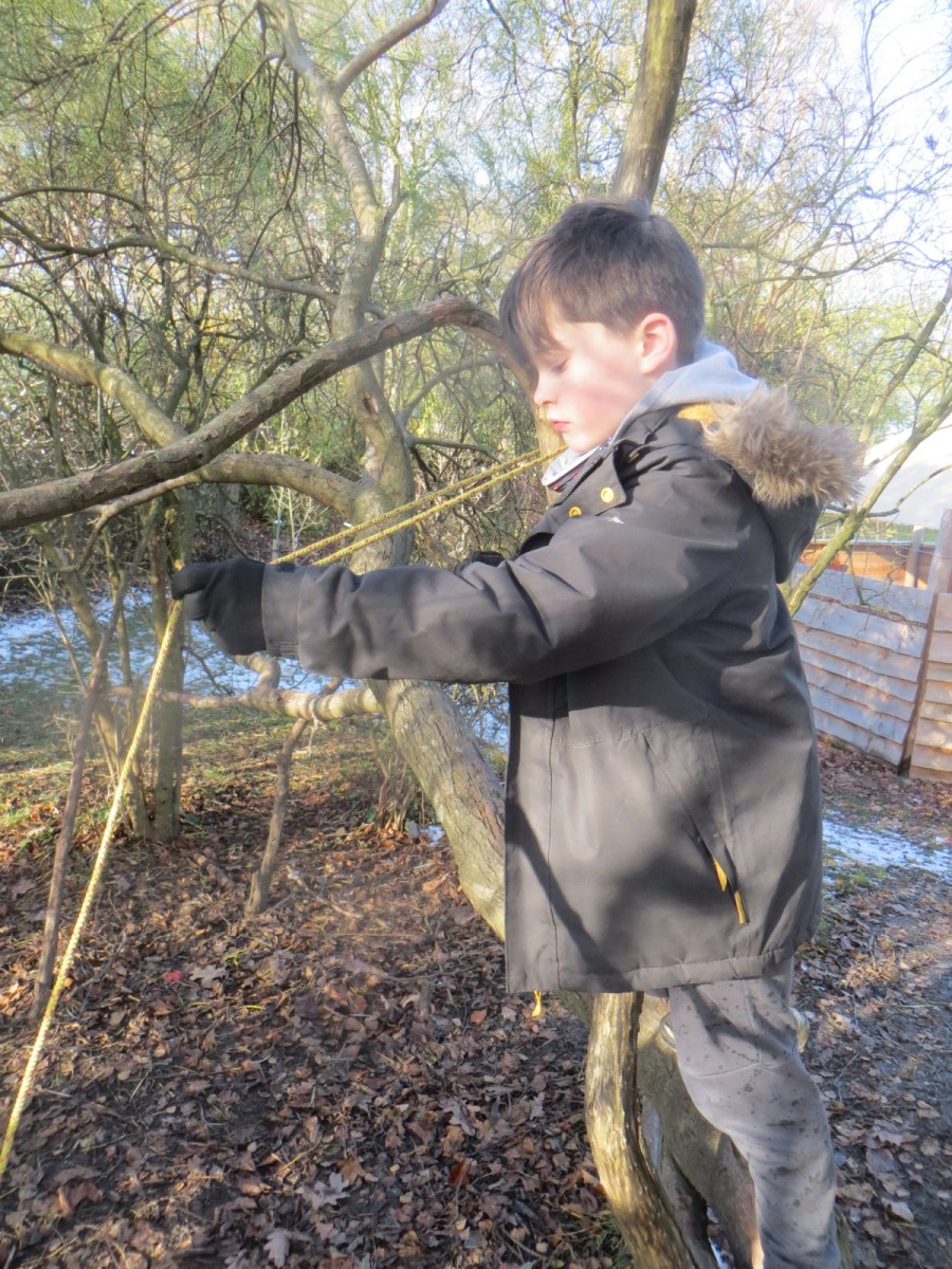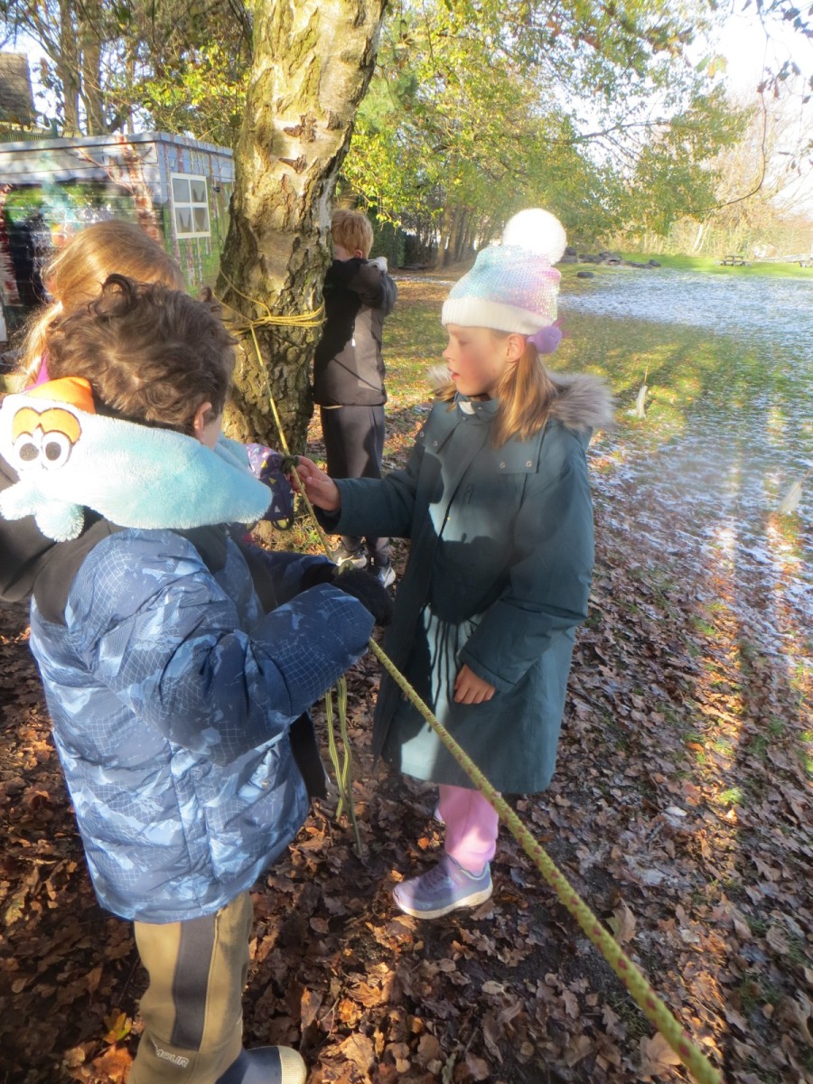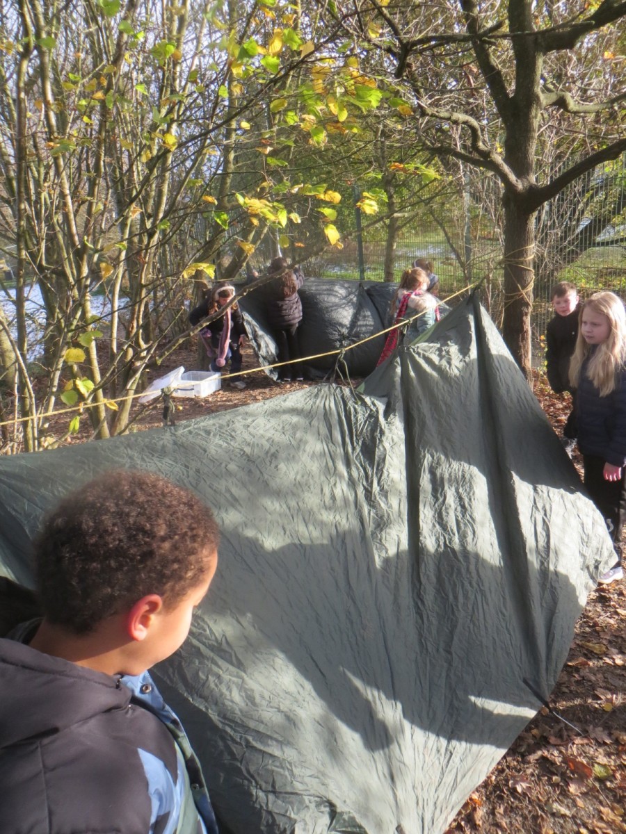 Today, in a bitterly cold wind, pupils in LKS2 completed their series of sessions using knots to make shelters. The lesson began in the classroom where pupils had a quick reminder and practice of the Bowling Knot as well as tying the other end of the rope to keep it taught. Next, pupils reviewed their last session where they celebrated what went well and offered advice and tips on what, and how, certain things could be improved. Afterwards, classes ventured outside to create their shelter in teams of their own choosing. As they went along, they learnt the importance of problem solving, working methodically and how teamwork, communication and respect for each other were just as important as the skills needed in tying knots and erecting a shelter.