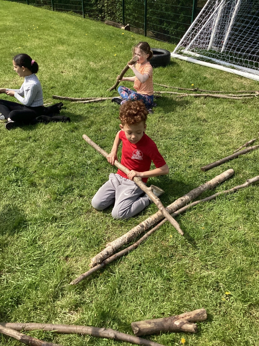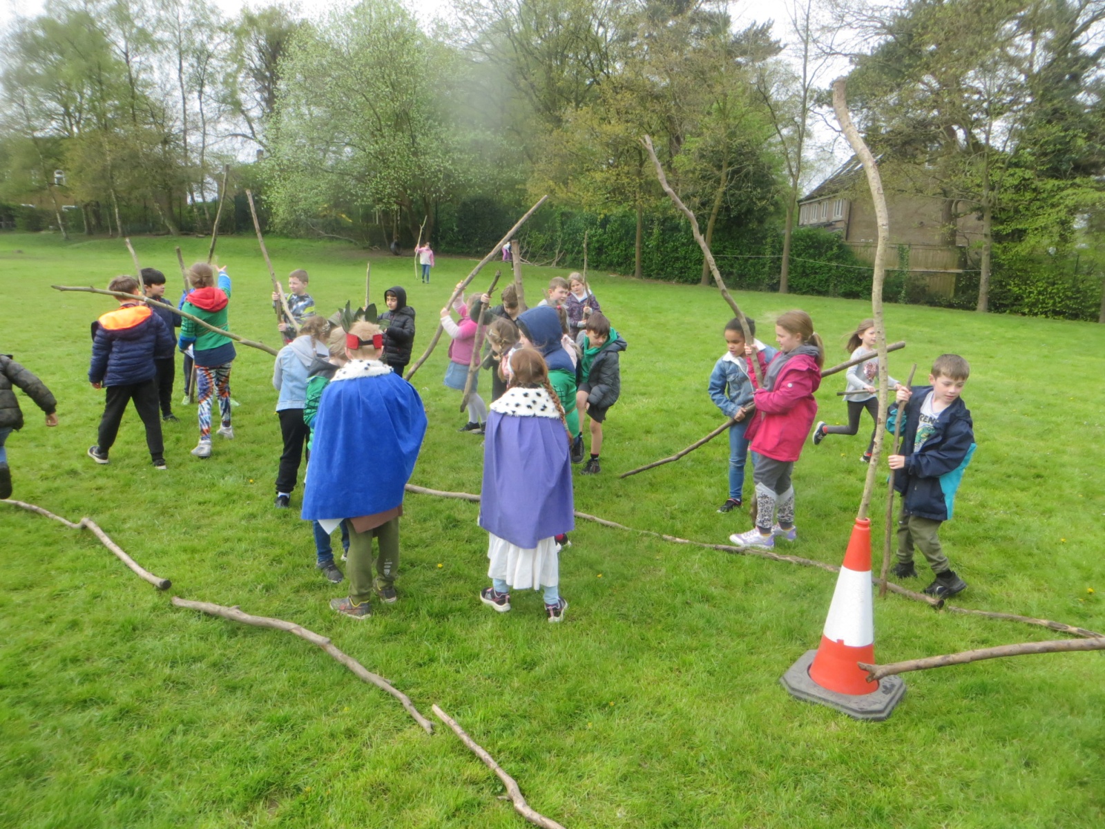 Pupils in LKS2 have had a fantastic time in Forest School as they were transported back to Viking times! Each Viking village appointed a Lord and Lady who oversaw a team of ship designers and warlords reponsible for carrying out a raid on Britain. Working as a team, villagers had to venture out into the woods of Scandinavia to chop down only the best trees for our Viking longship before bringing it back to the docks for the ship designers to piece it together. Once compelte, they were given a crash course in how to row and power a Viking longship before they set sail for the coast of Britain. After a long, ardous journey across the North Sea, the Vikings reached their destination and with shields, axes and swords at the ready, they disembarked and headed off to raid. They returned to the boat successful with a chest full of treasure and set sail for their homelands. Once back, the Lord and Lady laid on a huge feast in their great hall for the village. After a speech by the Lord, the Vikings tucked into traditional Viking food such as vegetable soup, fish, ham, vegetables and bread. Well done to all the LKS2 VIkings for today – most agreed that being a VIking was hard work!