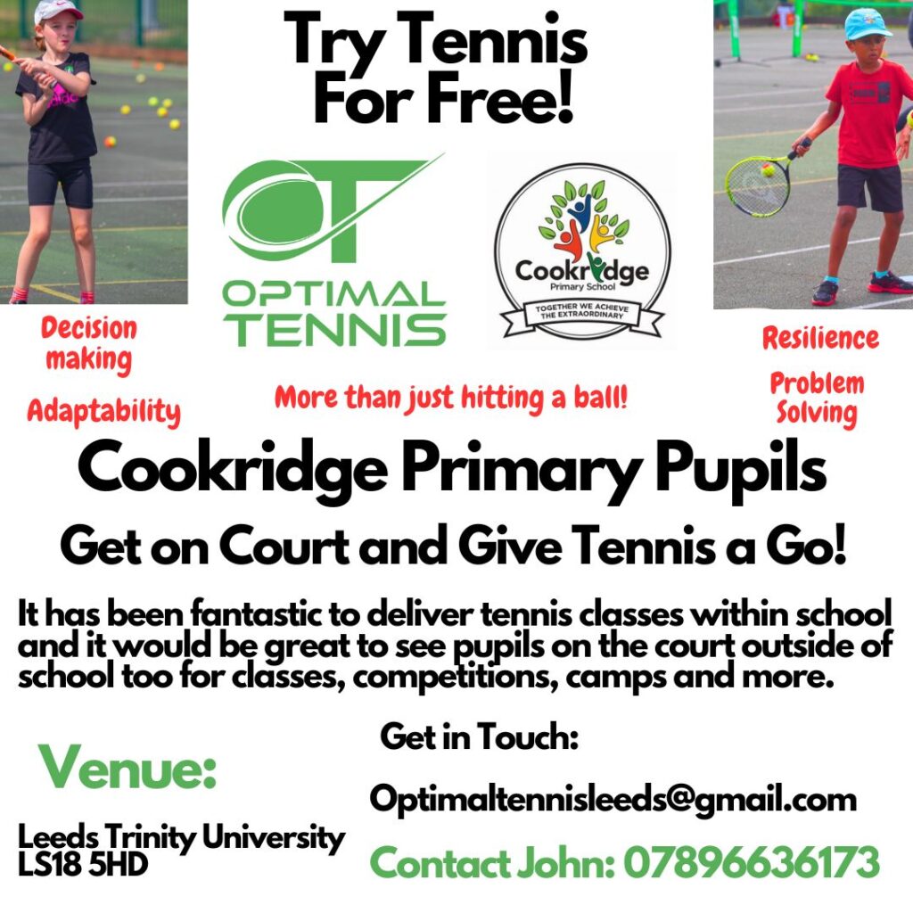 This half term, Year 4 and 5 have had a fantastic time learning tennis with John Moore. He is a fabulous coach from Optimal Tennis. The children have thoroughly enjoyed practising skills like forehand, backhand and rallying with a partner. The children have been enthusiastic and positive within the lessons and John has provided all children within Cookridge Primary School an exclusive offer to try a session of tennis for free.