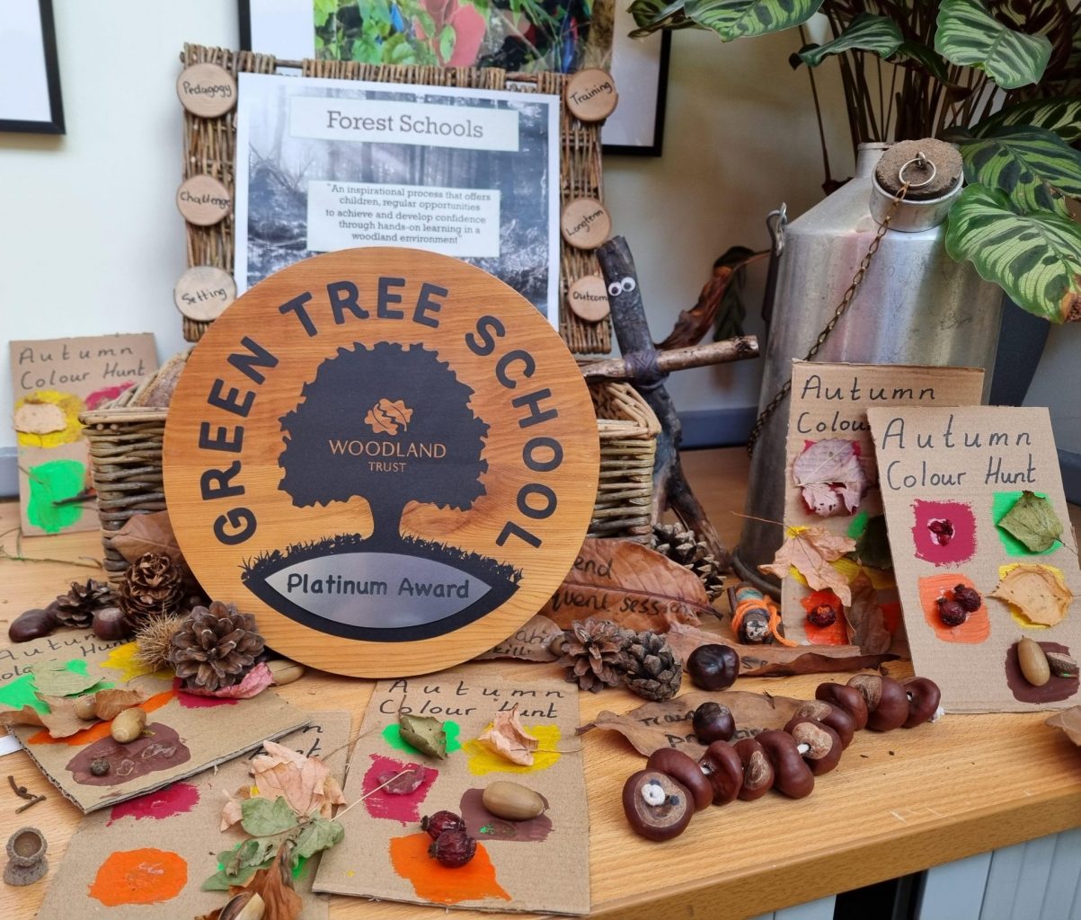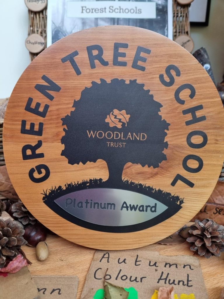 We are delighted to announce our school has been awarded a prestigious ‘Platinum’ award by the ‘Woodland Trust’ for getting involved in green activities including tree planting, visiting a local woodland, creative eco and Forest themed activities. This award is so special, because every school taking part will benefit from a range of free opportunities, fresh ideas, imaginative projects and great resources; many developed with teachers and tested by children.