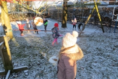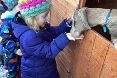 What a wintry wonderland we have enjoyed today in our Forest School session! The ice and snow added that little bit of extra magic and we thoroughly enjoyed making ice-creams, ice pies, ‘iceshakes’ and more in our temporary Ice Kitchen! Children also collected loose parts and put them in plates with strong and water in the hope they freeze overnight to create icy hanging decorations for the Reception playground tomorrow – keep your eyes peeled for the results on Friday! Pupils also helped Mr Gamble maintain a fire which we all used at some point in the morning to warm up our toes and fingers whilst all of us loved a winter walk with Mr Verdi on the school field where we tracked animals using their footprints and looked at different ice patterns on fallen leaves. Finally, all the pupils had the opportunity to visit our new goats – Nigel and Doughnut – and give them a tasty morning snack.