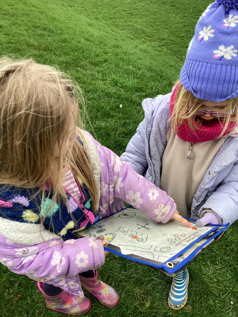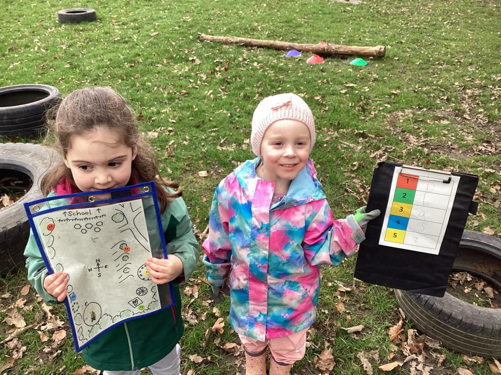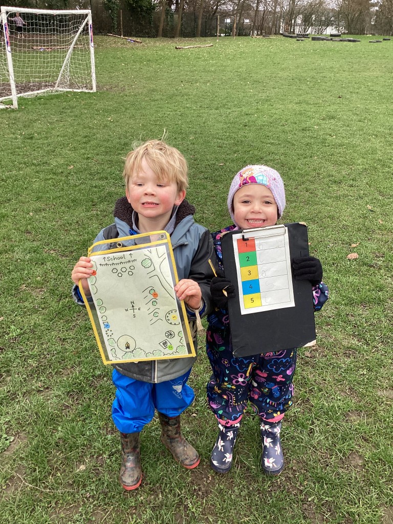 What a blustery morning we have had at Forest School! However, it didn’t stop the children having a great time outdoors where they completed lots of different activities. Pupils could lead their own learning in our Forest School area as they chose to build dens using sticks and tarps, create meals in the mud kitchen or play in the trees and on our swings. Children also revisited our learning from last week which was all about signs of Spring. Independently, children used the Spring checklist to conduct their own Spring Hunts around the grounds and could spot lots of things from their lists without the need of an adult – well done! Finally, children also had the opportunity to link in some of their work from the classroom to do with their mapping skills. Children could make a compass using clay and loose parts where they had to mould their clay into a shape, before adding the compass points and decorating it. Children could also use a map to locate hidden blocks around the field. Each block had a letter on it which spelled one of their words from phonics – could they use the map to work it out? Of course they could! Well done Reception on an excellent morning!
