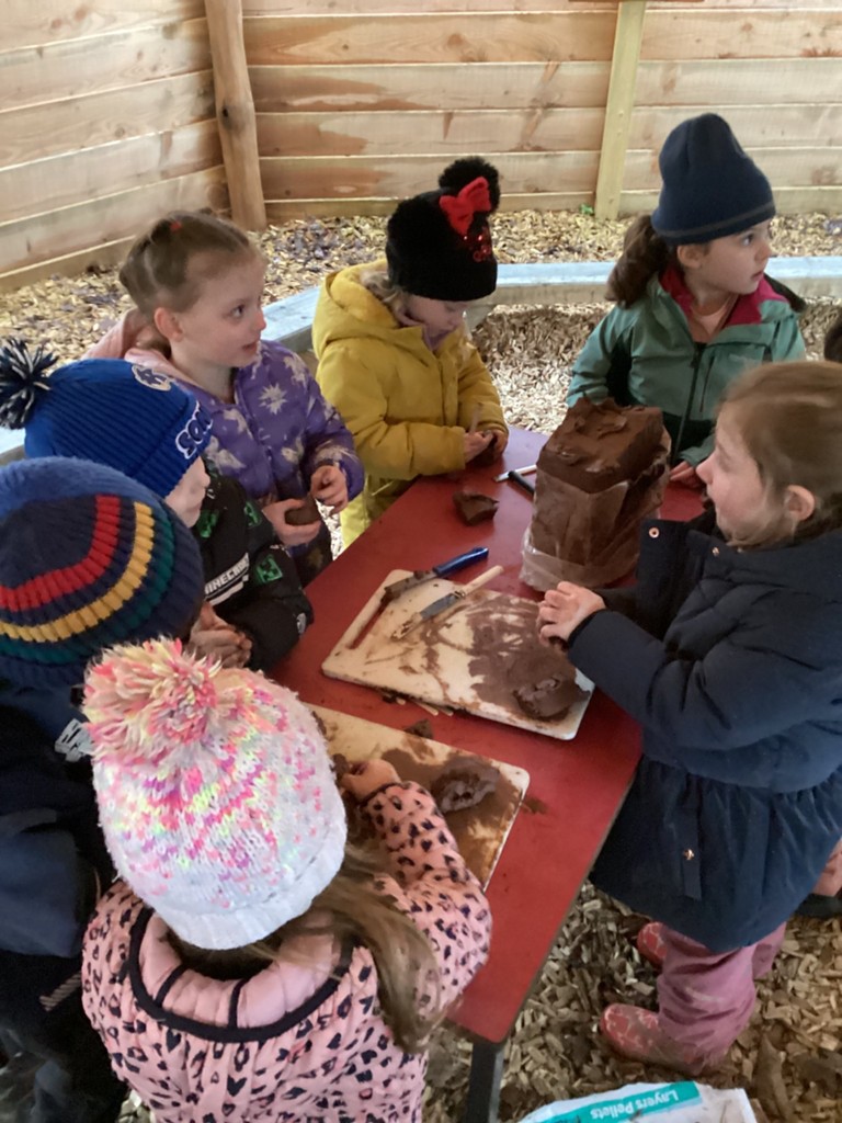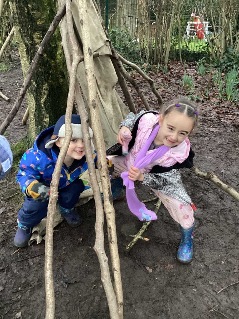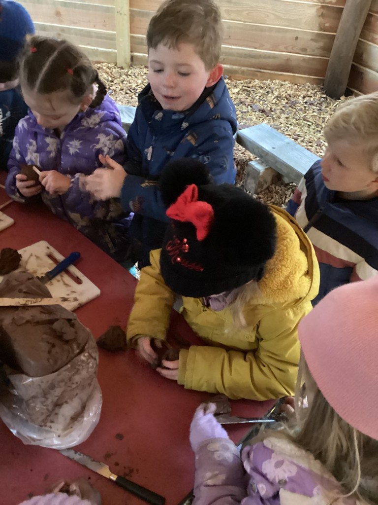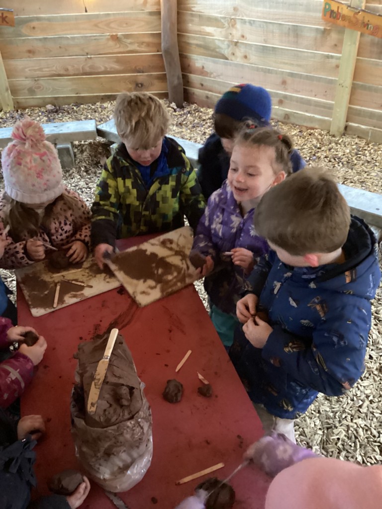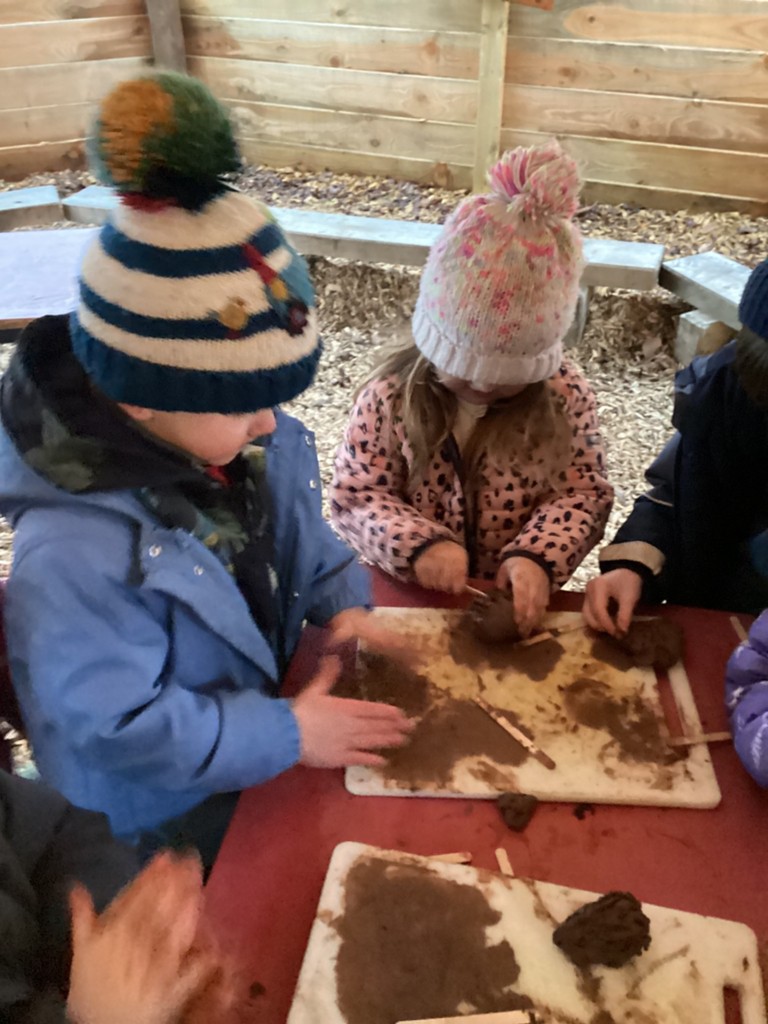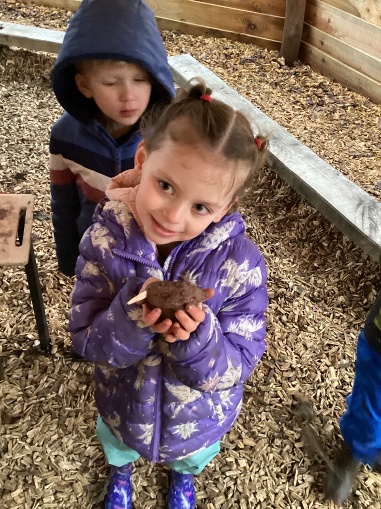 We have been celebrating National Hedgehog Day (which was on Monday) in our Forest School session today. Pupils could lead their own learning and take part in lots of hedgehog related activities. Inside the canopy classroom, children could make hedgehogs using clay, sticks, tools, teasel seed heads and anything else they could find! Once complete, children could take their hedgehogs outside to the sandpit where they could make hedgehog houses and tunnels for them to live in safely. Children could also role-play in our wooded area where children were transformed into hedgehogs and had to build themselves a nice cosy den using our sticks and tarps for their winter hibernation. In the mud kitchen, pupils were tasked with creating delicious meals for hedgehogs or for themselves to take into their dens to provide food for the long winter months! As usual, children also found the mud and had a great time playing in it and trying to move through it like a hedgehog would do!