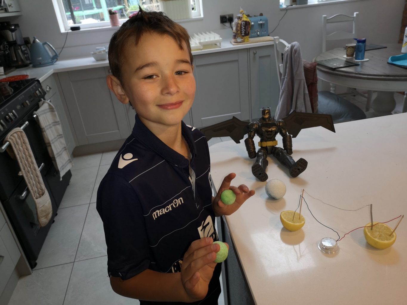 Hello super scientists. Jacob certainly has carried out some amazing science at home this week! He made bouncy eyeballs from Polyvinyl Alcohol Granules/crystals submerged in water to learn about molecules and force.  He then made a lemon clock. He learnt that lemon helps conduct electricity via copper and zinc plates. He really enjoyed doing them and learning the basics.