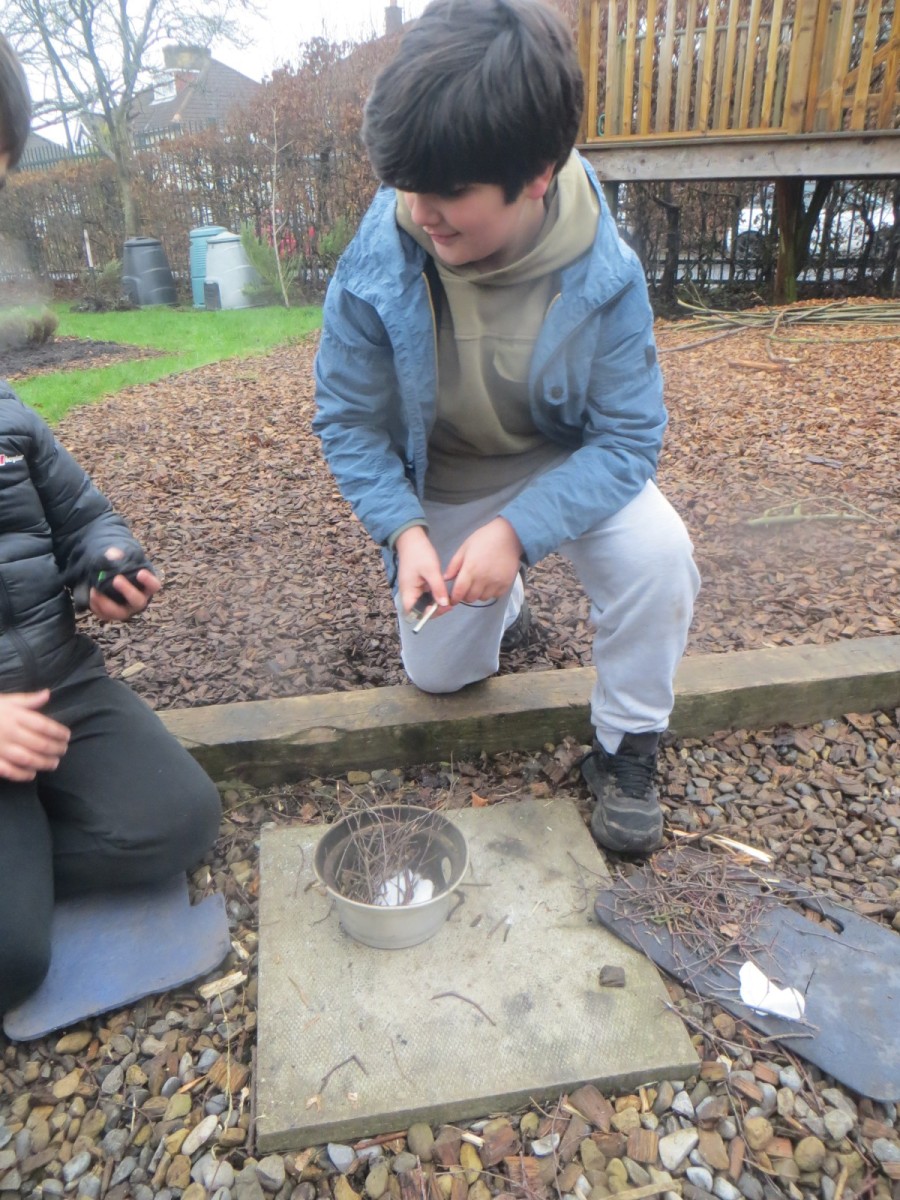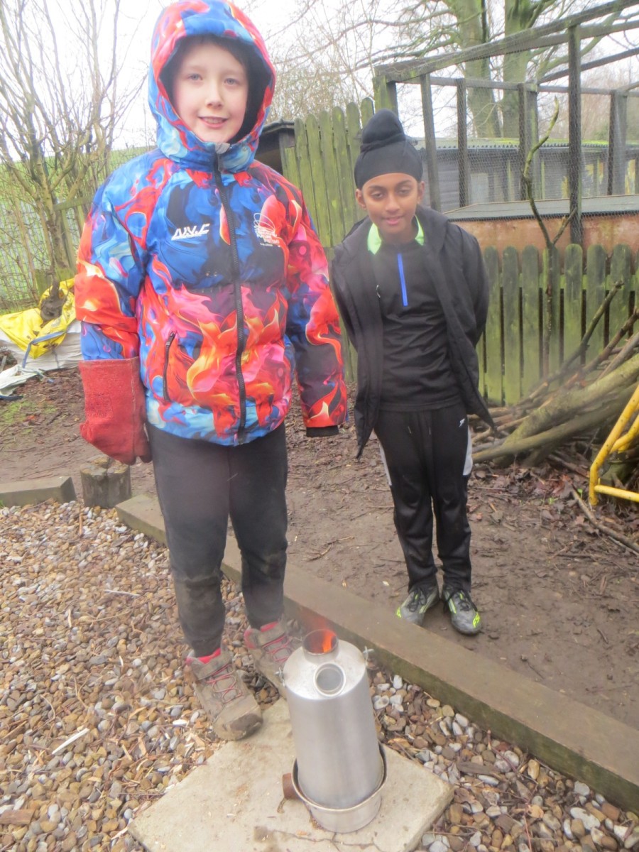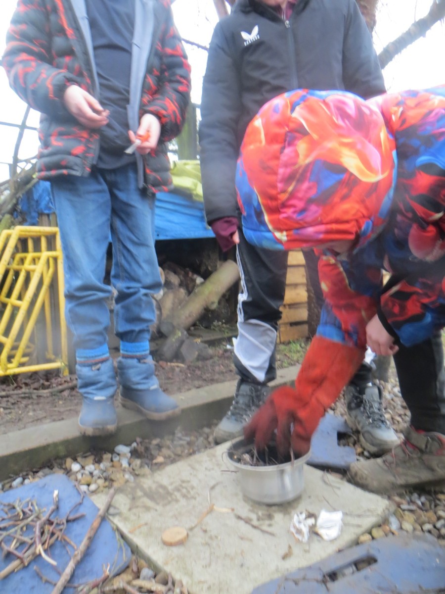Today, UKS2 participated in an event run by the charity organisation Samaritans called ‘Brew Monday.’ You have have heard that last Monday (the third Monday of January) is sometimes referred to as ‘the most difficult day of the year’ or ‘blue Monday.’ Knowing this isn’t true, the Samaritans say it’s time to stop this myth about Monday being ‘blue’ and instead start a conversation over a brew by reaching out and connecting with either family, friends, colleagues and loved ones to chat, listen and laugh. Therefore, in our sessions today, all the pupils in UKS2 had the chance to do just that! Using the kelly kettles and their fire lighting skills, pupils created a fire to boil water in order to have hot chocolate or a herb infused tea using herbs from the kitchen garden. Pupils split their team into three, one to light and build the fire, one to prepare the drinks and one to split wood into thinner strips using bill hooks. After an hour in the cold, we found there was nothing more satisfying than a hot drink to warm the hands and body!