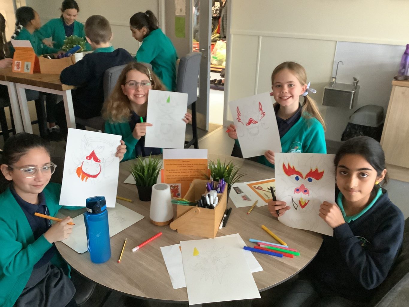 On Tuesday, UKS2 joined the rest of the school in celebrating the lunar new year. In a day filled with fun, food and festivities, the children joined in with a broad range of entertaining activities. First, the children were challenged to draw their own dragon, focusing on their menacing teeth and extravagant whiskers. Then, the children had a go at writing the word dragon, using mandarin characters. Afterwards, the children learned how to use chopsticks, and competed in a variety of competitions to test their newfound skills. Finally, the children got to try a range of Chinese food that they had created, including spring rolls, dumplings and noodles.