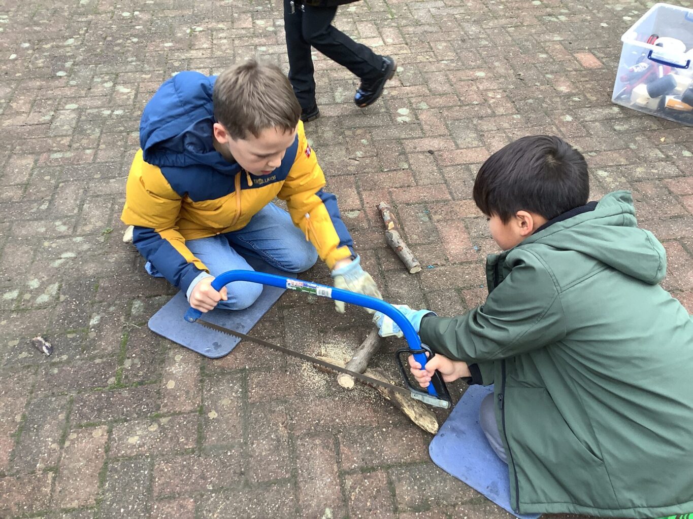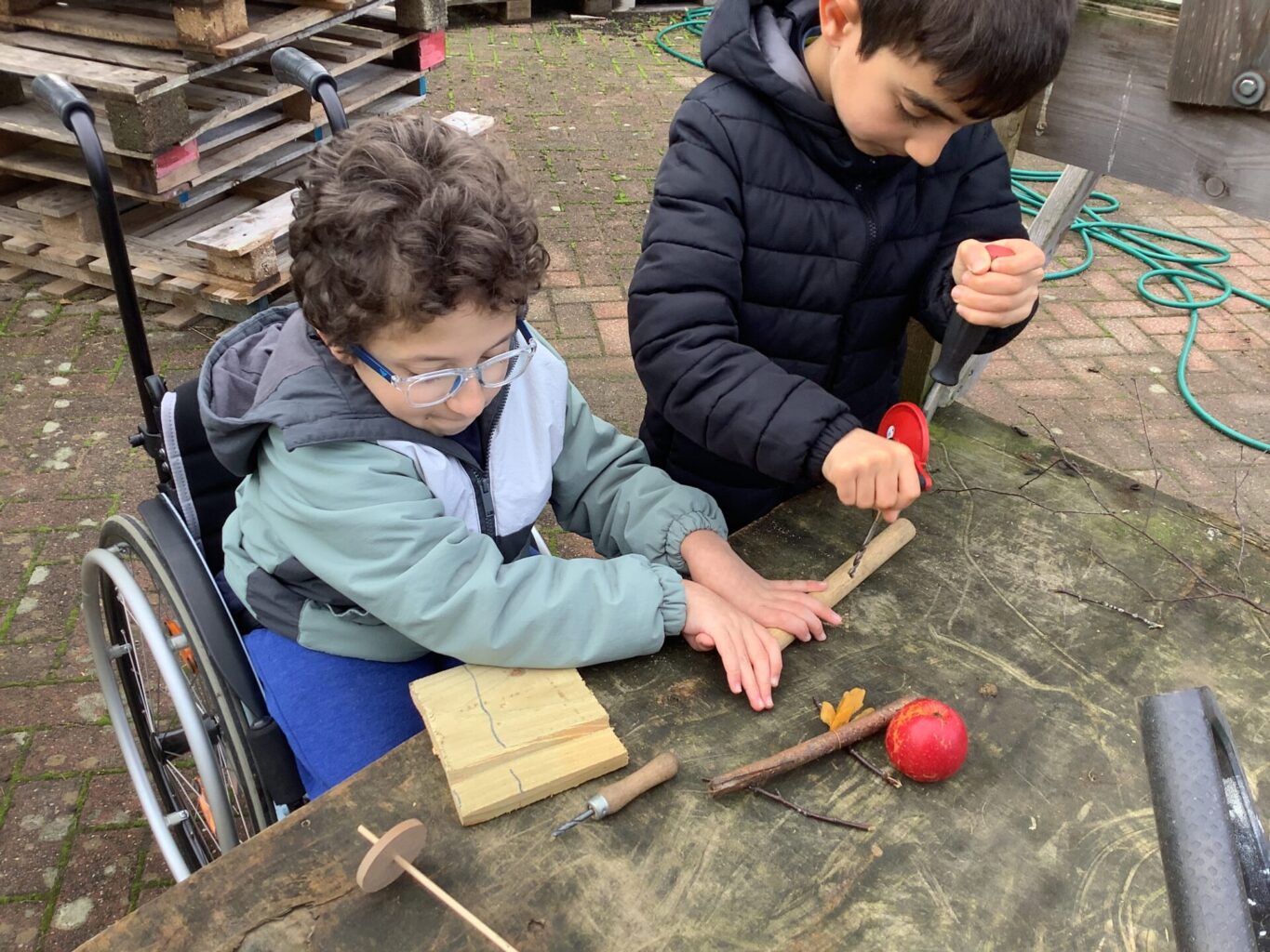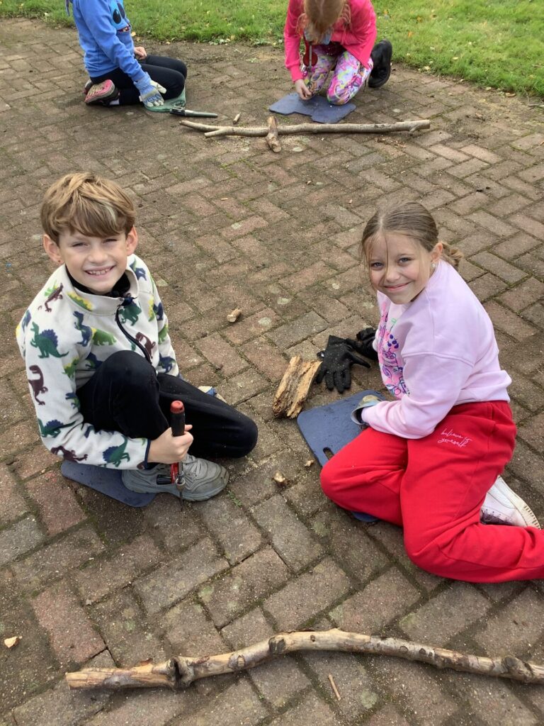 A variety of skills were used, including: whittling, drilling, sawing and knotting. Alongside this, a range of materials were used, including wood, clay, apples and string!