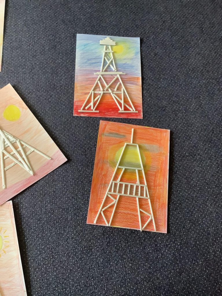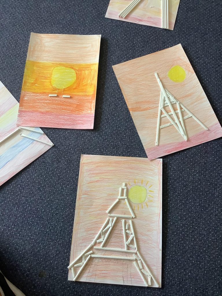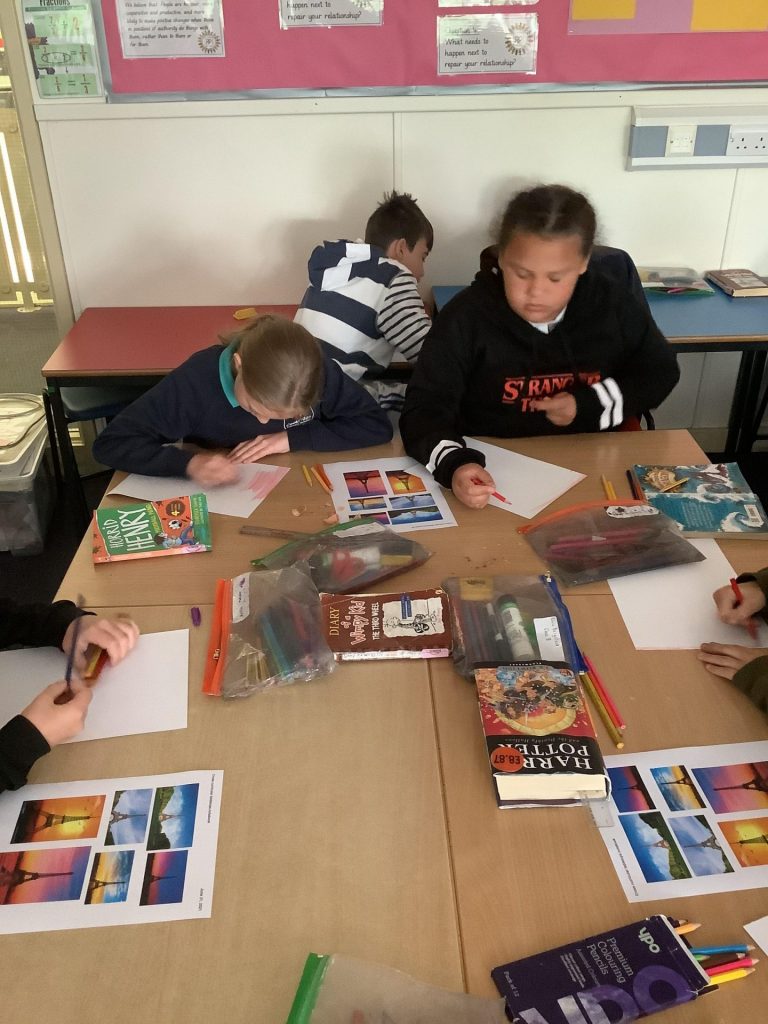 Today in UKS2, the pupils had a French themed cross-curricular day. The first activity of the day was an art based activity. Using a range of media to complete a sunset background, the children then constructed their own Eiffel Tower pieces using art straws.