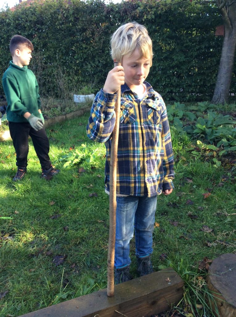 Today in Forest School, the UKS2 pupils have had the opportunity to experience a number of fun and exciting activities whilst working in small groups. Students further developed their fire building skills and used the flint and steel to create a small fire. Other groups used their creativity to design and make a game that incorporated conkers. Elsewhere, pupils helped to prepare the beds in the polytunnel ready for re-planting over winter. All students also had a RIC session that developed their understanding of Greek theatres -this will become extremely useful in our English write next week.