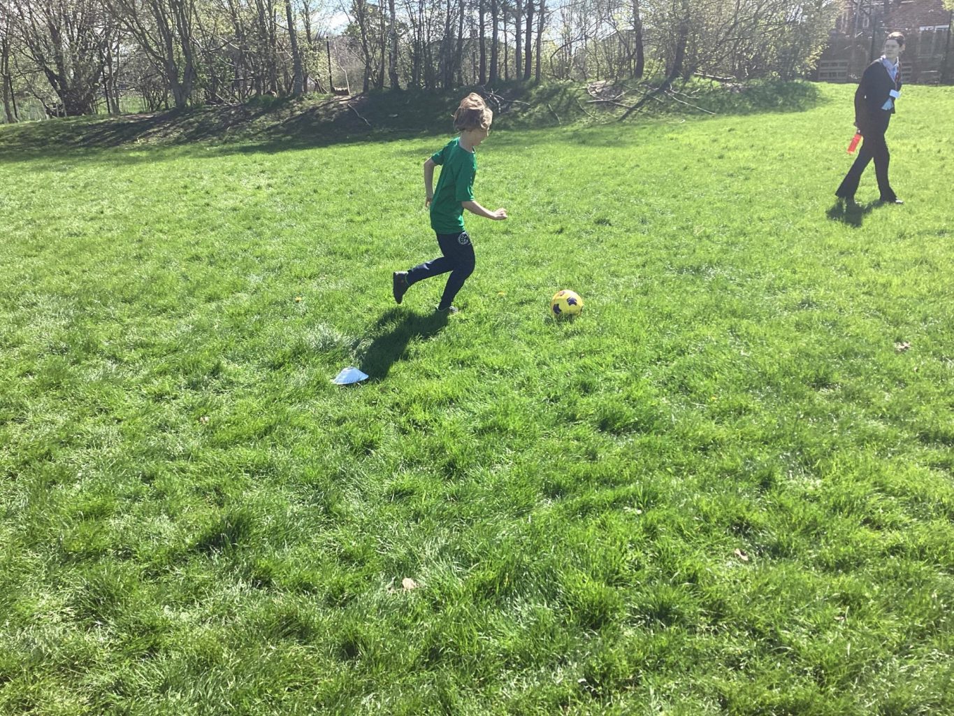In football, the children were working on the key skill of dribbling. They were asked to slalom through cones, keeping close control, before progressing to finishing against a goal keeper. There was some excellent skills on show, and some very flashy footwork. Well done everyone.