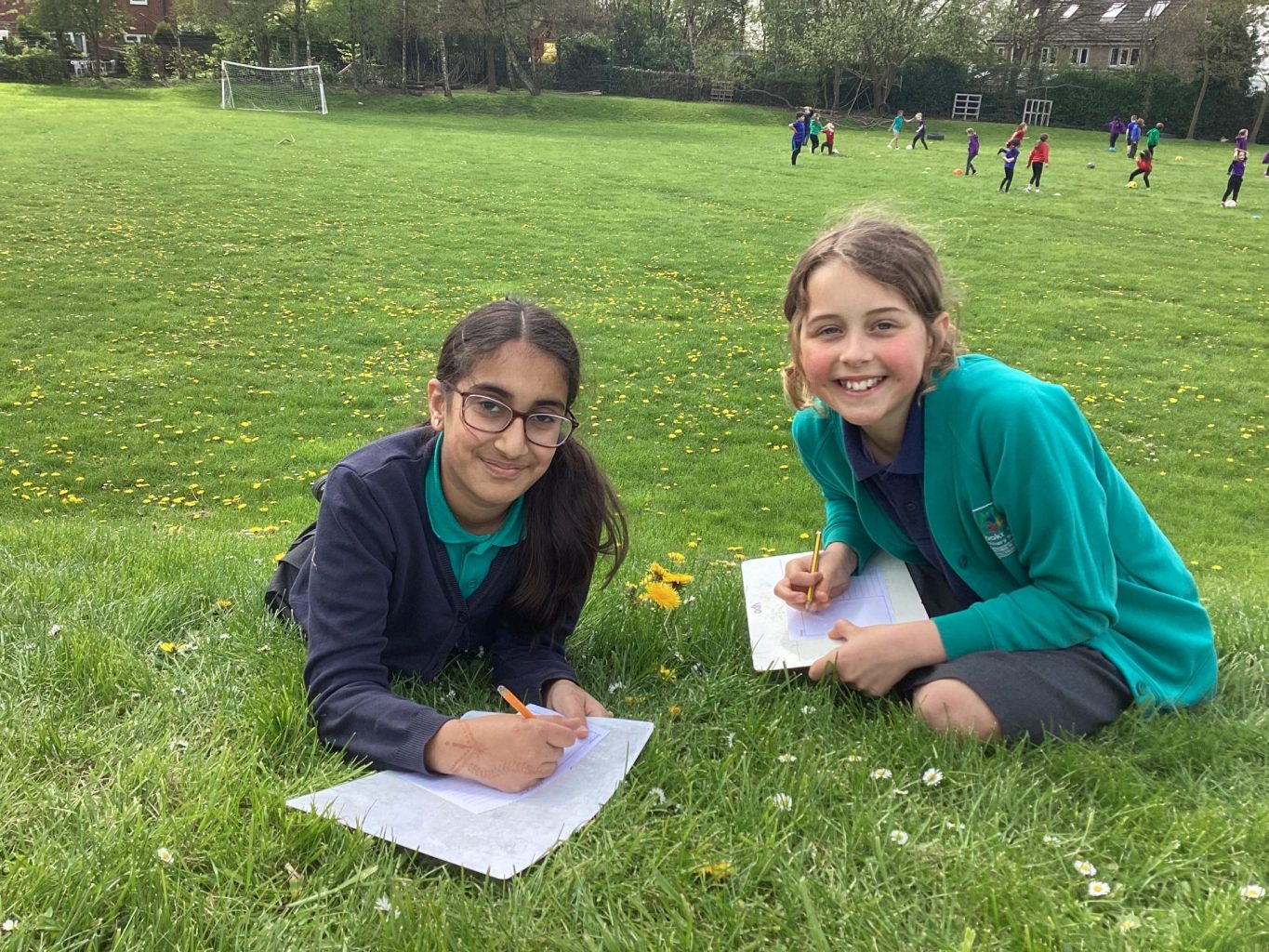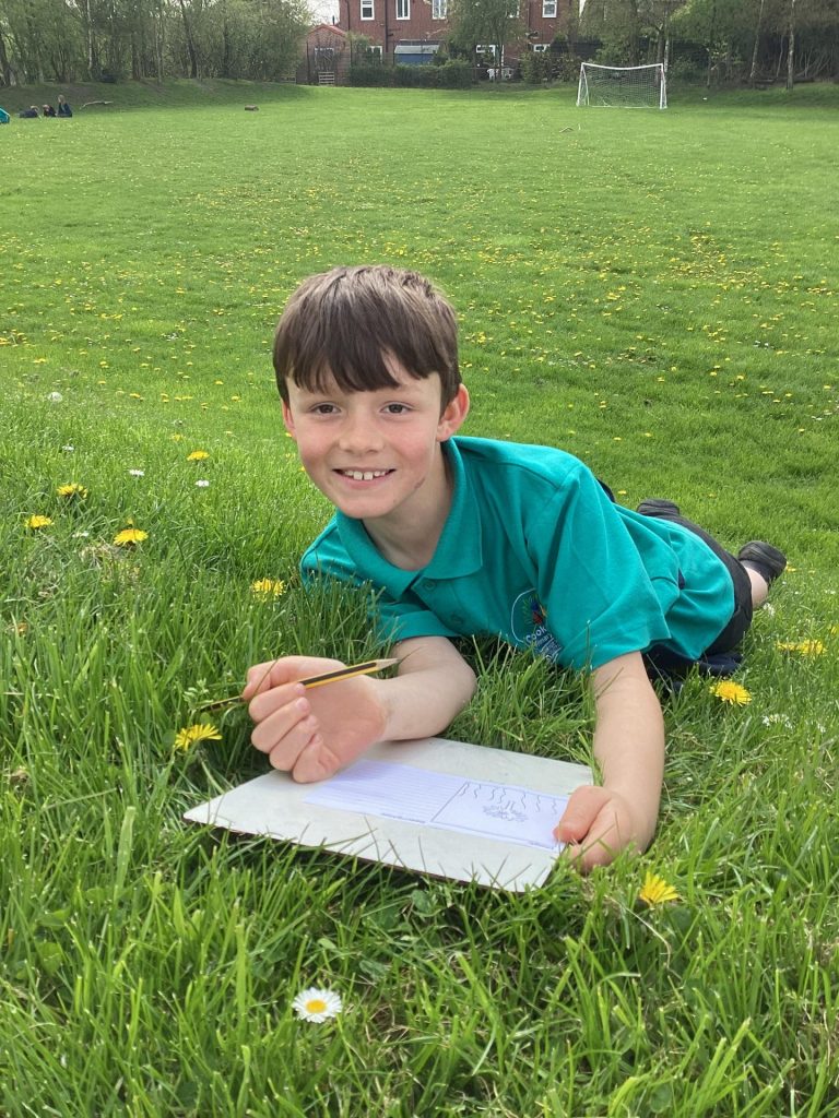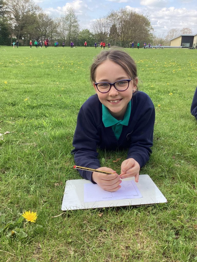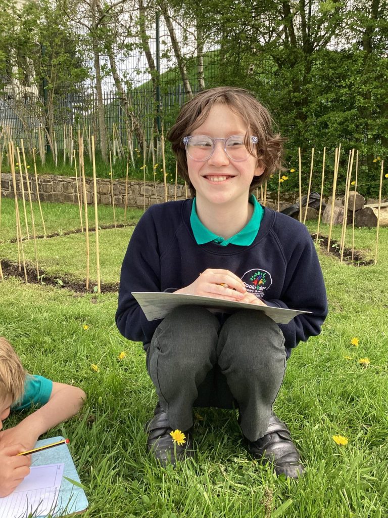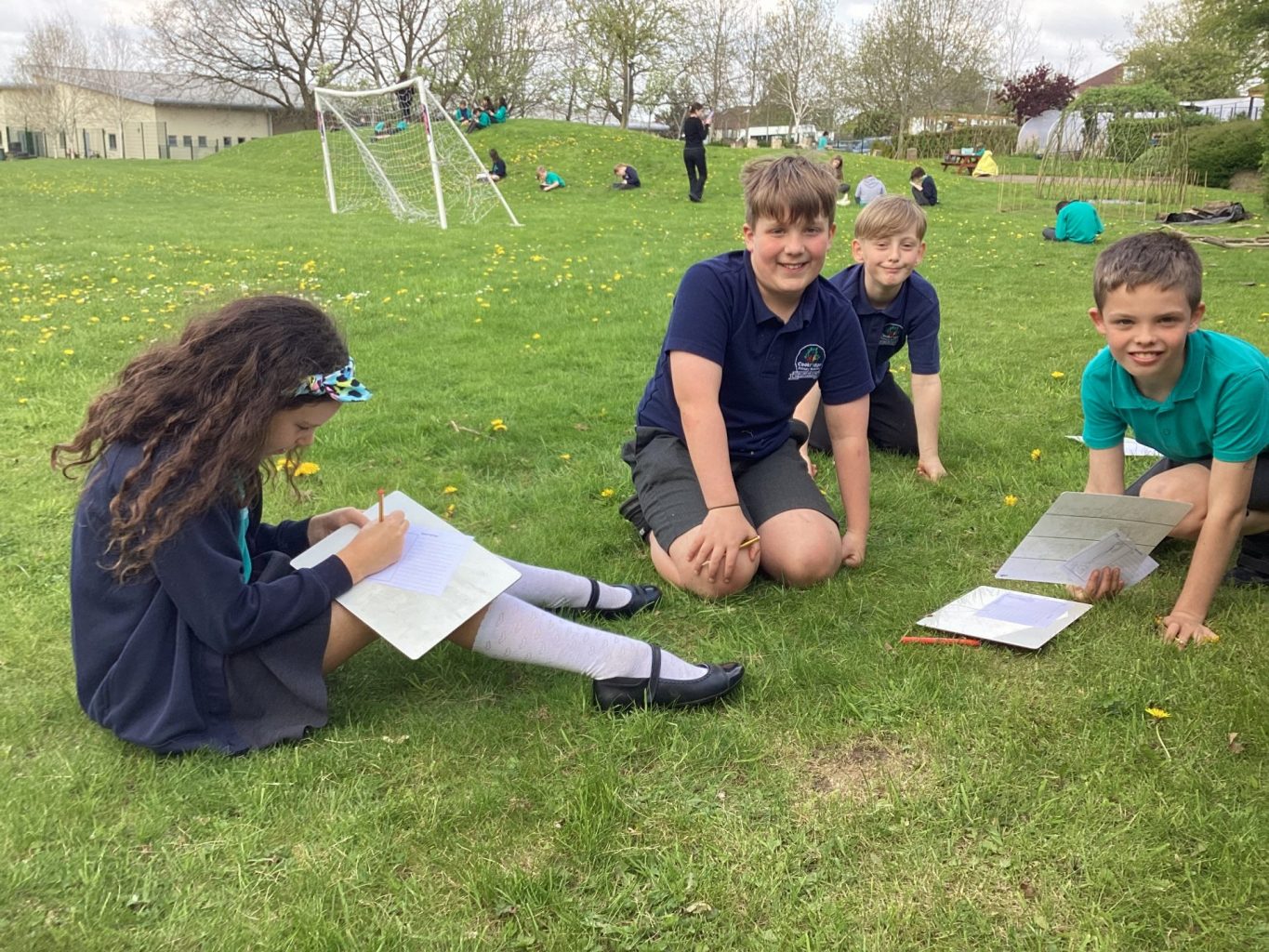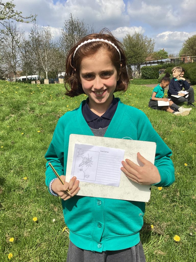 After having looked at her intricate illustrations of plant and life cycles, the children went outside to draw their own observations of plants and describe their artwork using their knowledge about life cycles.